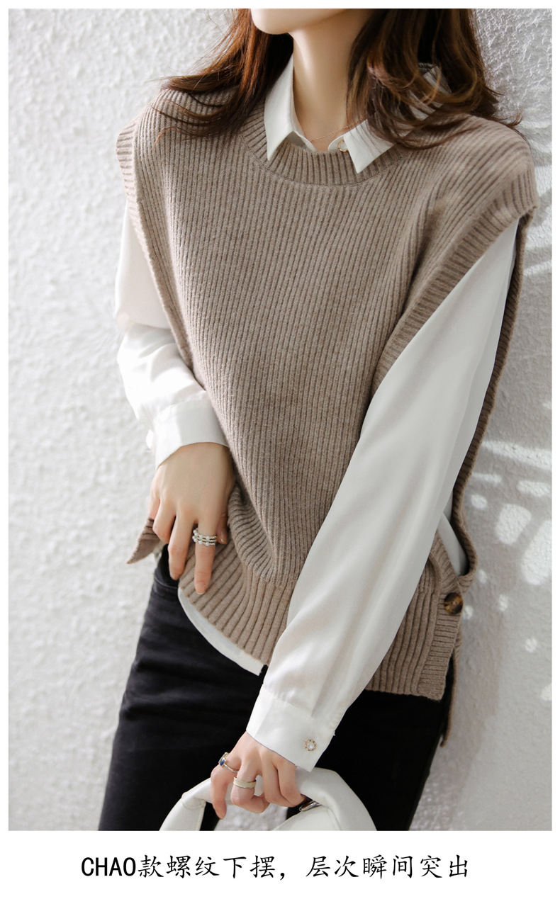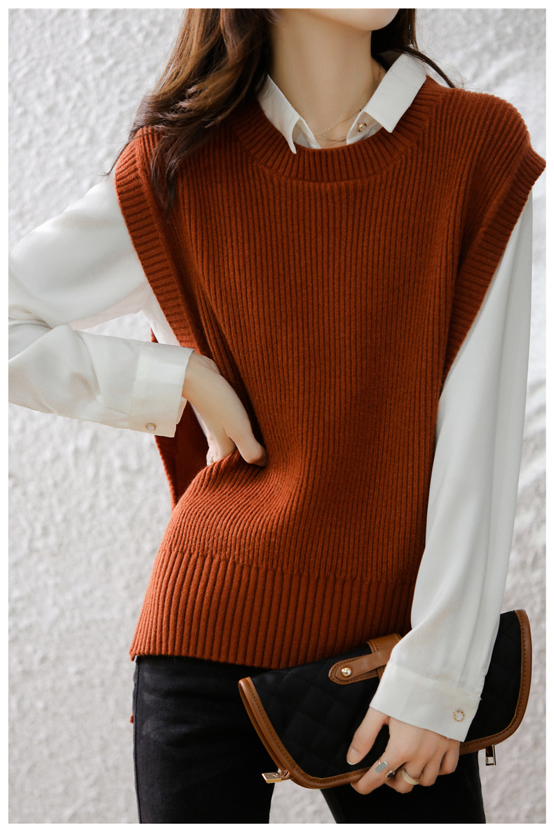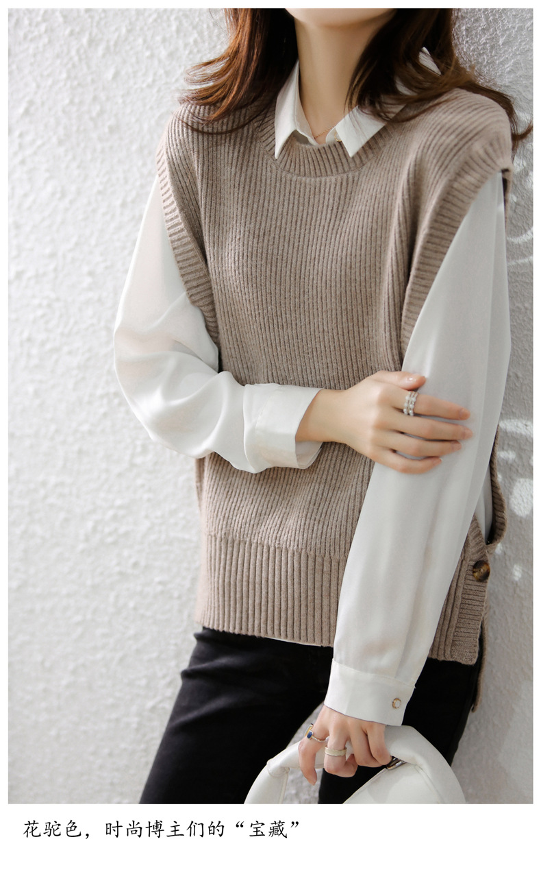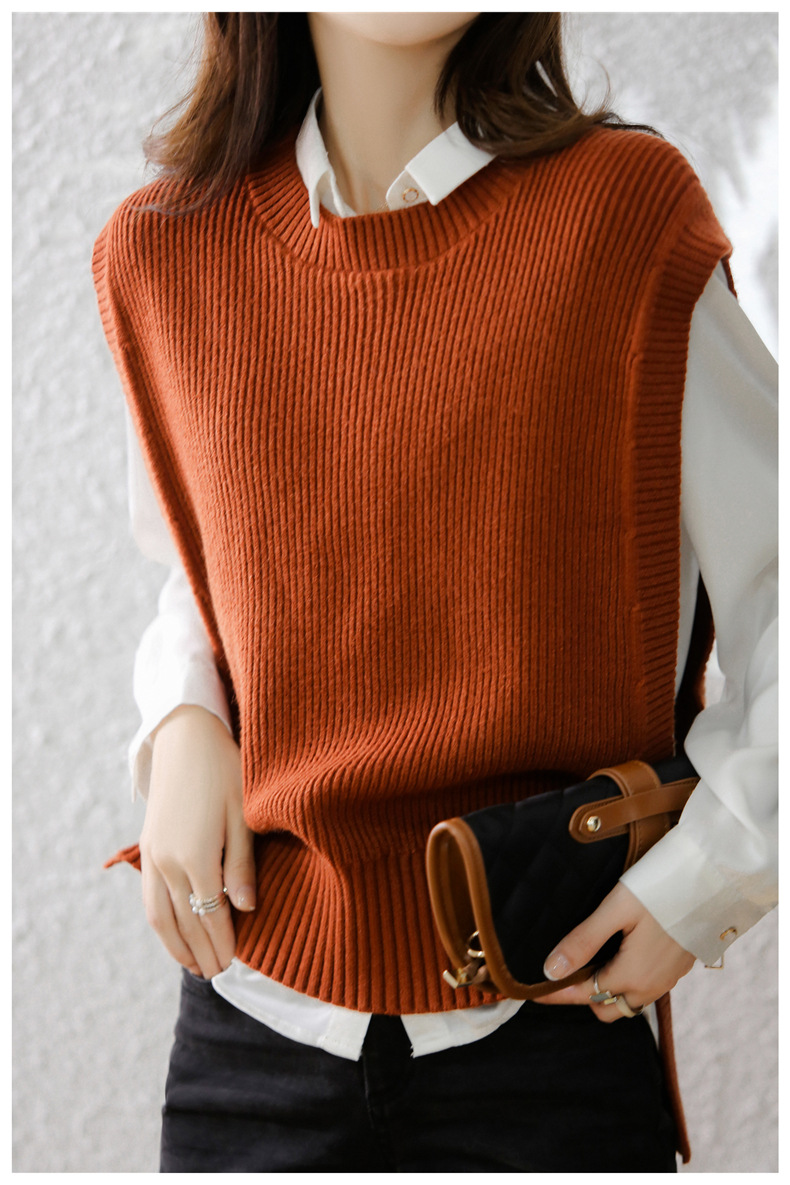 春秋款【马甲背心外套 羊毛针织坎肩女士】毛衣外搭 圆领宽松 春秋马夹外穿