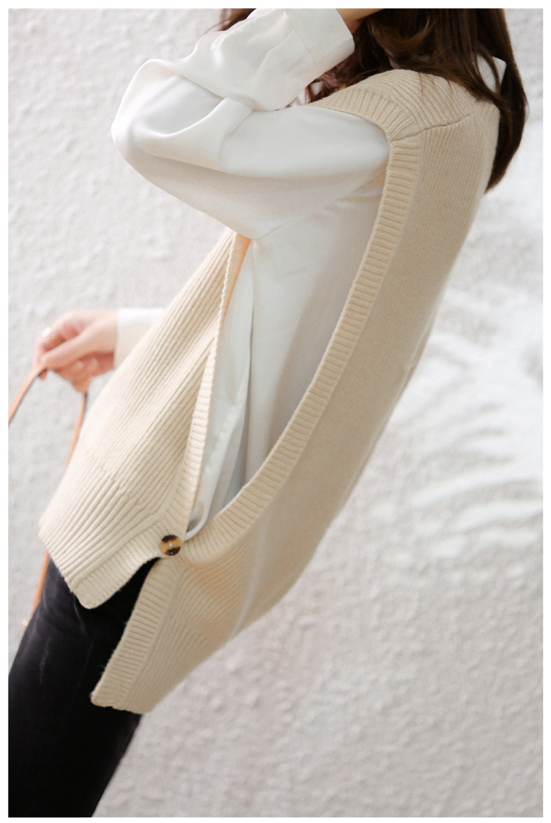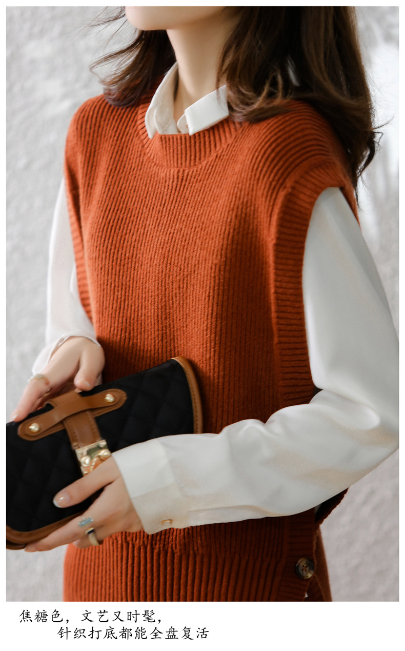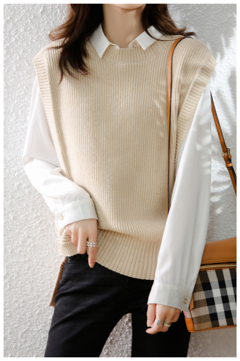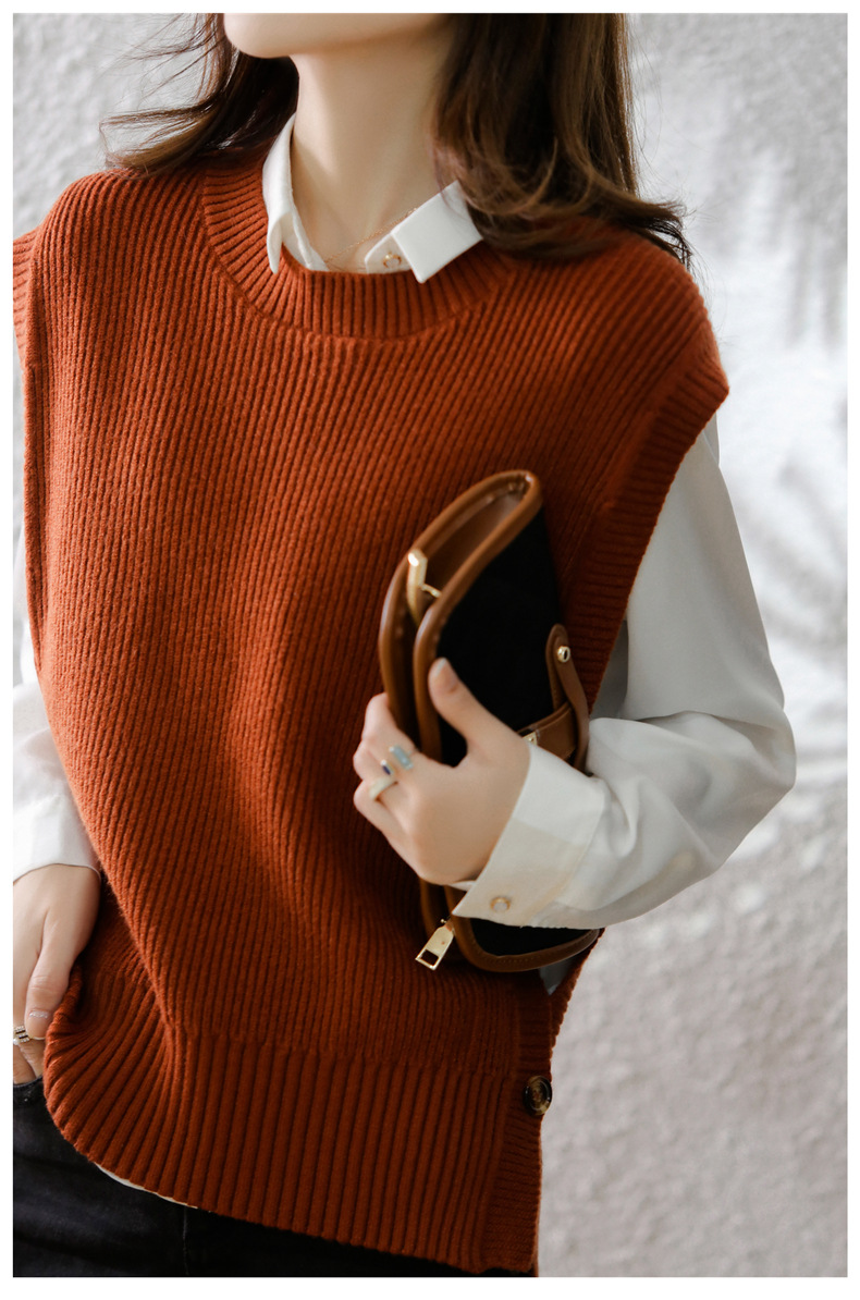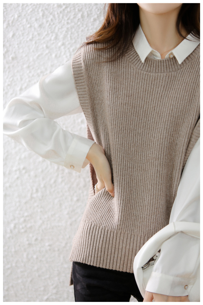 春秋款【马甲背心外套 羊毛针织坎肩女士】毛衣外搭 圆领宽松 春秋马夹外穿