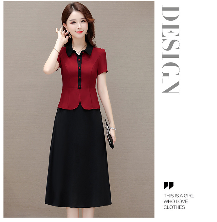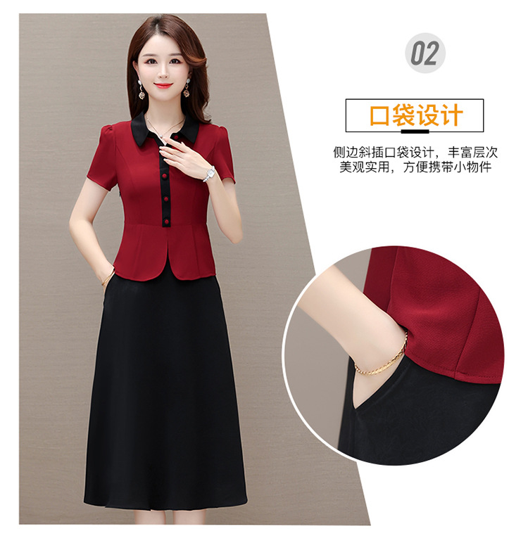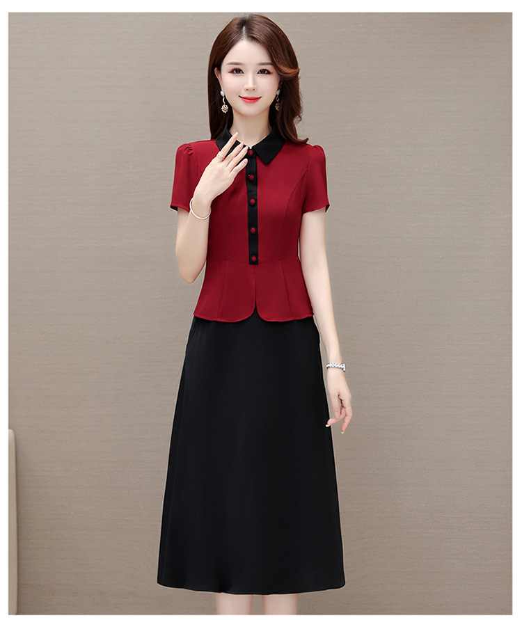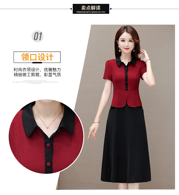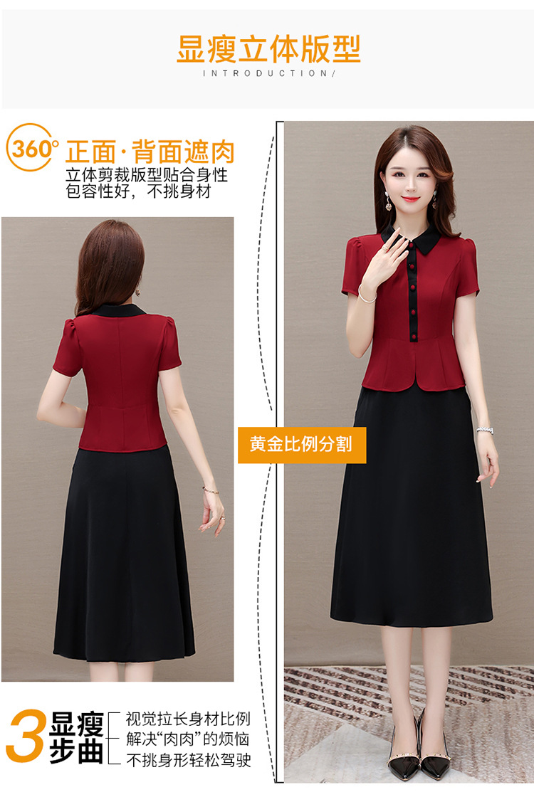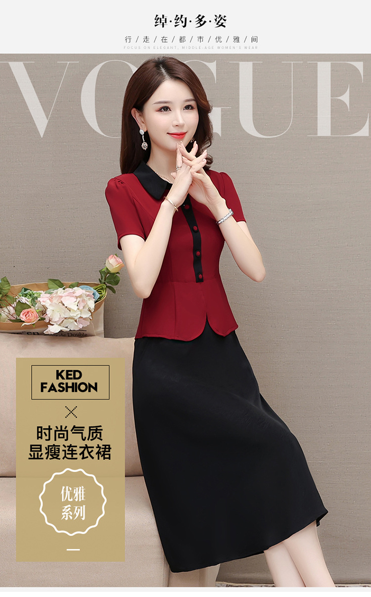 夏季新款,拼结中长款假两件气质优雅妈妈裙娃娃领短袖连衣裙QYM-KED-H1195-Y