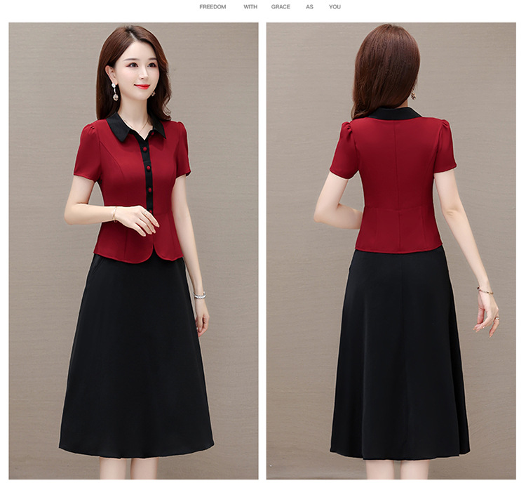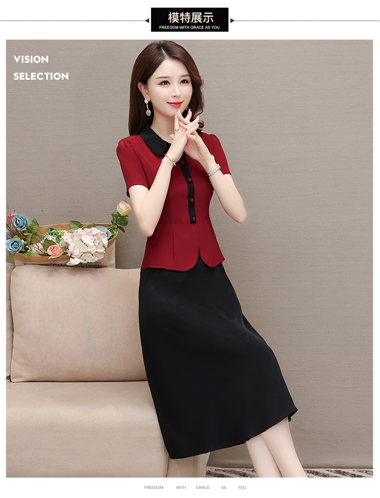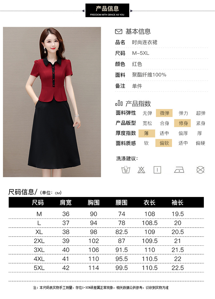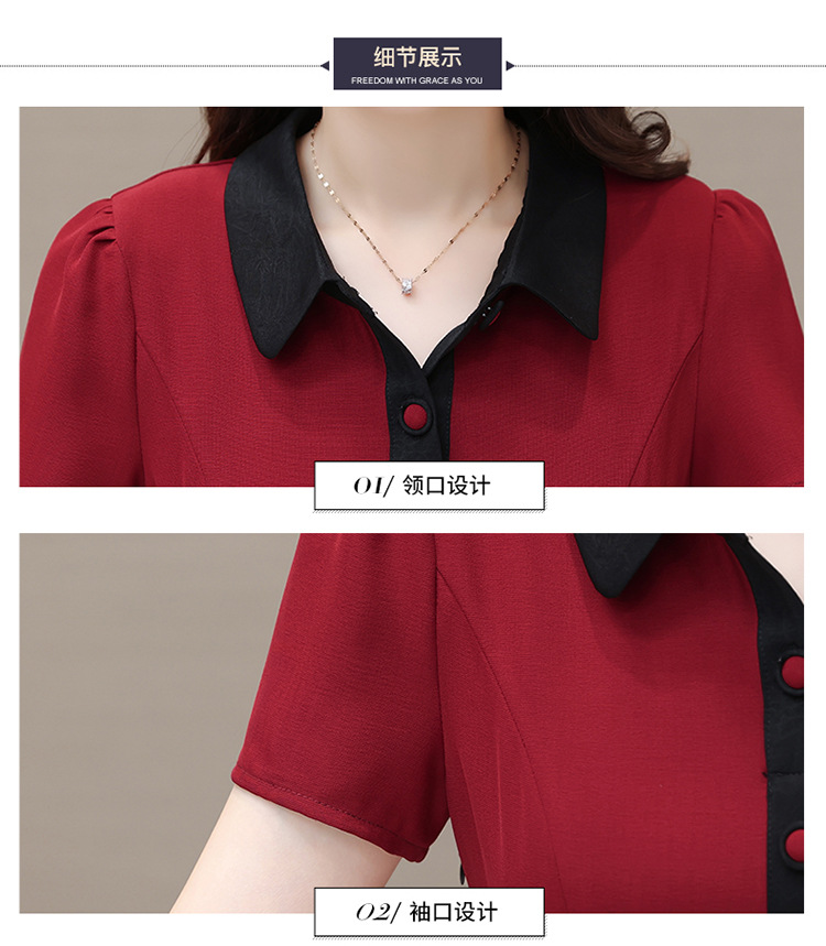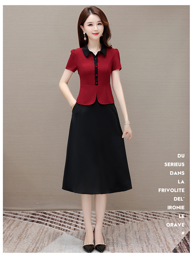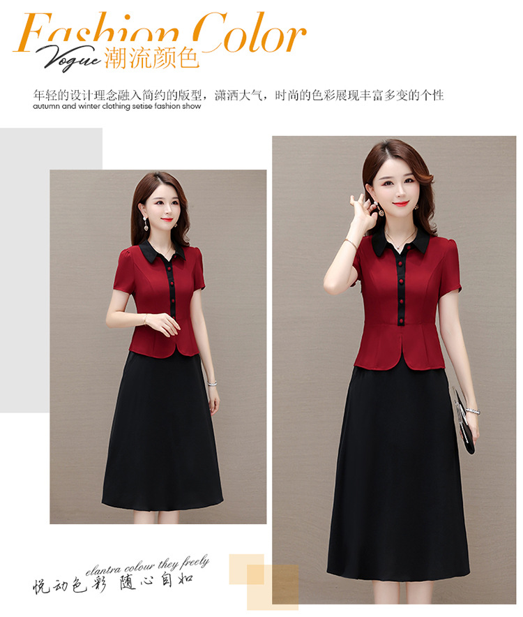 夏季新款,拼结中长款假两件气质优雅妈妈裙娃娃领短袖连衣裙QYM-KED-H1195-Y