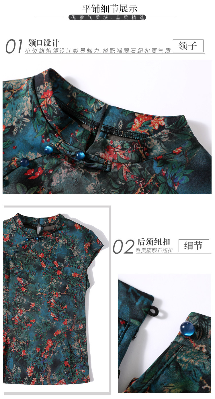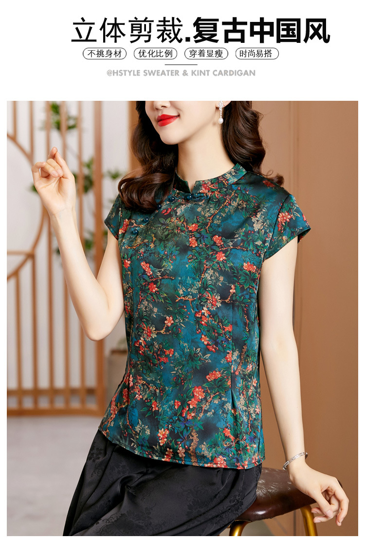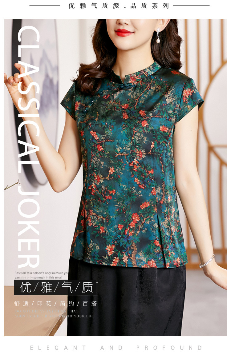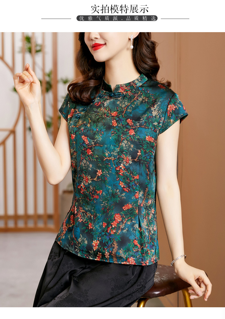 时尚百搭,复古中国风旗袍领修身短袖T恤上衣KQL-2309