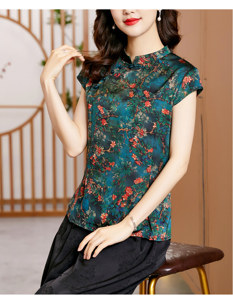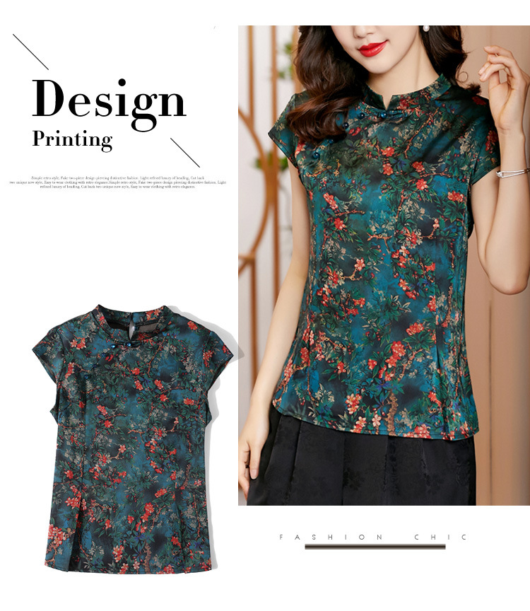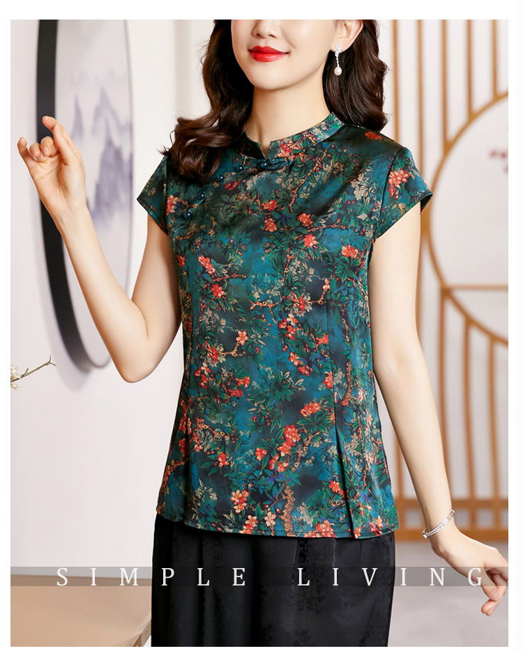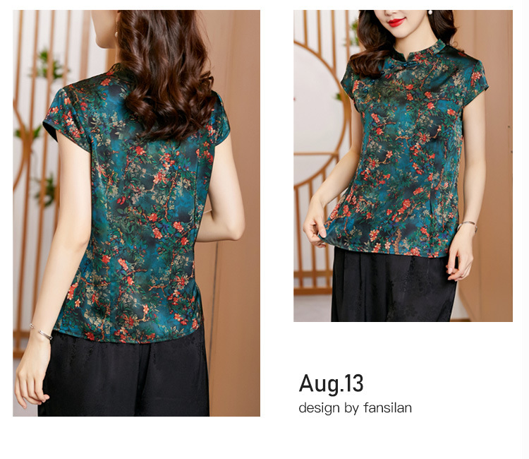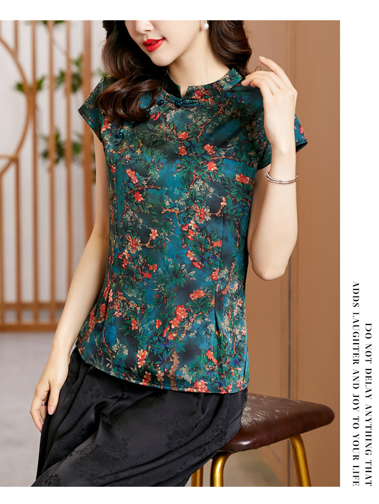 时尚百搭,复古中国风旗袍领修身短袖T恤上衣KQL-2309