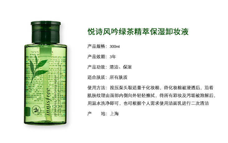 【保税仓】悦诗风吟 有机绿茶精萃保湿卸妆液卸妆水 300ml green tea oure cleansing water