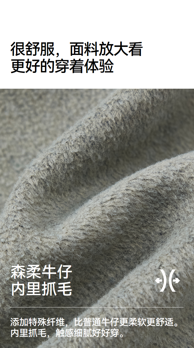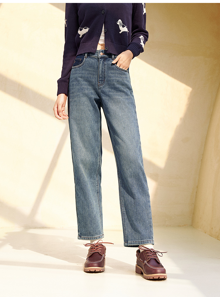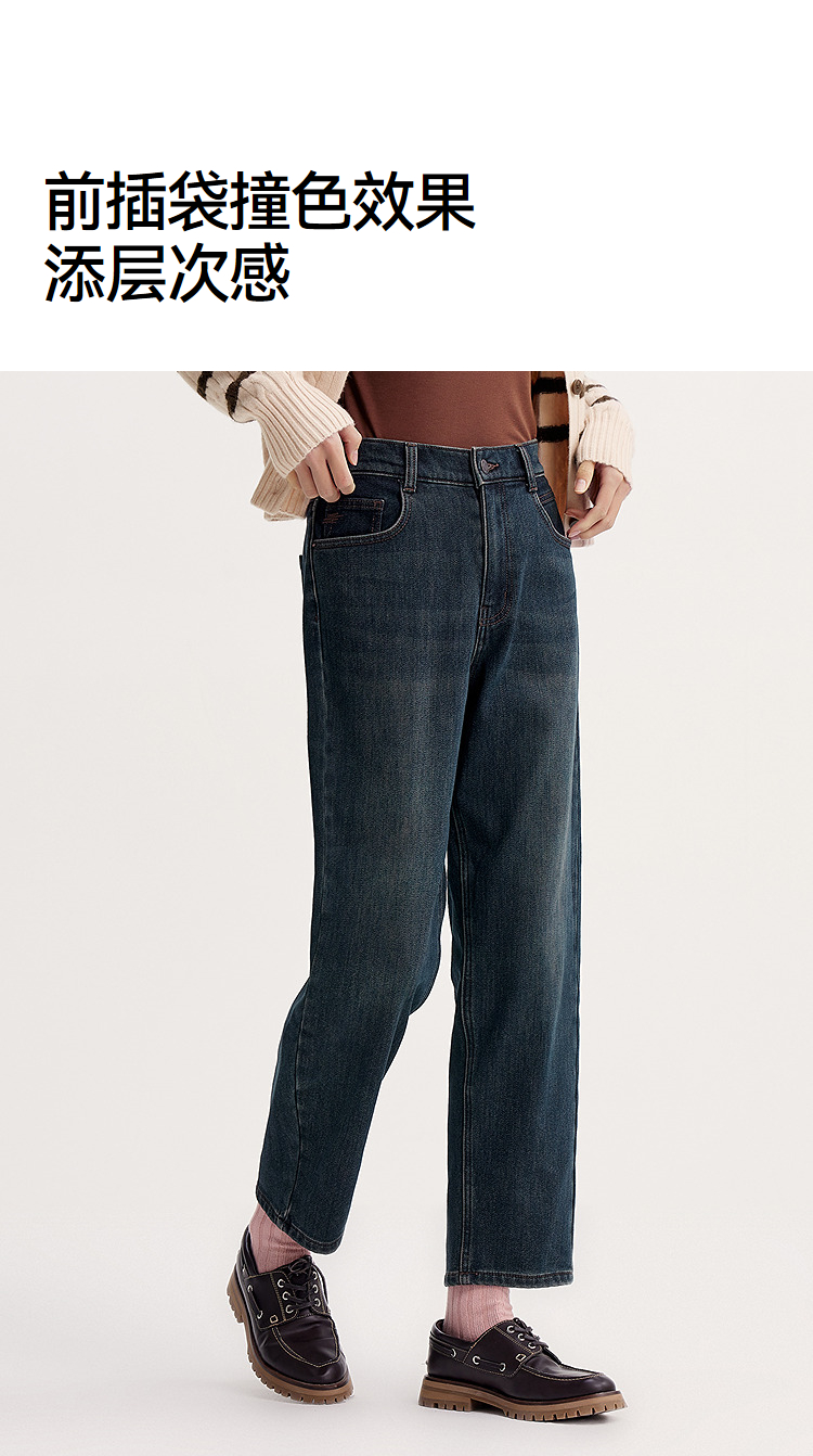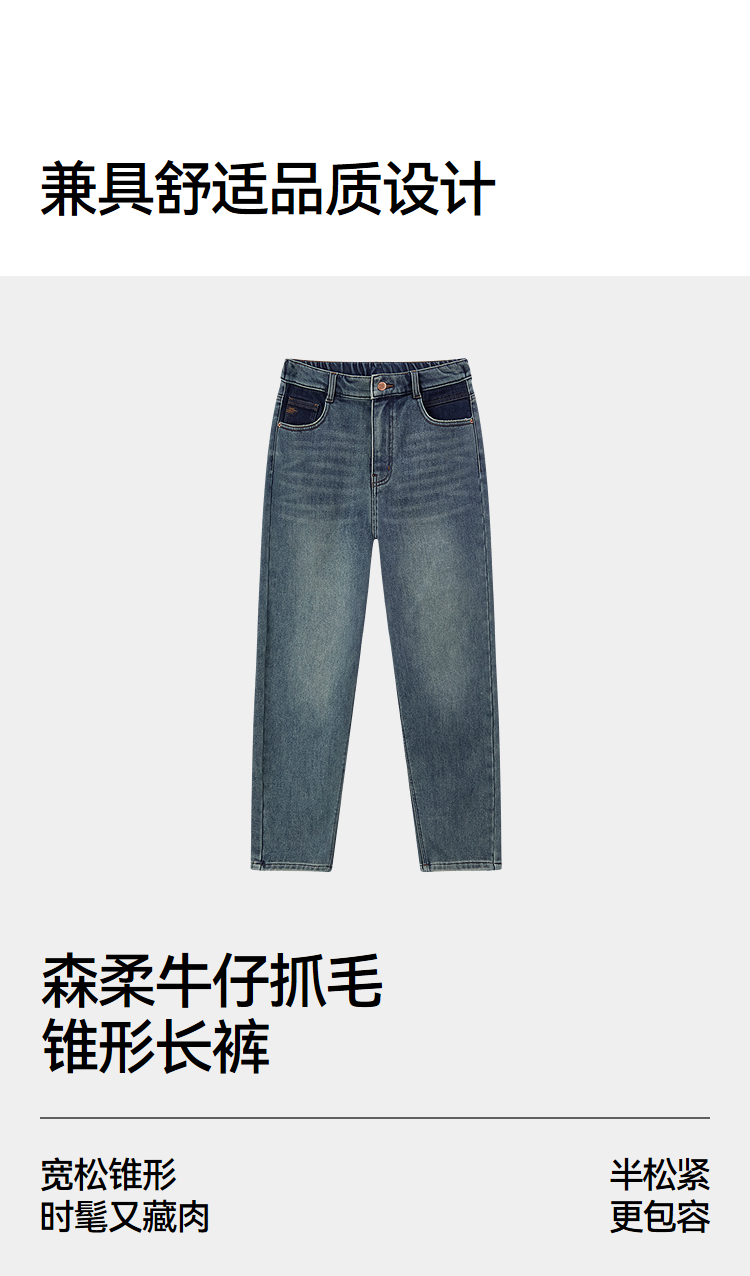 森柔|森马牛仔裤女冬季宽松半松紧腰抓毛长裤街头潮酷遮胯锥形裤