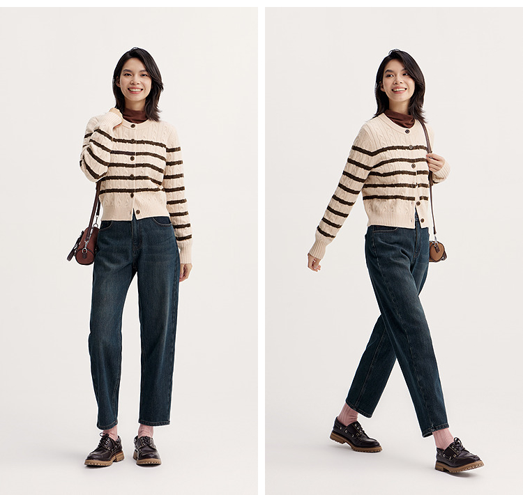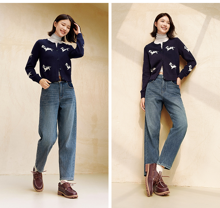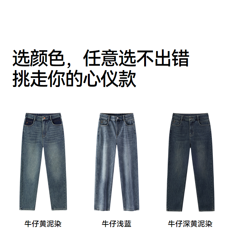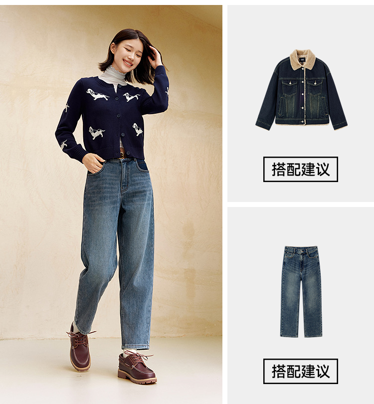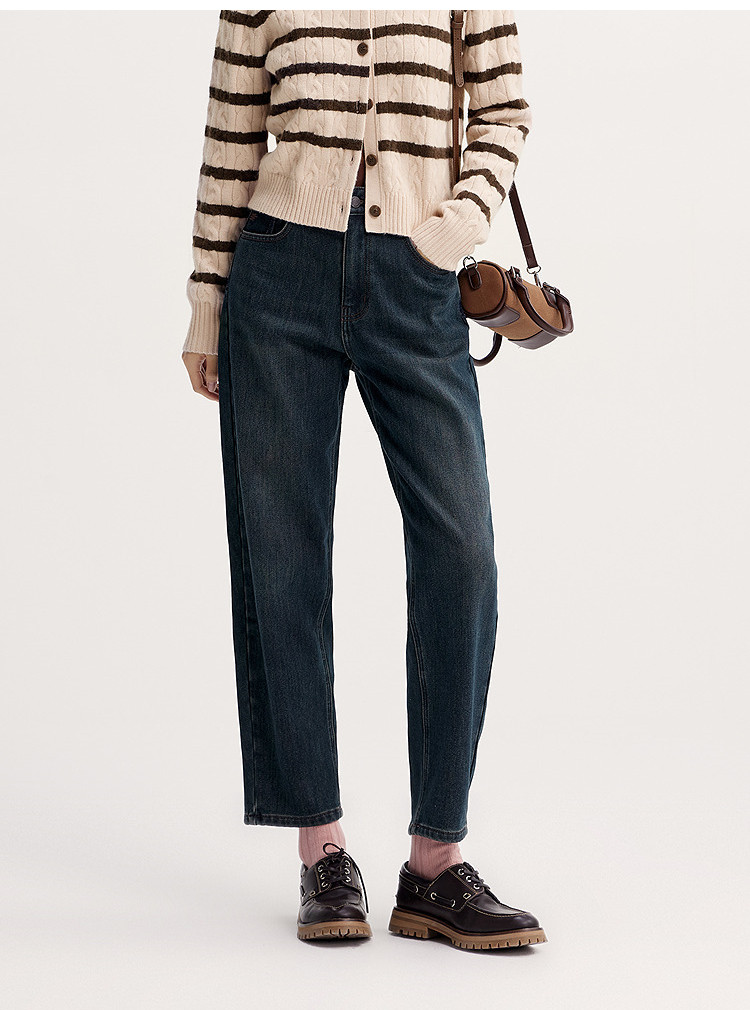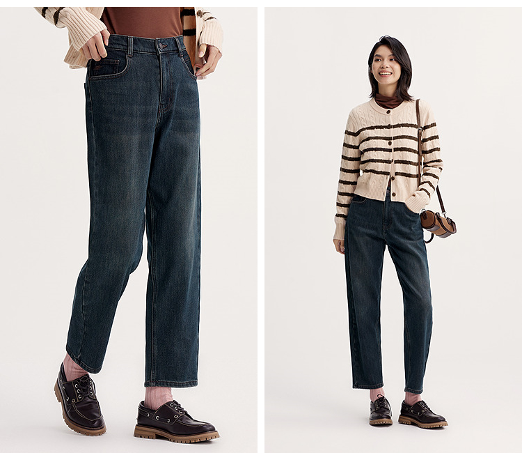 森柔|森马牛仔裤女冬季宽松半松紧腰抓毛长裤街头潮酷遮胯锥形裤