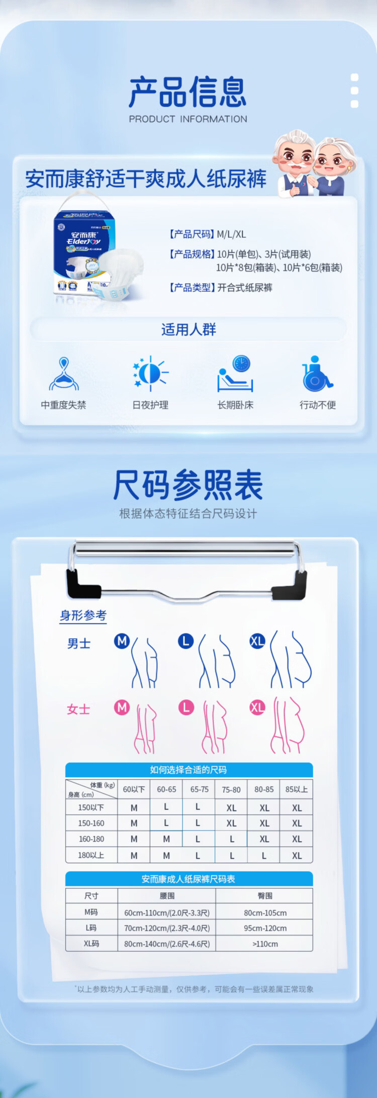 安而康舒适干爽纸尿裤M号10片/包