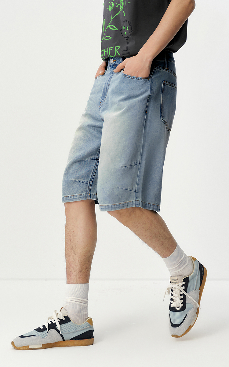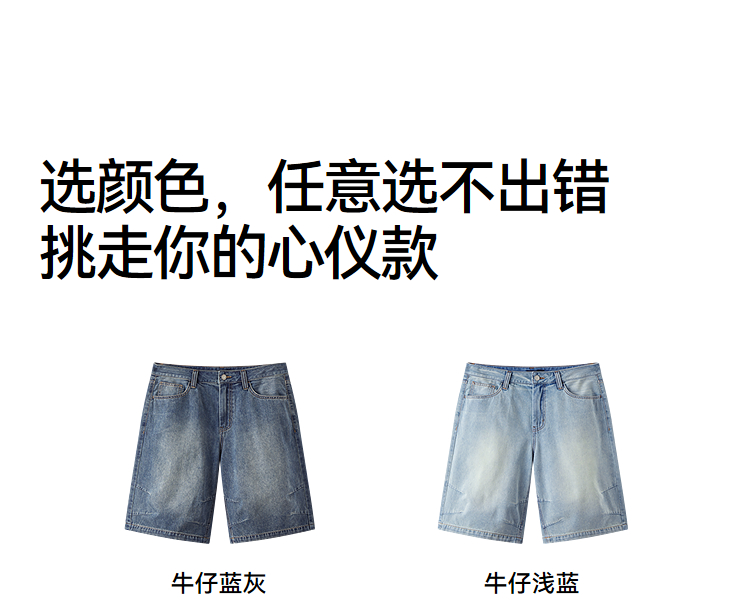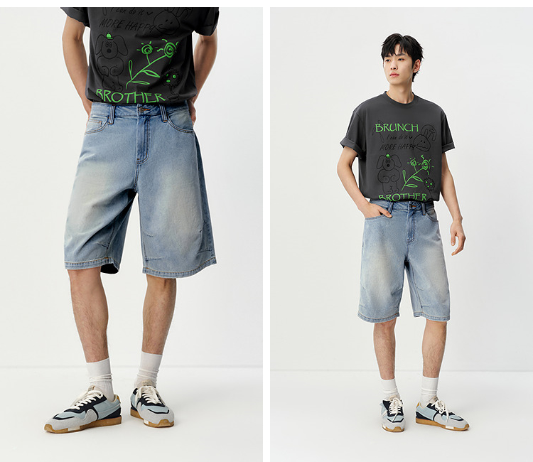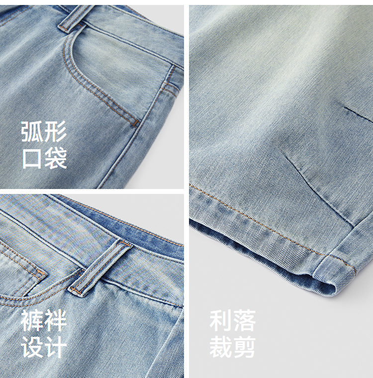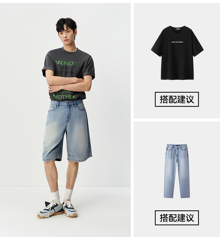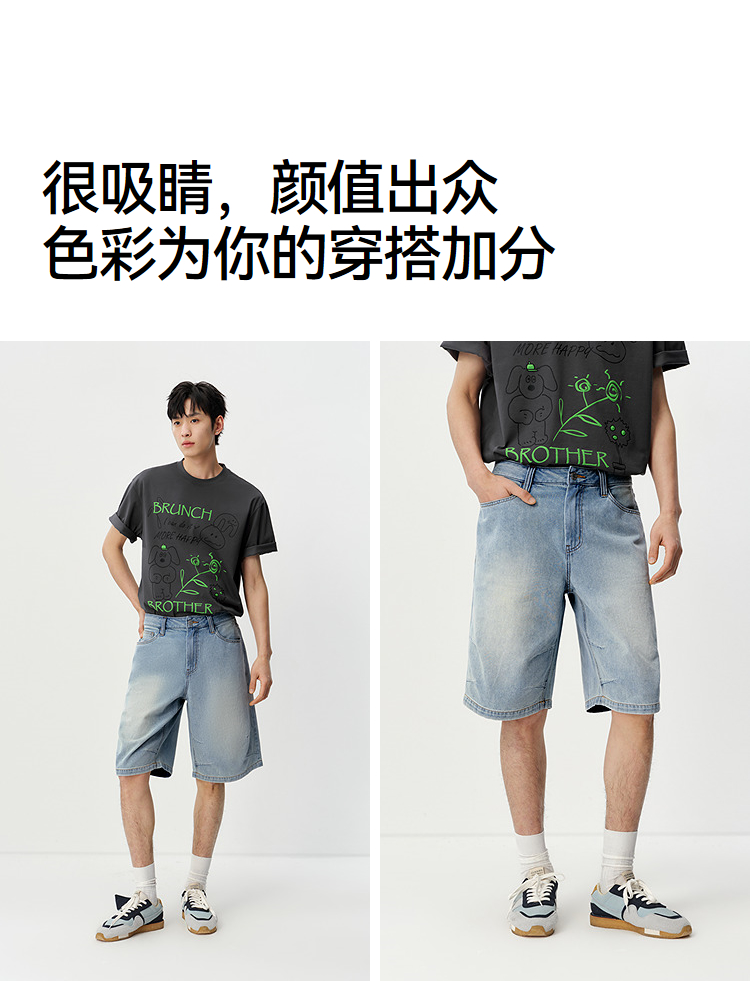 森马牛仔裤男夏轻薄凉感宽松直筒裤2026新款复古做旧水洗六分短裤