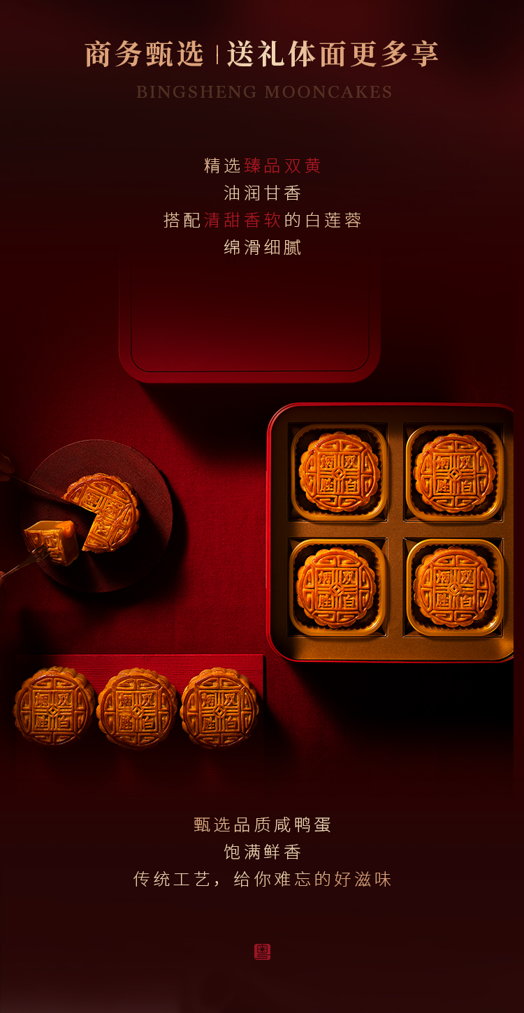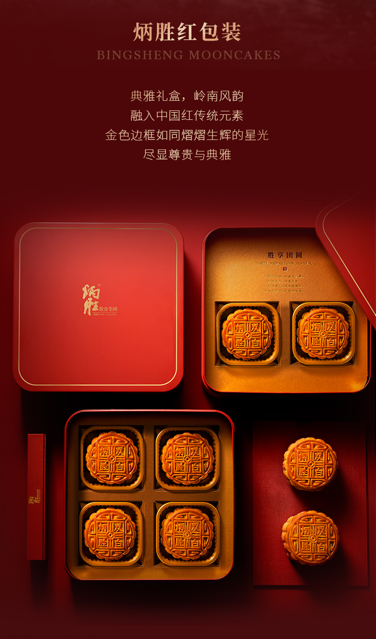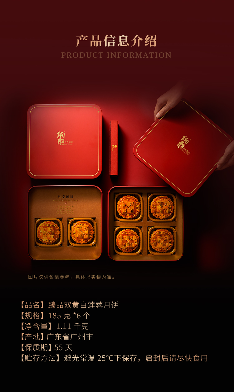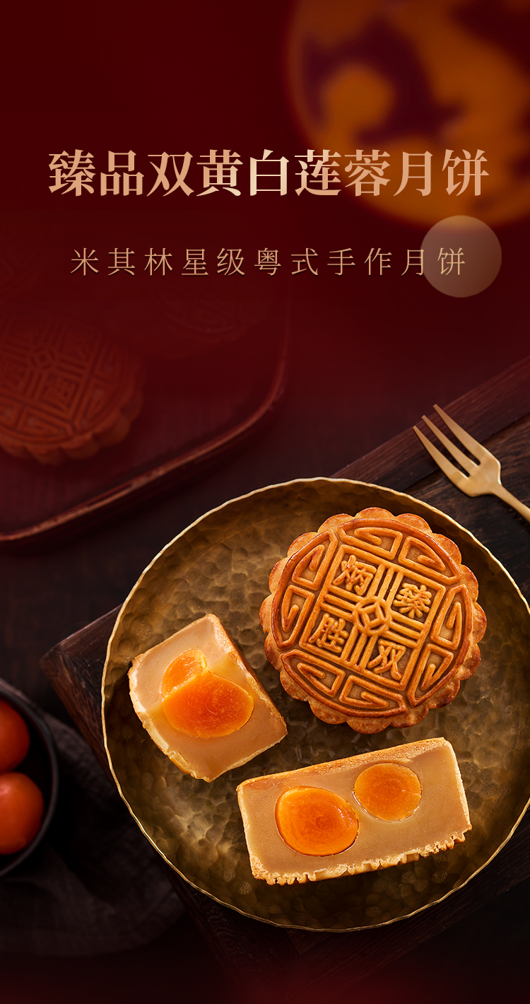 炳胜 臻品双黄白莲蓉月饼1110g(6只装)