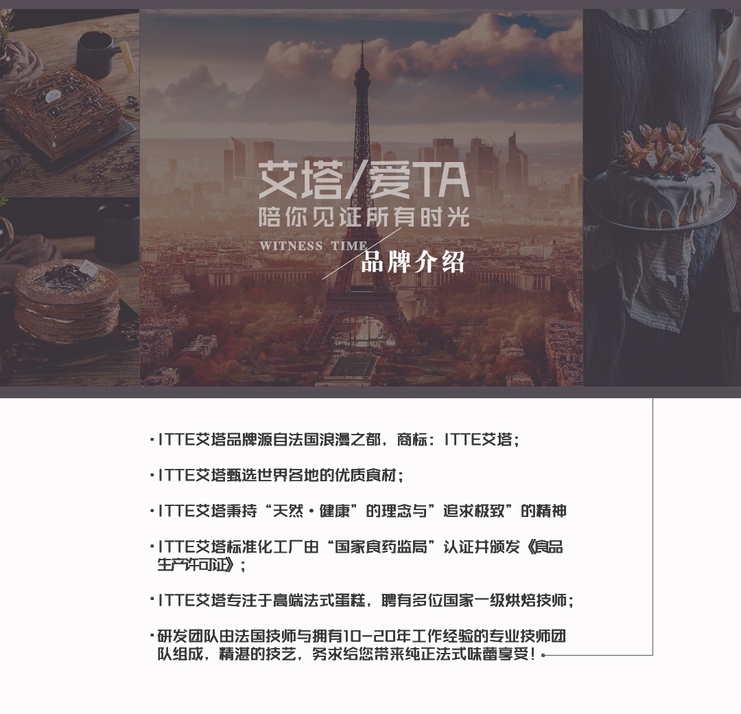 ITTE 艾塔品牌源自法国浪漫之都,商标:ITTE艾塔; ITTE 艾塔甄选世界各地的顶级食材; ITTE 艾塔秉持“天然•健康”的理念与”追求极致”的精神; ITTE 艾塔标准化工厂由“国家食药监