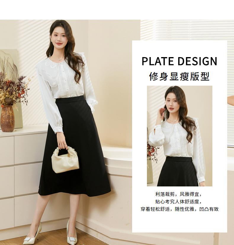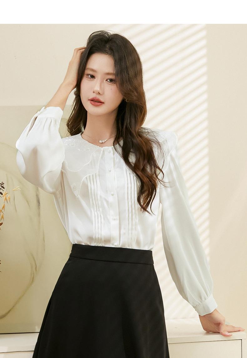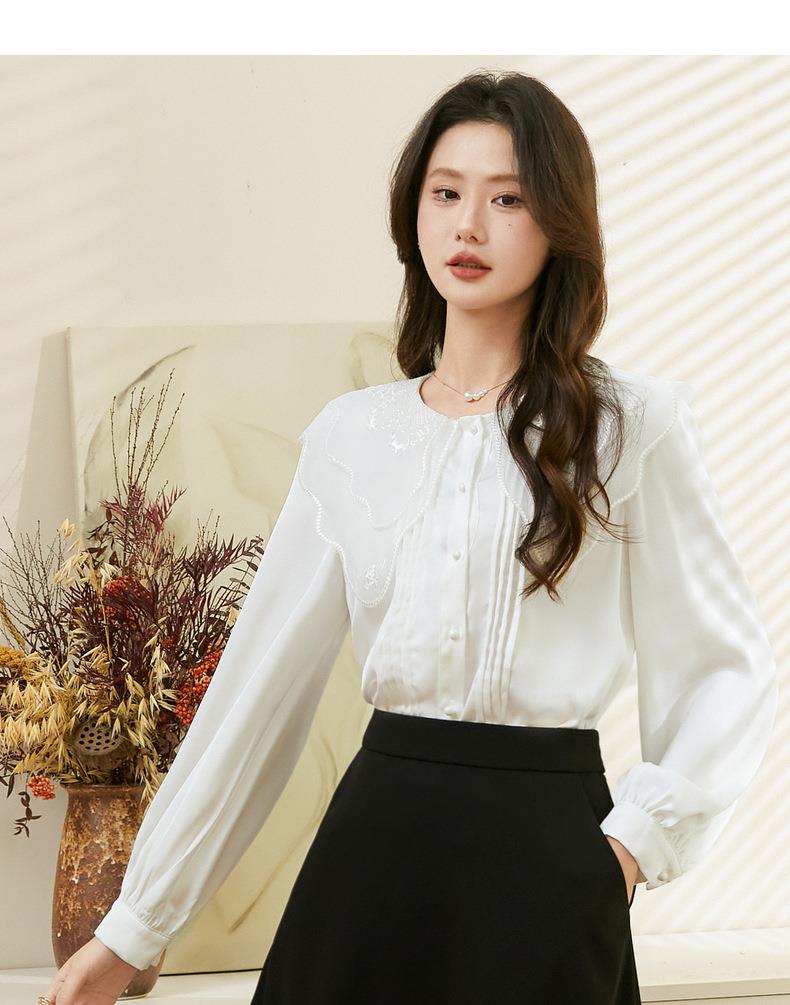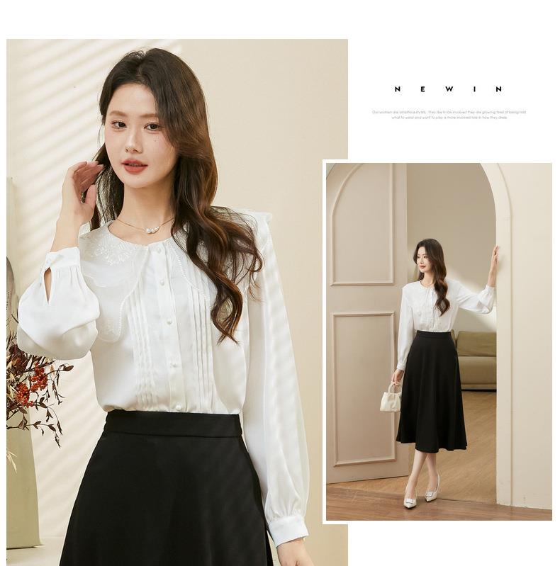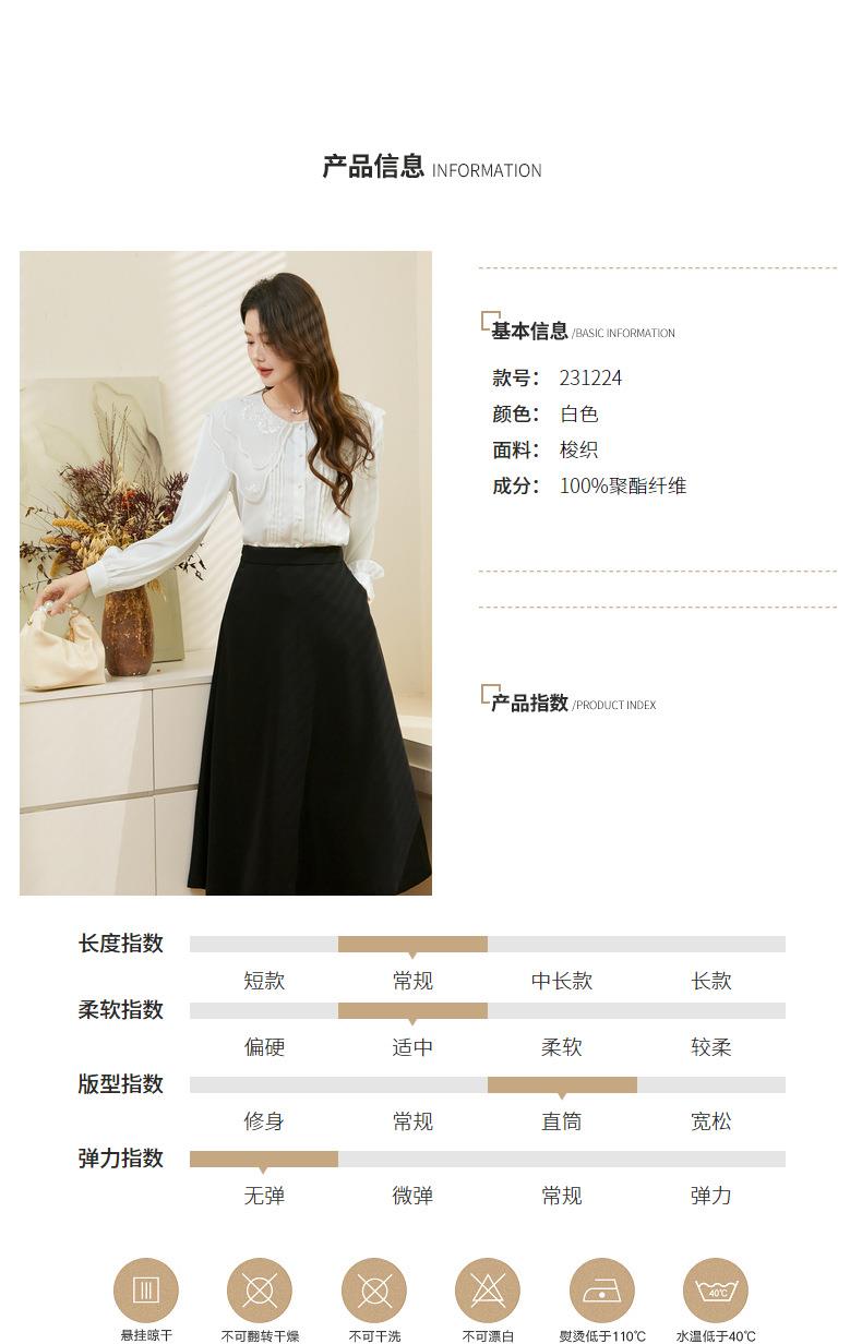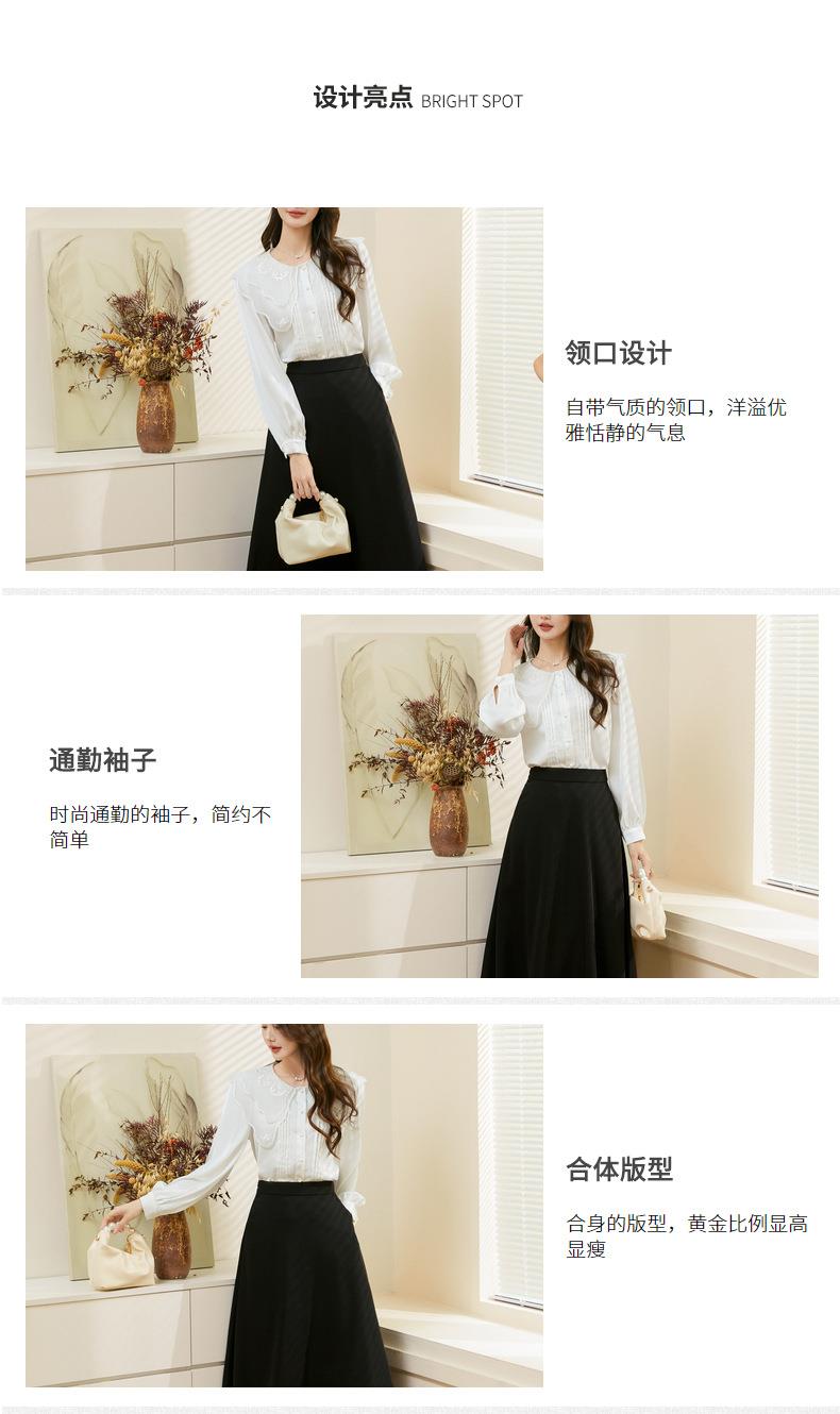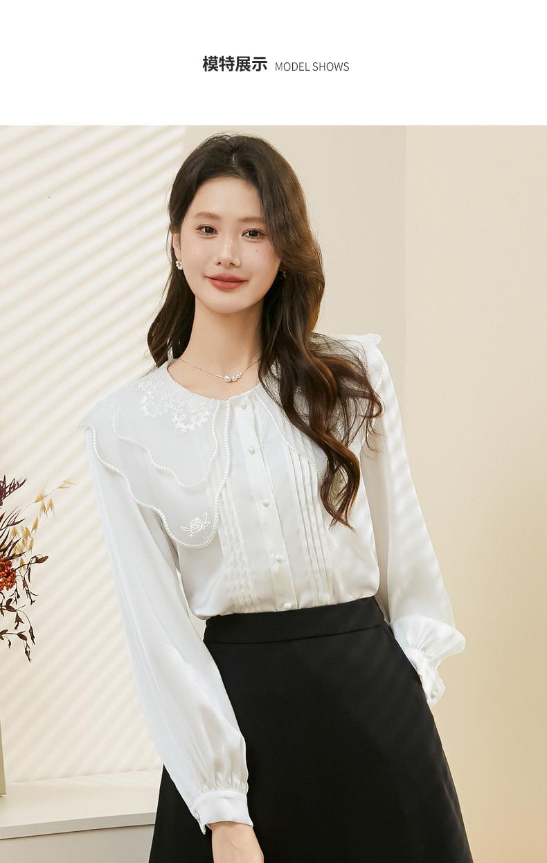 百姿 娃娃领减龄长袖衬衫2023秋季新款直筒纯色优雅上衣女231224