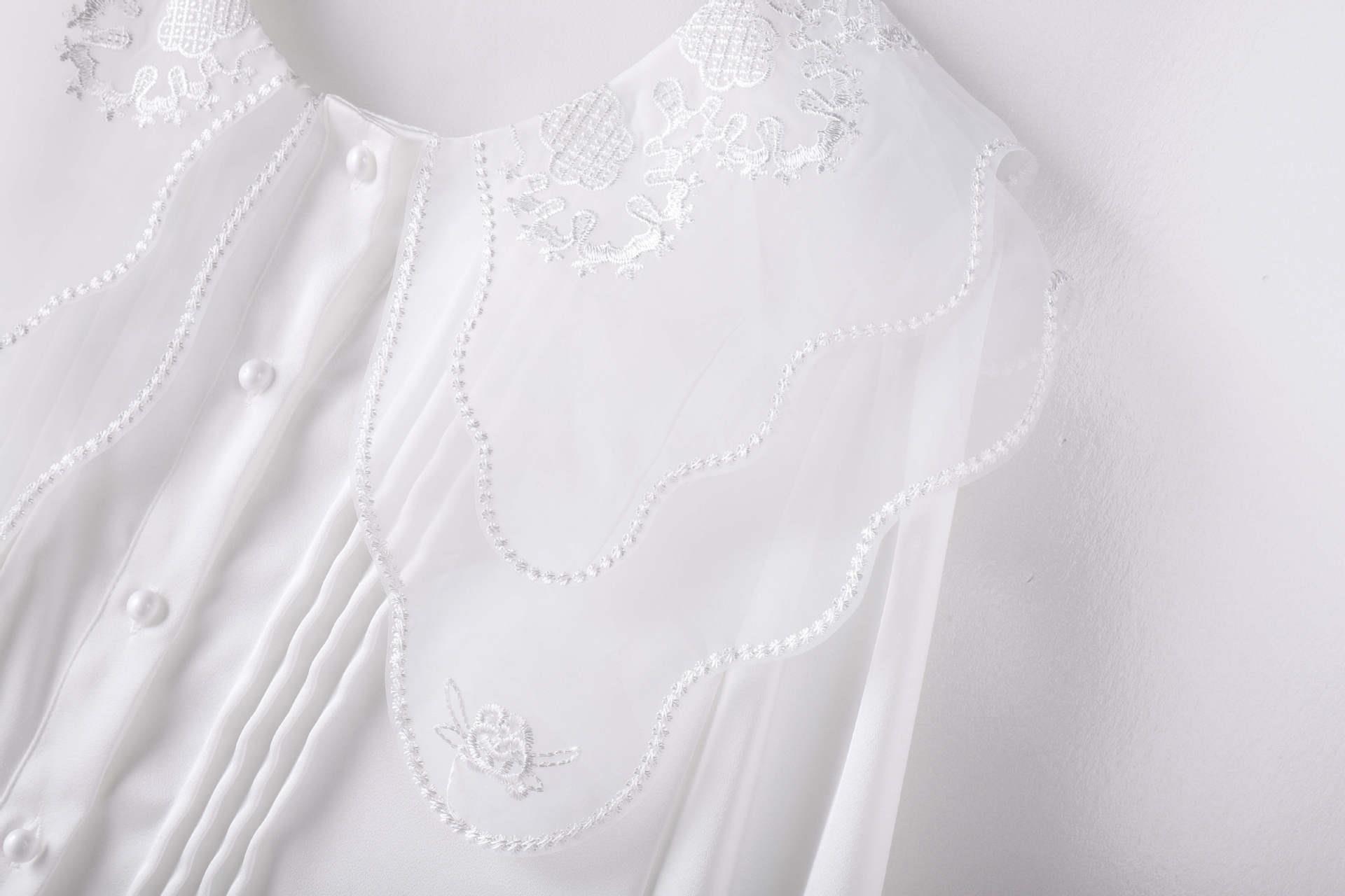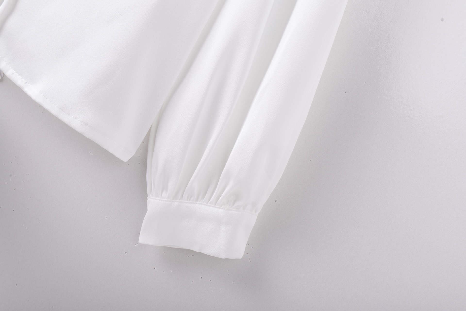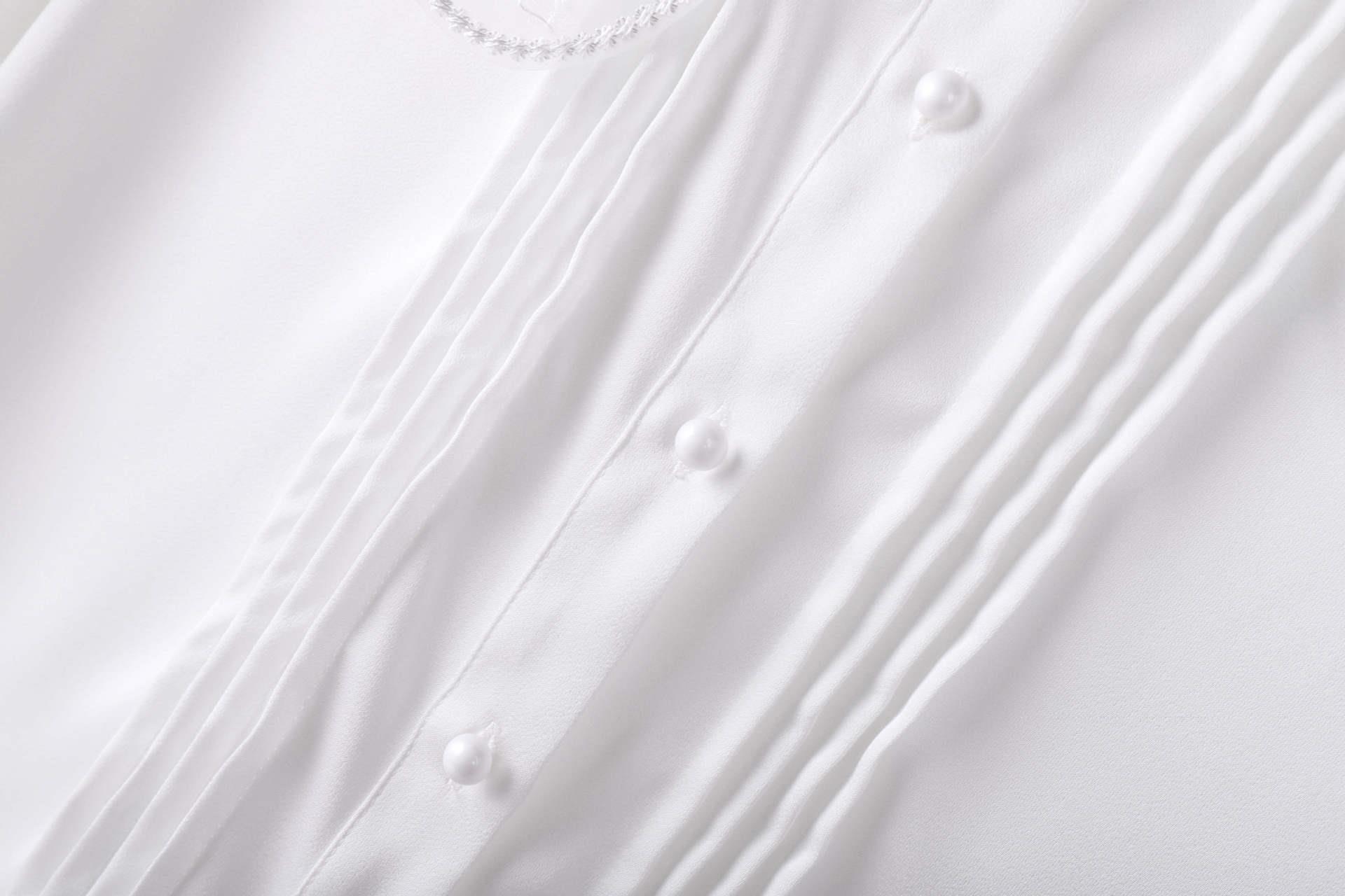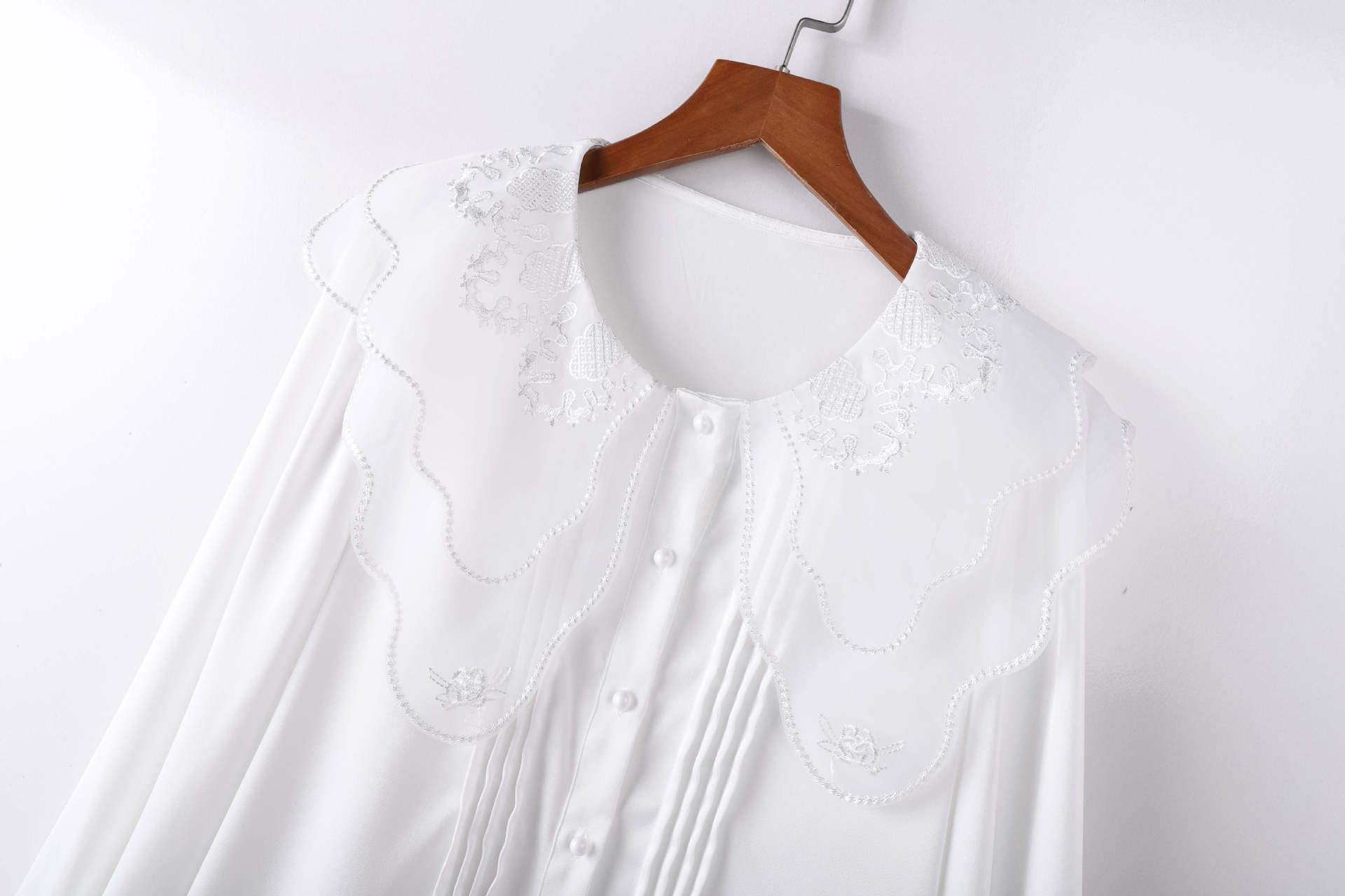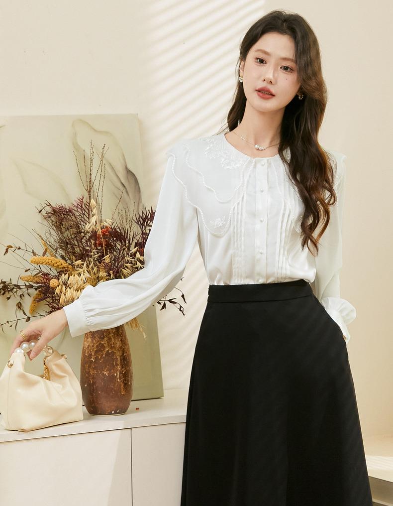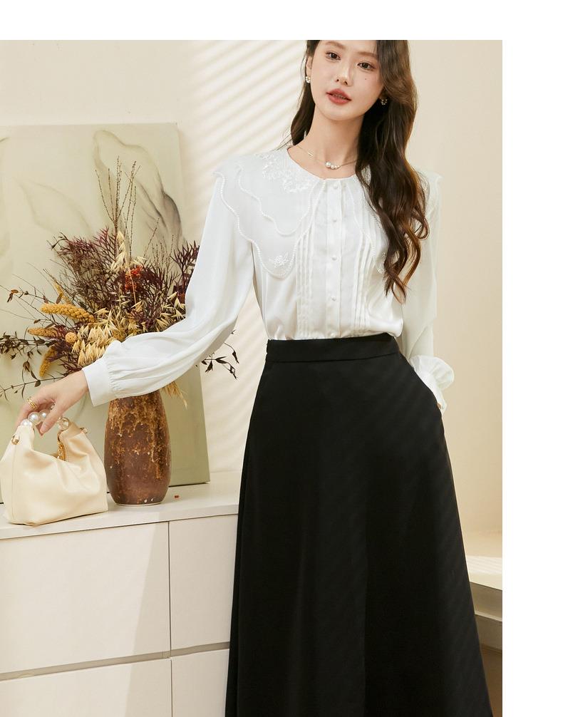 百姿 娃娃领减龄长袖衬衫2023秋季新款直筒纯色优雅上衣女231224