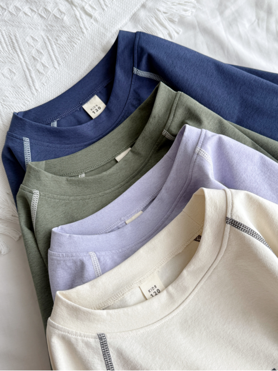 ▪️版型宽松:多为宽松插肩版型,活动空间大,跑跳蹲坐都自如,且不会露腰,适合孩子活泼好动的天性。 ▪️设计简约:有简约纯色搭配小印花的款式,清新自然又百搭;也有插肩袖拼色设计,时尚感十足,修饰身形的同时,展现孩子的活力。 ▪️细节精致:领口细腻有型;通身无感缝线,避免摩擦孩子皮肤
