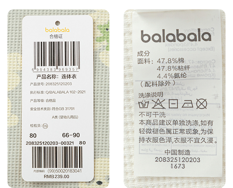巴拉巴拉balaOne婴儿连体衣宝宝爬服哈衣2025新款潮流时尚可爱萌