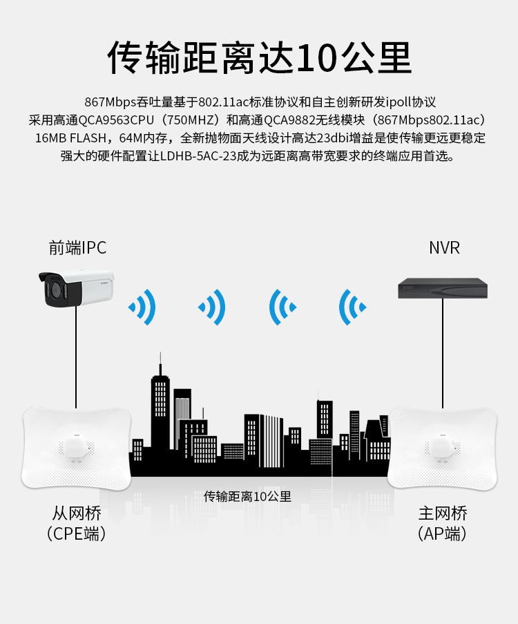 10公里室外千兆网桥[QCA9563]867M+抛物面天线24V POE CP510GE