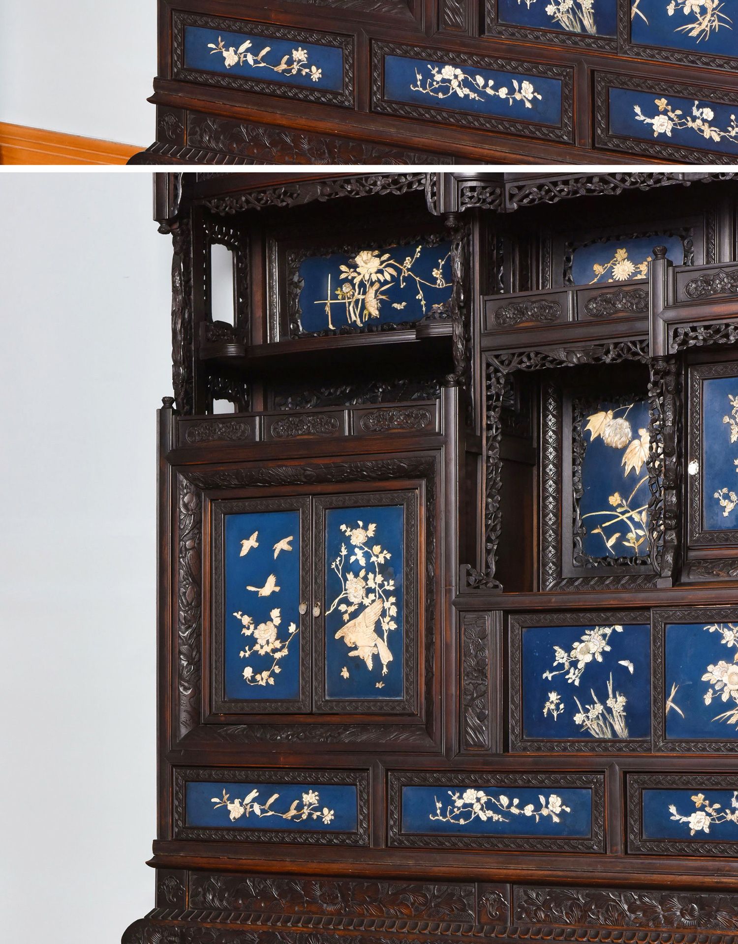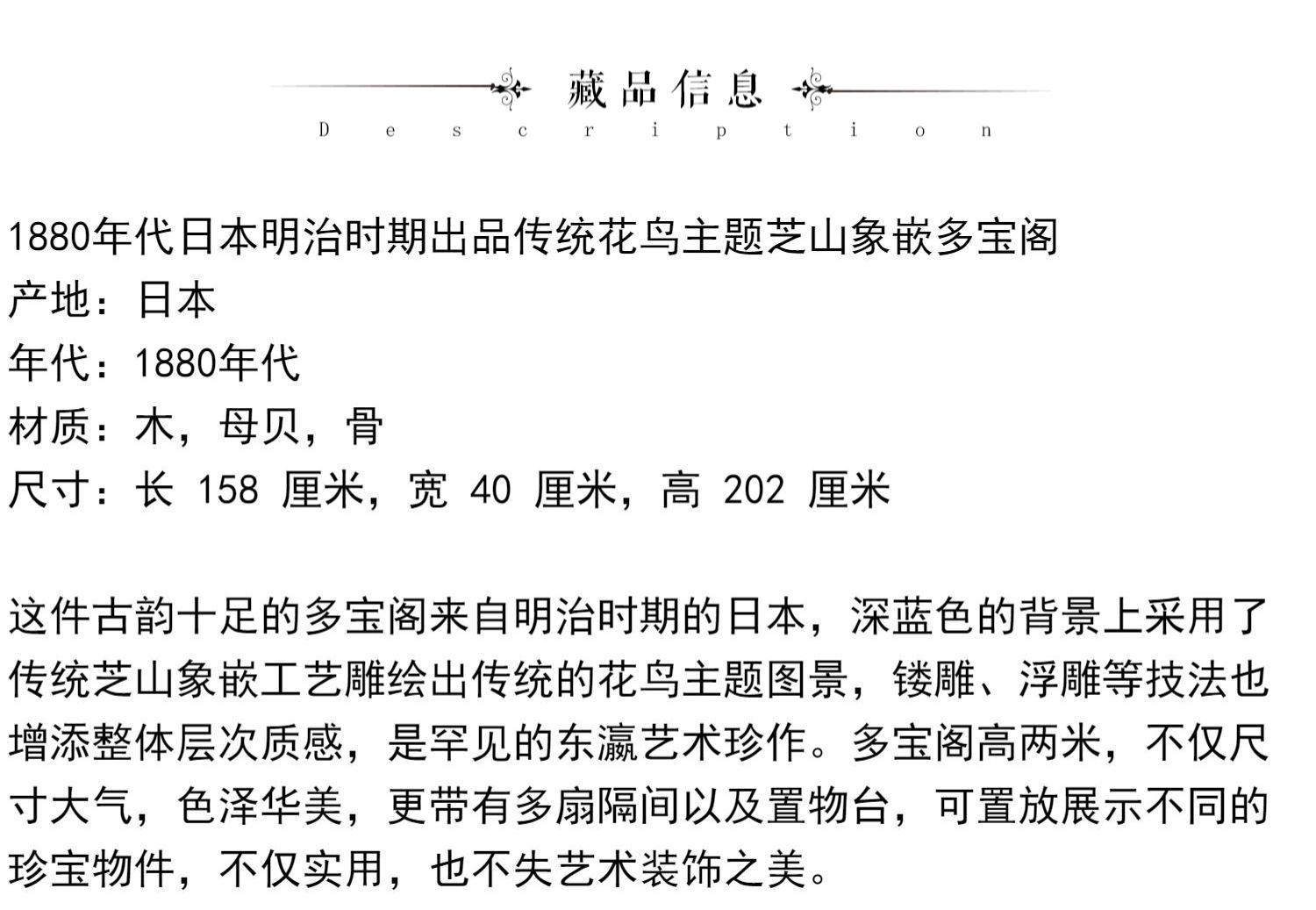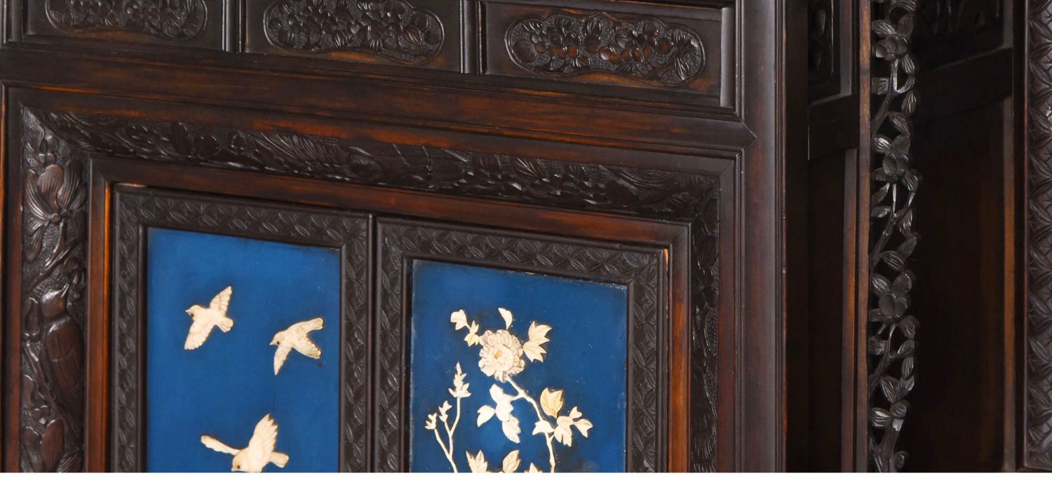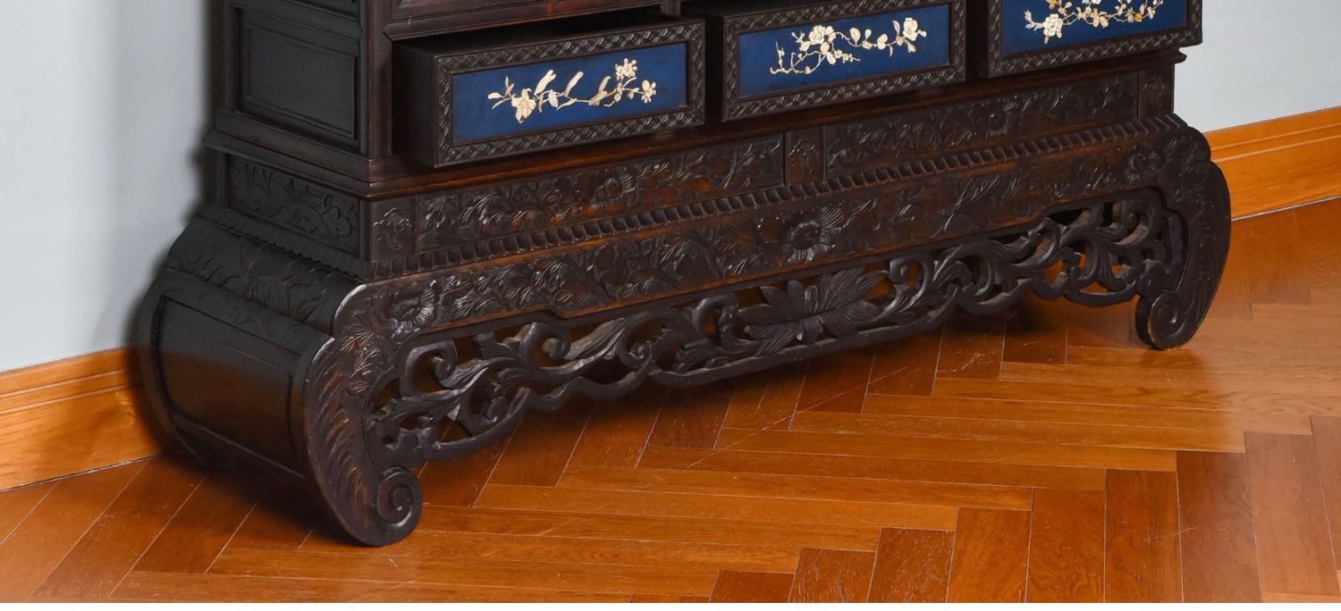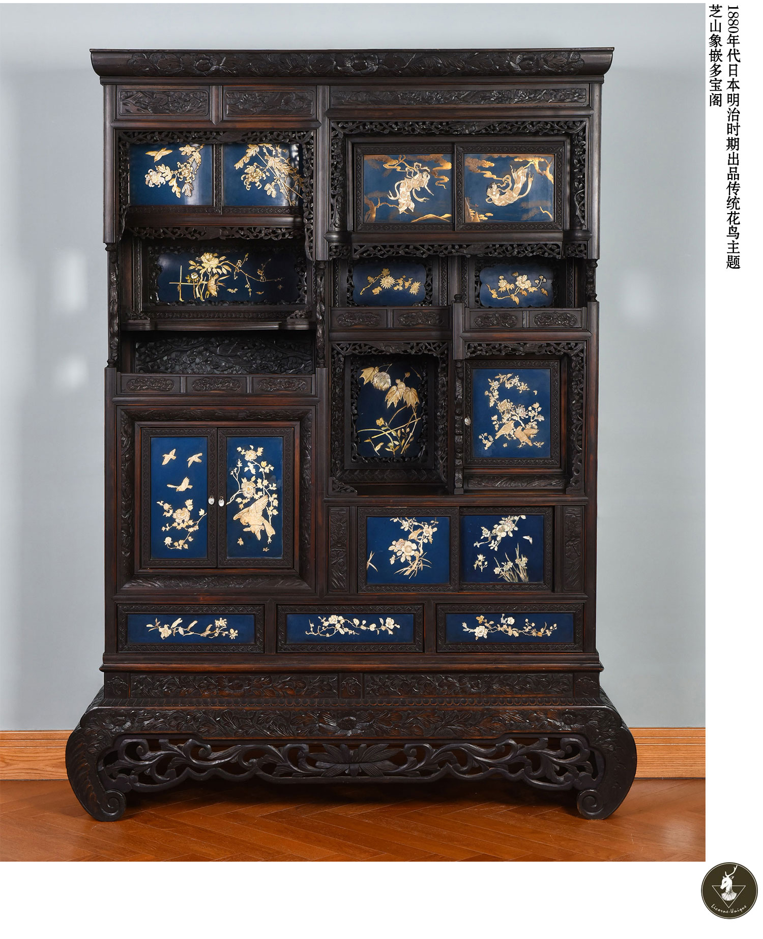 独角鹿西洋古董家具日本明治时期传统花鸟芝山象嵌多宝阁立柜