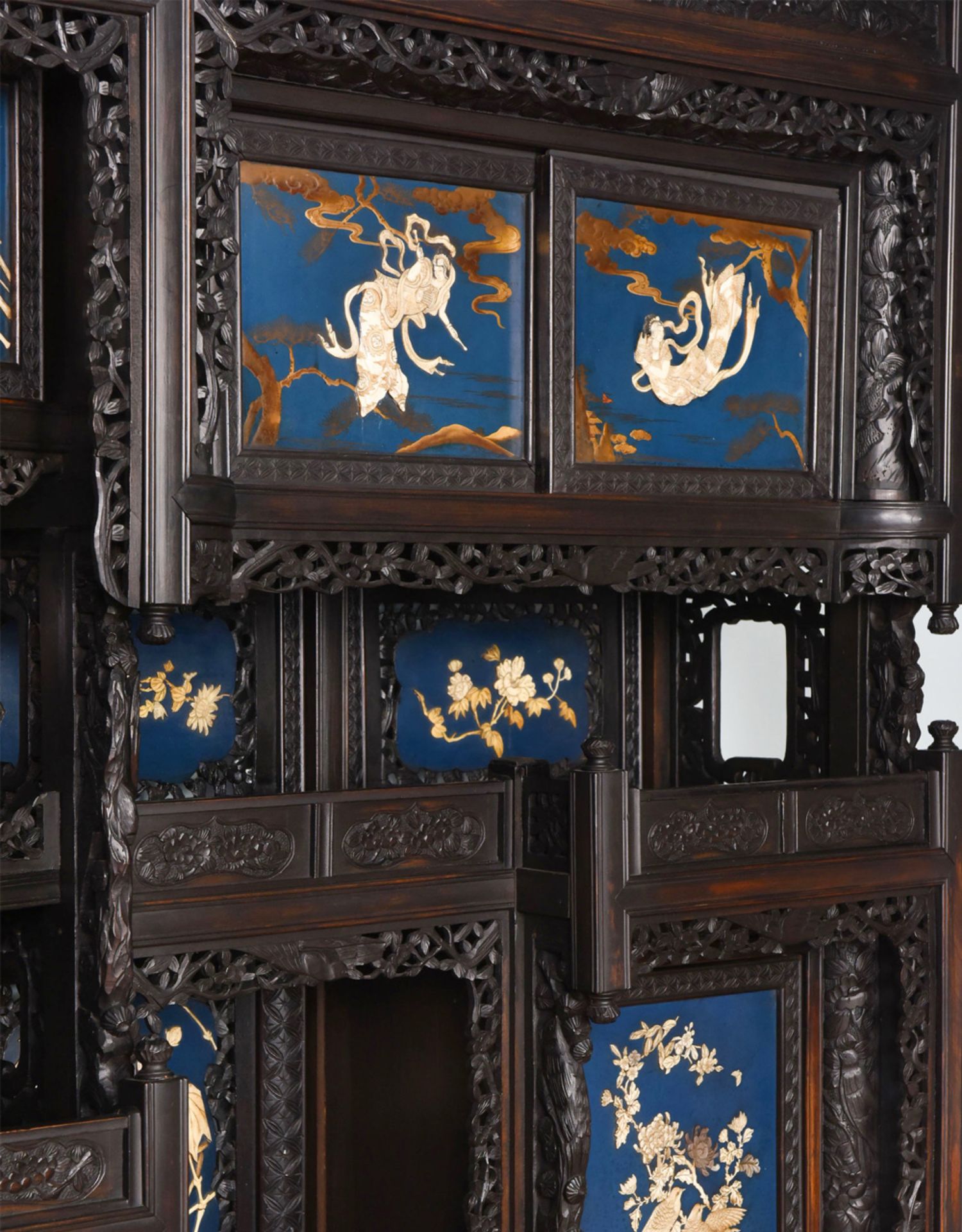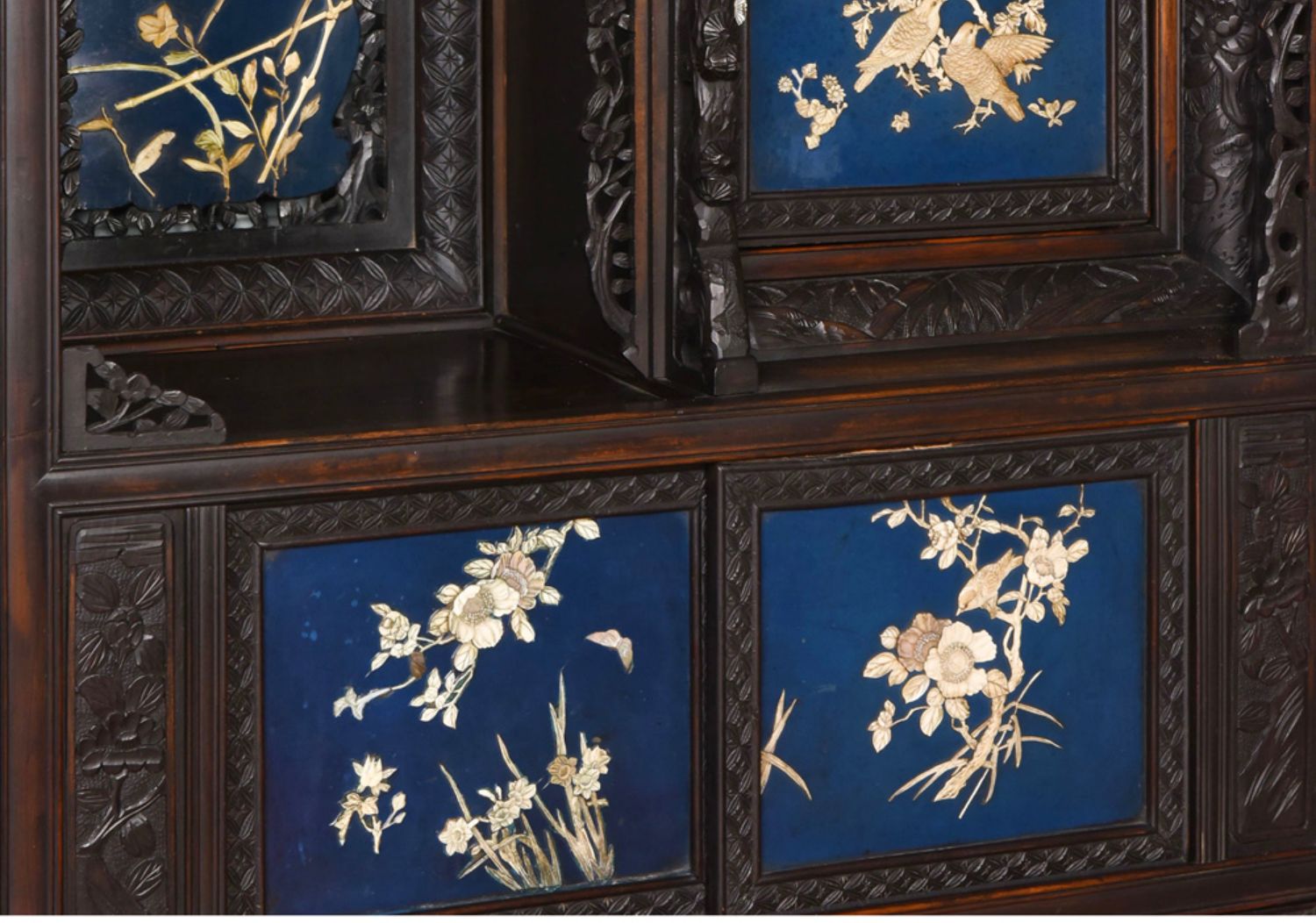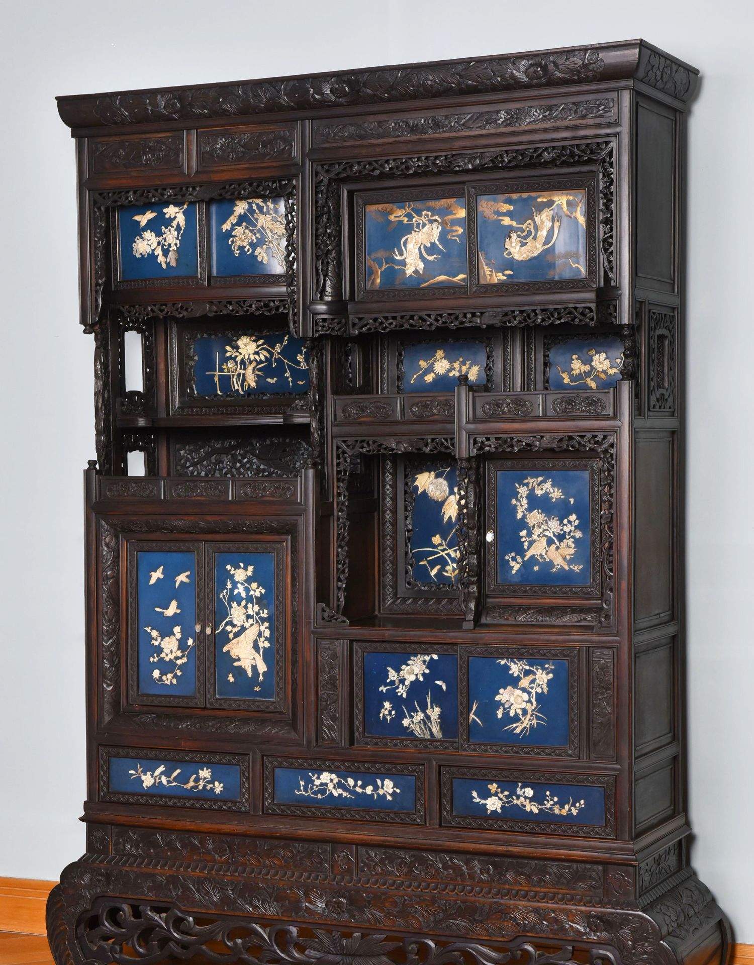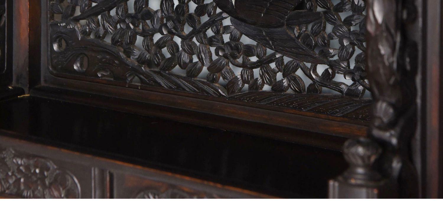 独角鹿西洋古董家具日本明治时期传统花鸟芝山象嵌多宝阁立柜