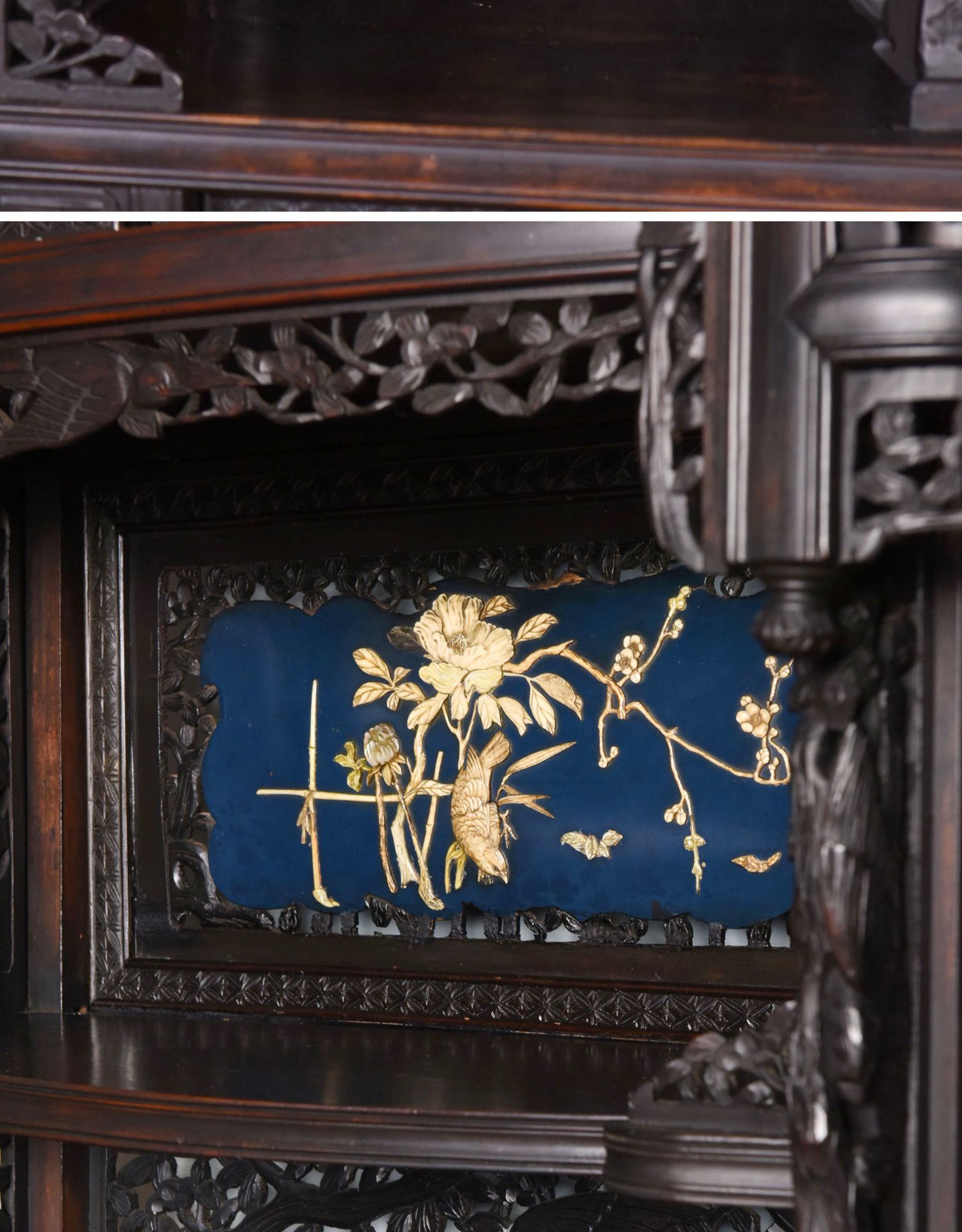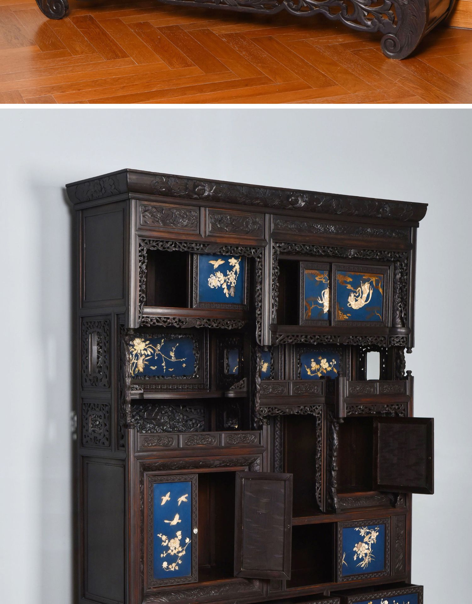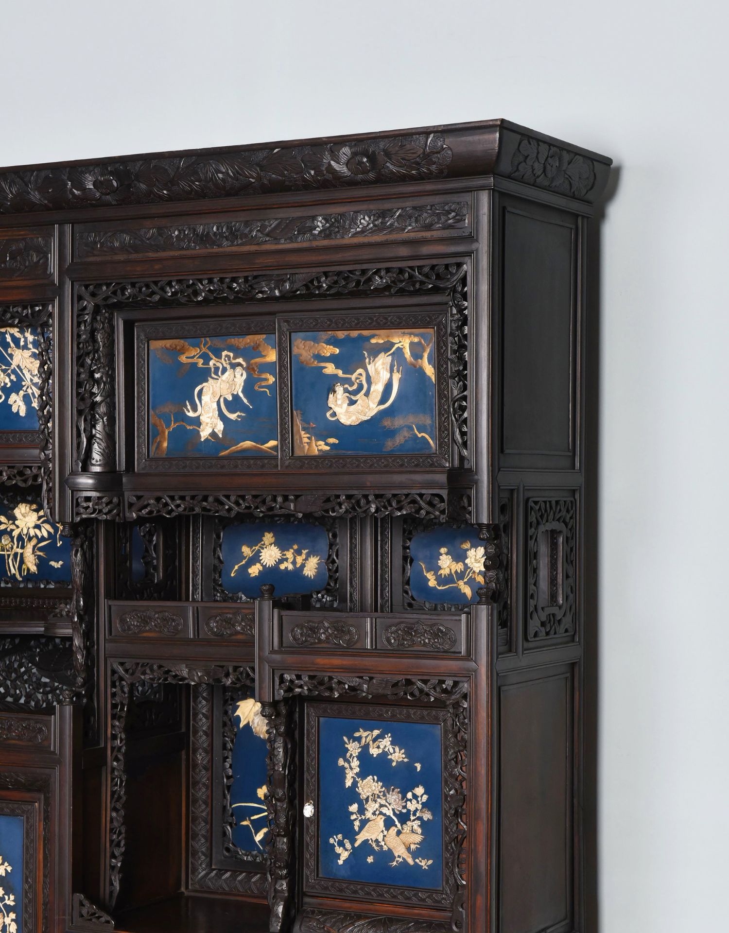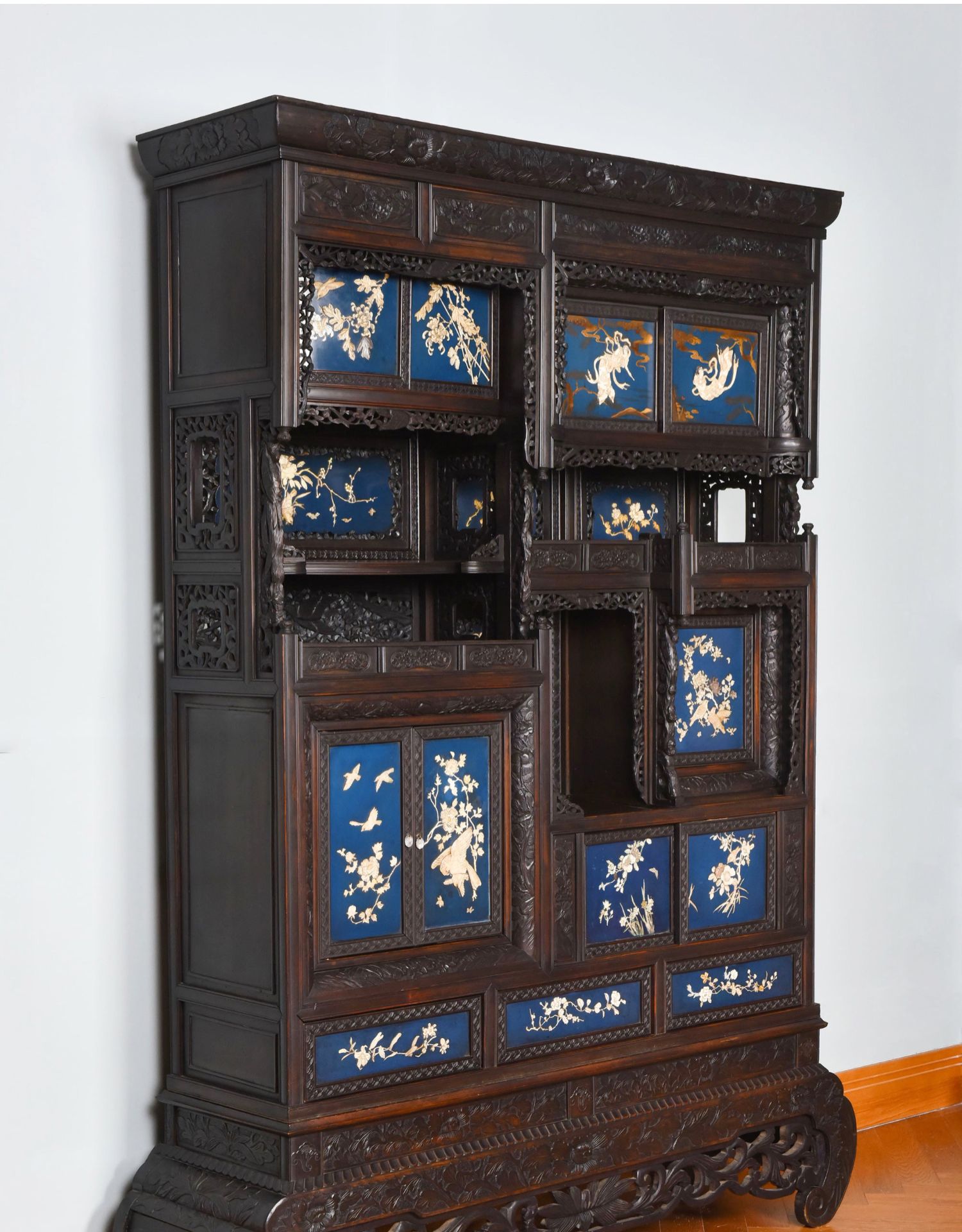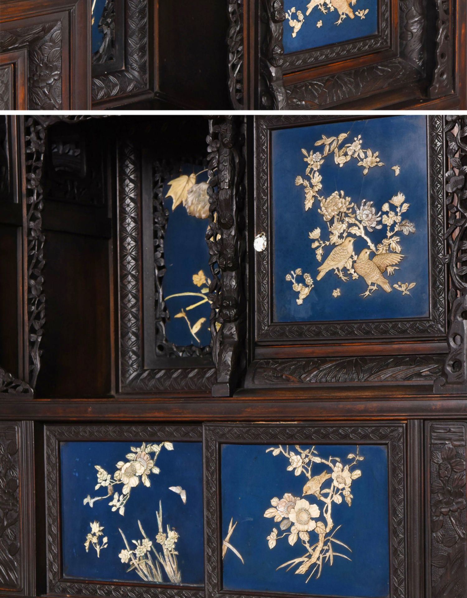 独角鹿西洋古董家具日本明治时期传统花鸟芝山象嵌多宝阁立柜