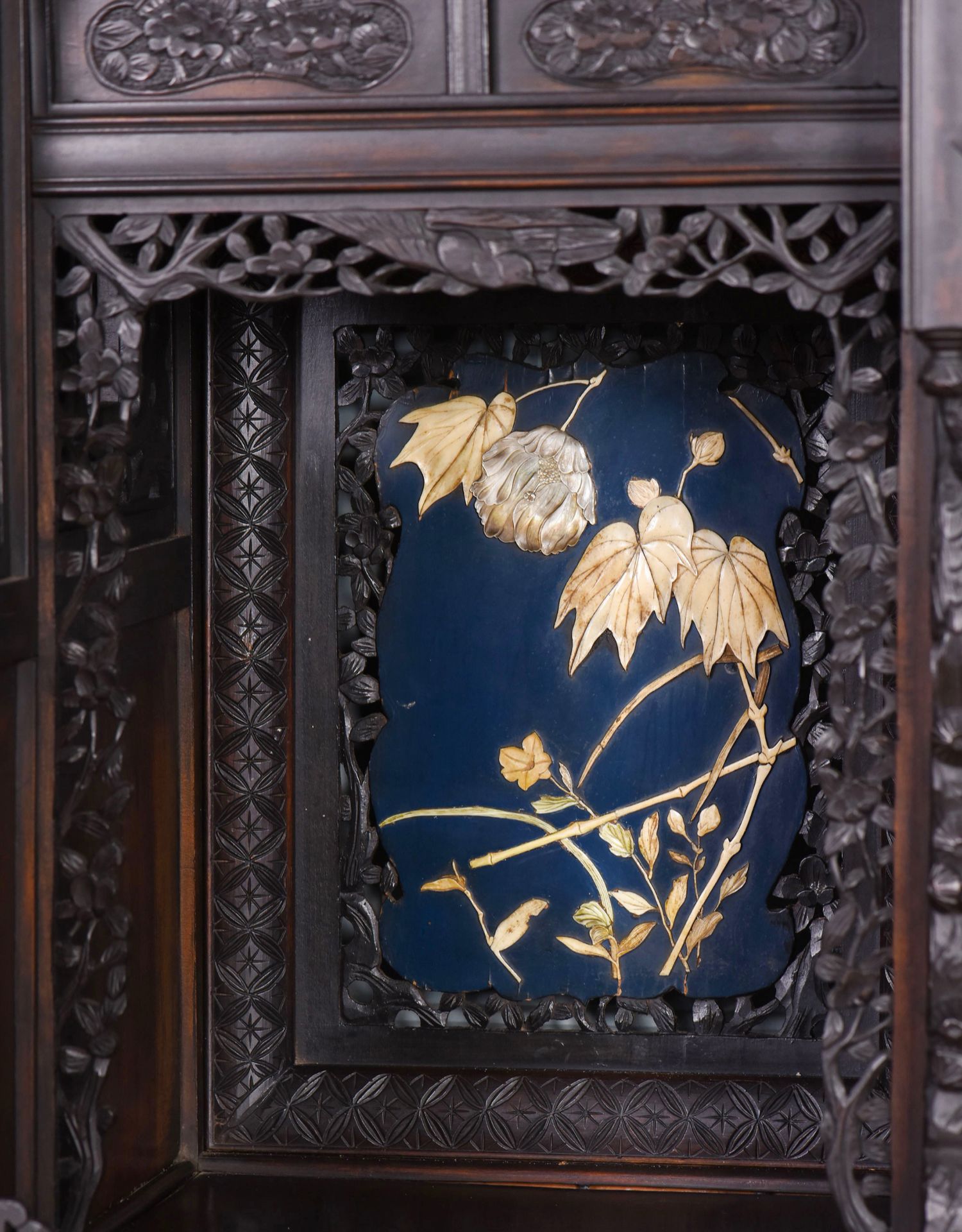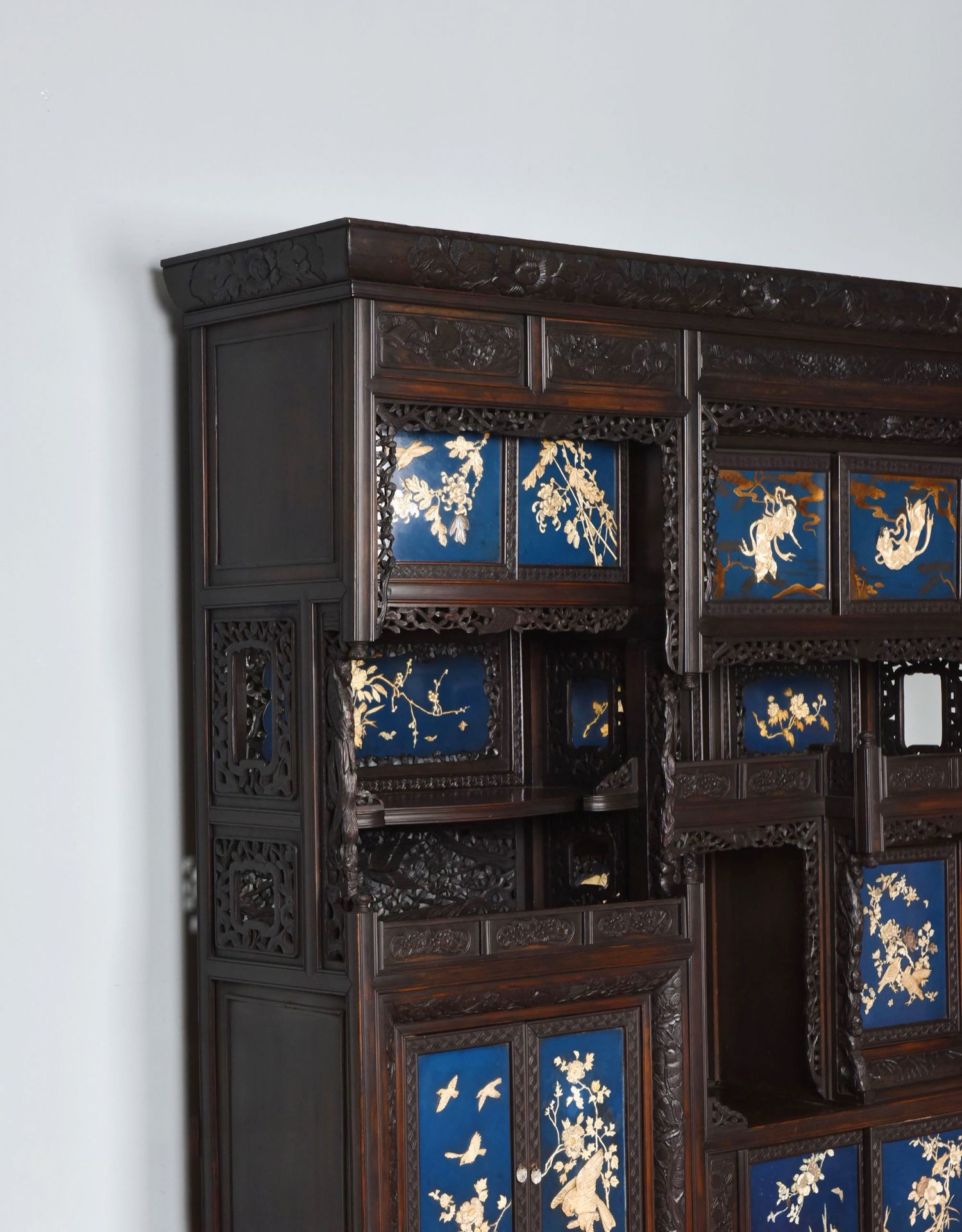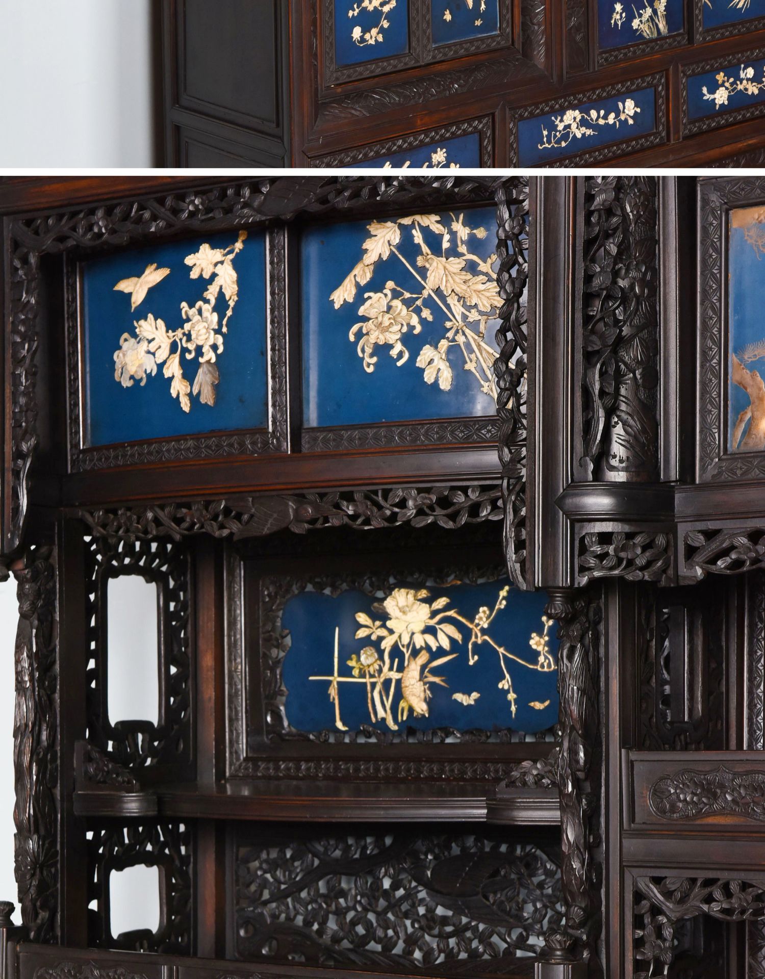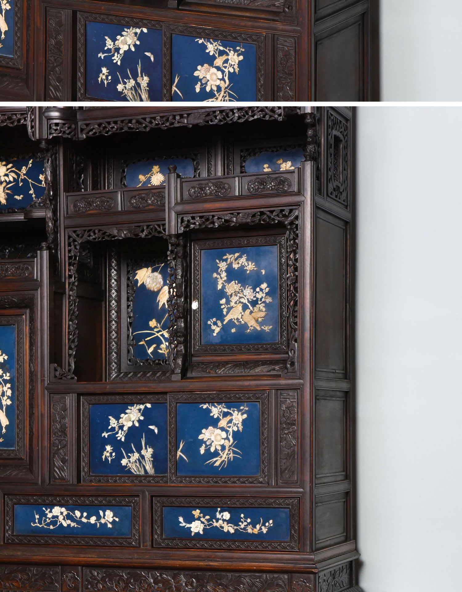 独角鹿西洋古董家具日本明治时期传统花鸟芝山象嵌多宝阁立柜