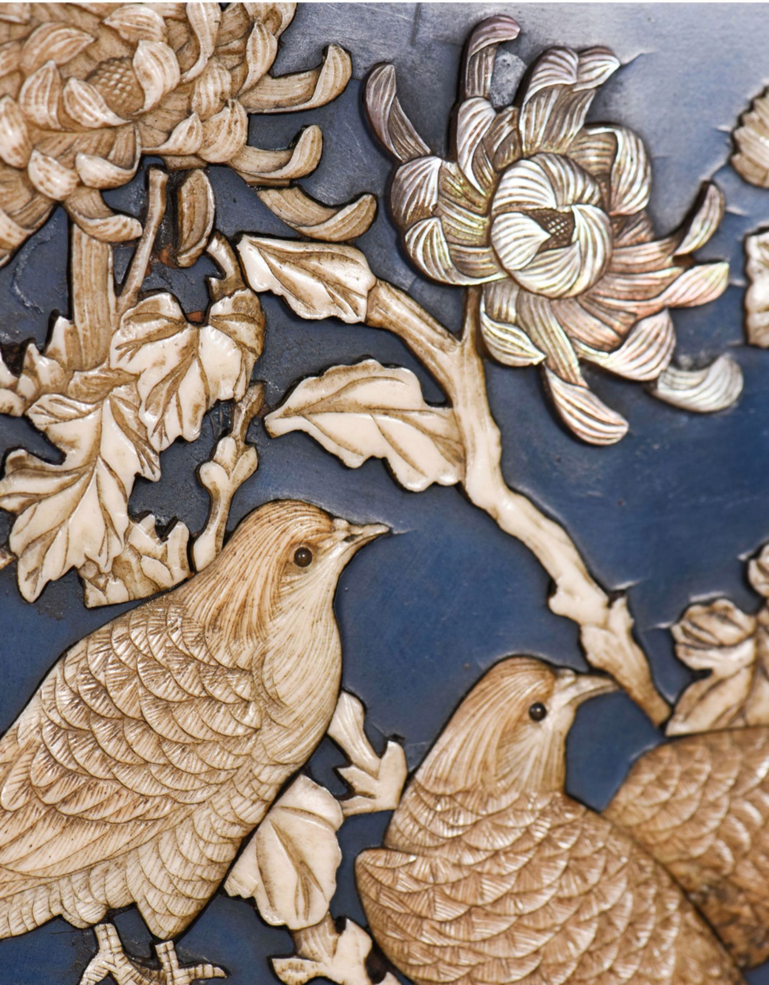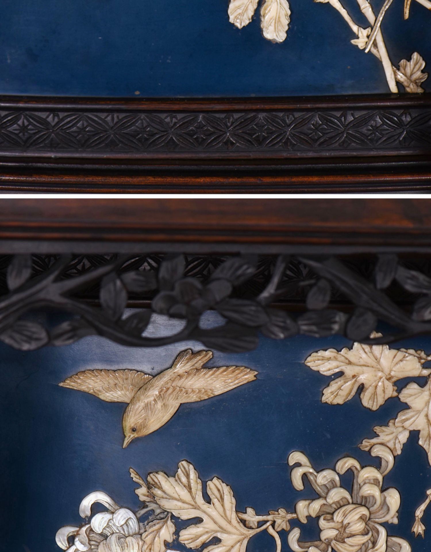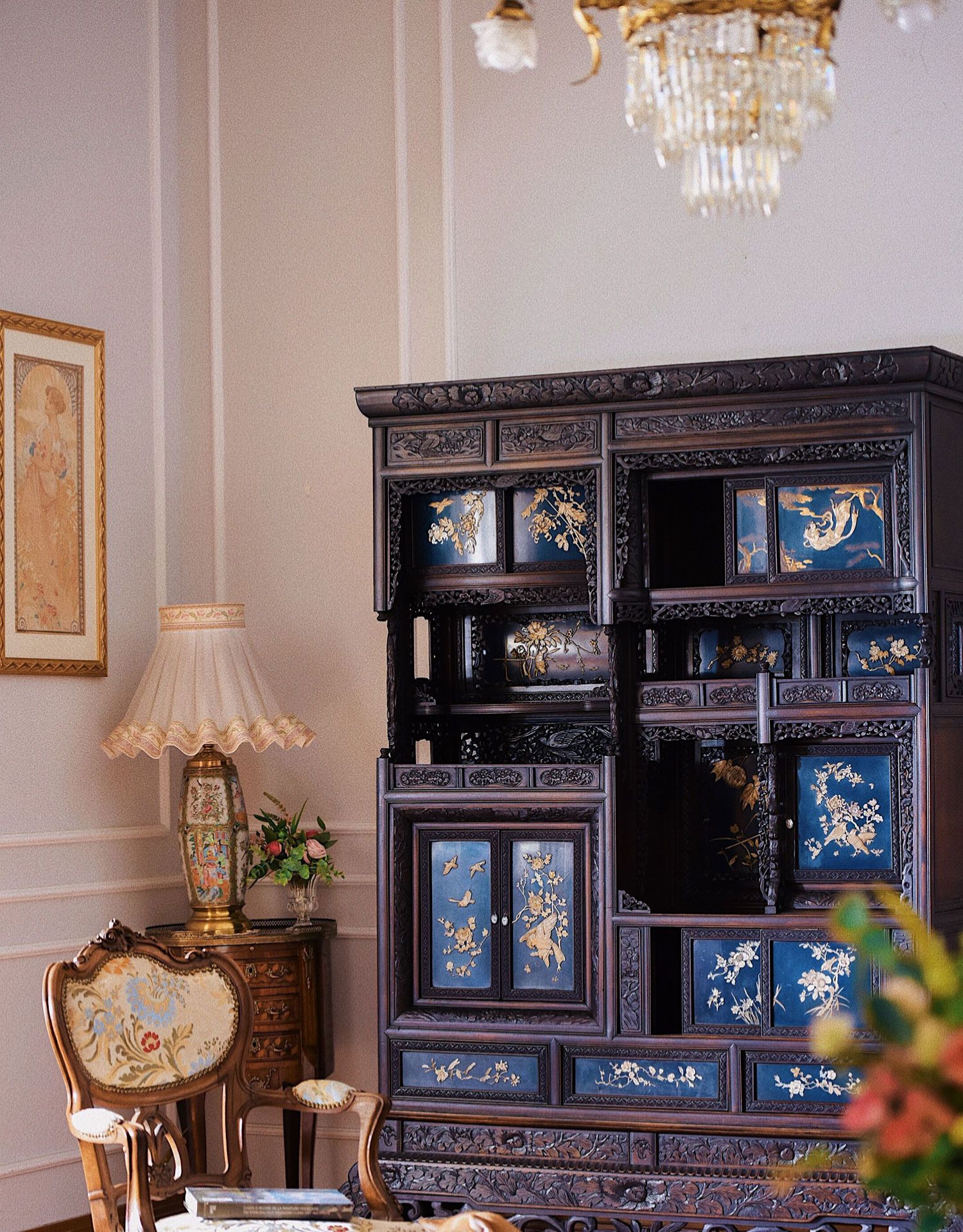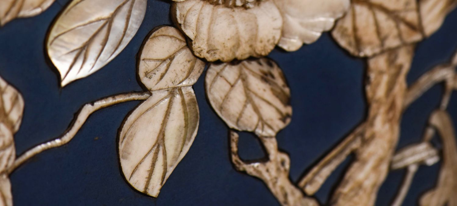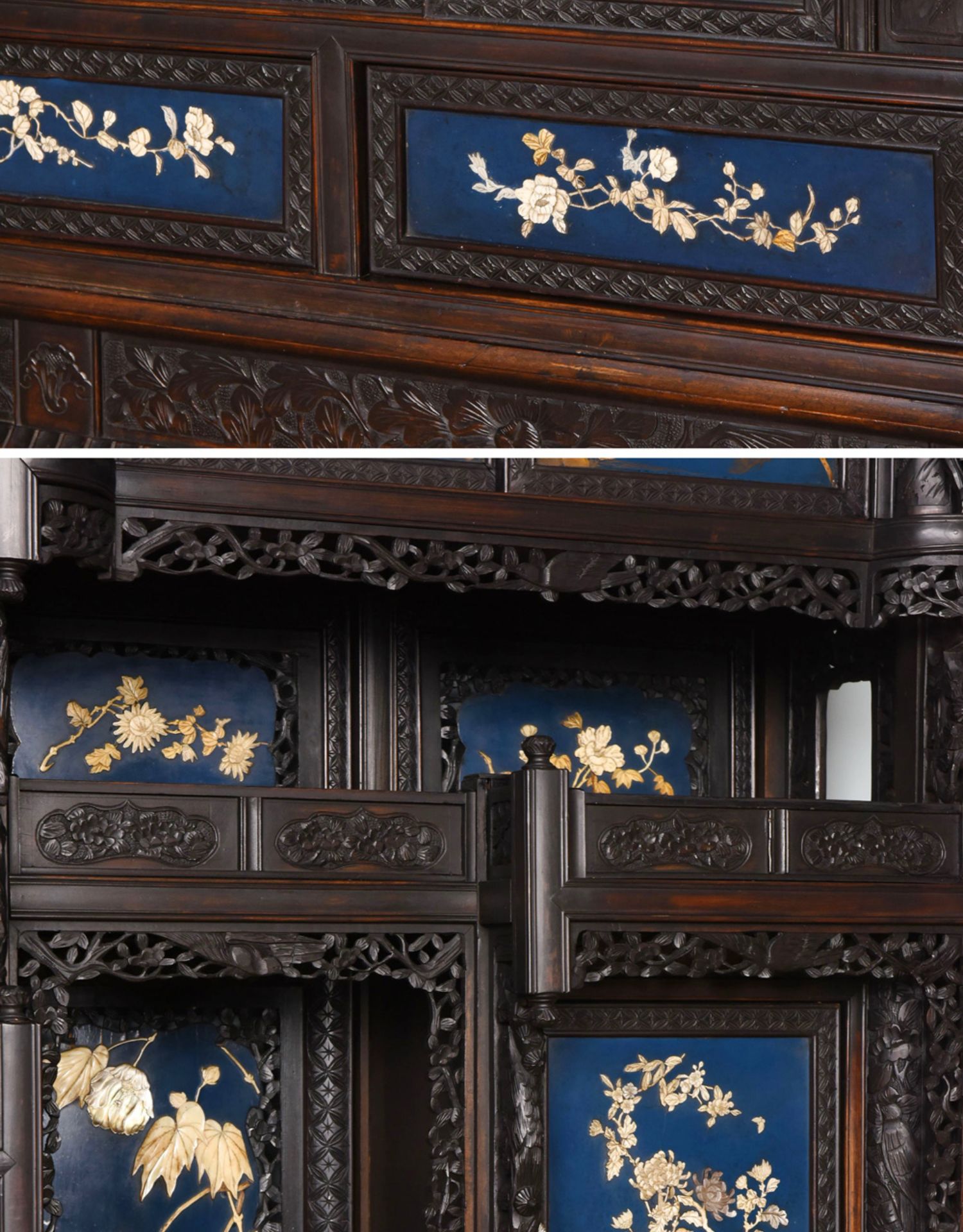 独角鹿西洋古董家具日本明治时期传统花鸟芝山象嵌多宝阁立柜