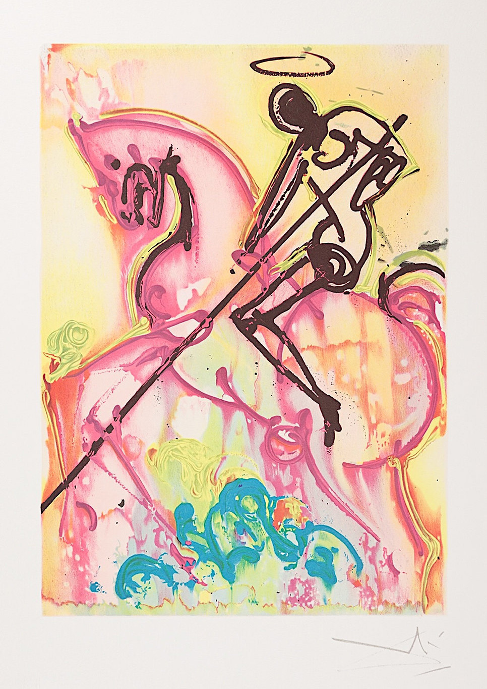 1983年代法国Armand & Georges Israel出版西班牙超现实主义大师萨尔瓦多·达利图版签名创作限量彩色石版画《圣乔治》