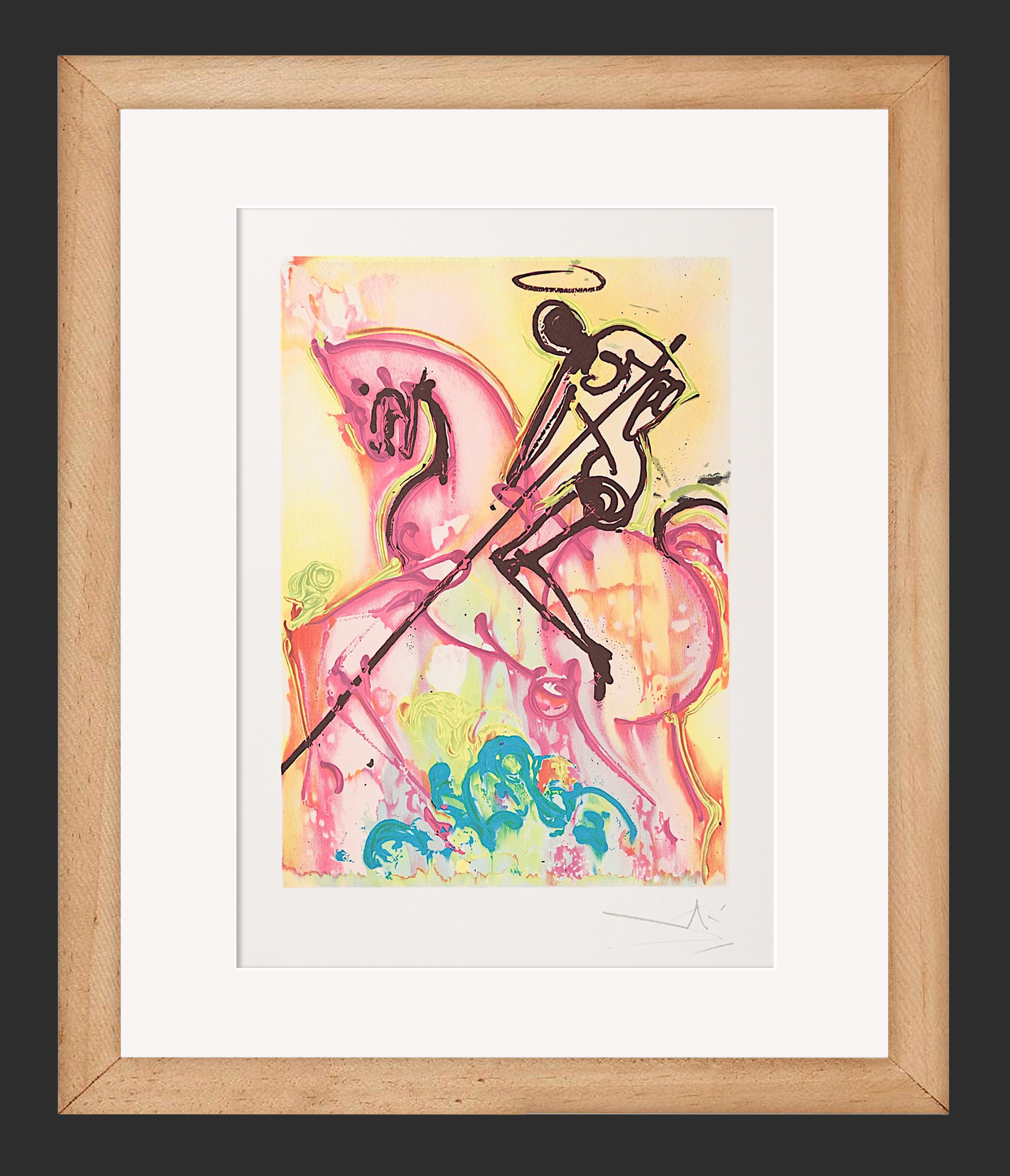 独角鹿西洋古董1983年代法国Armand & Georges Israel出版西班牙超现实主义大师萨尔瓦多·达利图版签名创作限量彩色石版画《圣乔治》
