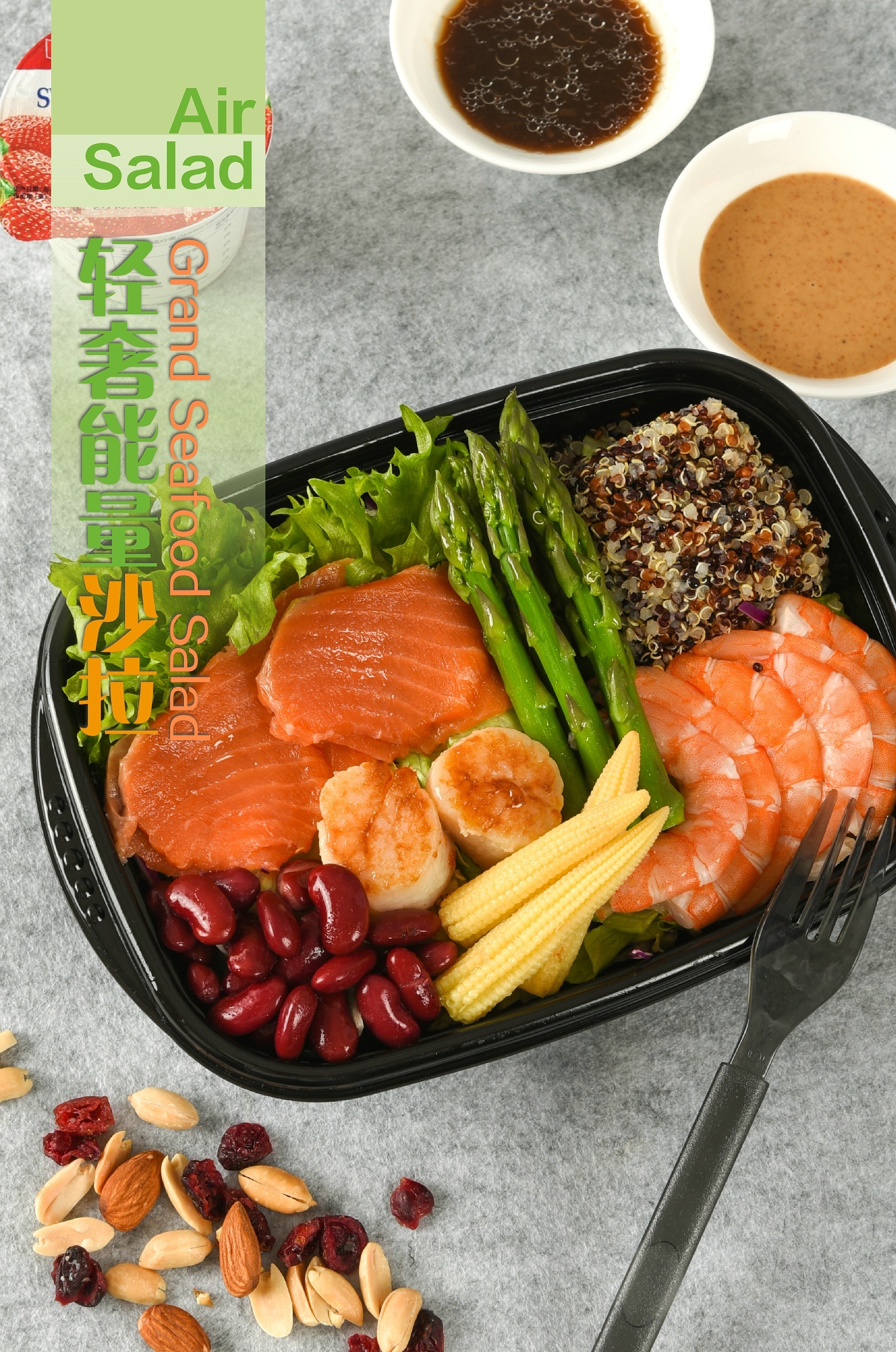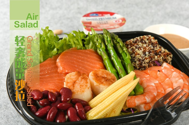 推荐理由:结构合理,营养均衡。以什锦生菜、优雅生菜、芦笋等高档时蔬为主料,具有高膳食纤维、高维C的特性,易带来饱腹感,促进肠胃蠕动帮助消化吸收;精选适量藜麦作为主食,藜麦富含人类需求的各类营养物质,选取澳带、三文鱼、草虾等优质蛋白质来源,更易被人体吸收利用;餐后搭配瑞士进口Emmi酸奶,调节肠道菌群,促进新陈代谢。餐食整体具有低脂、低糖、低盐、高纤维等特点,同时富含维生素及矿物质,满足人体每日各种营养素需求。