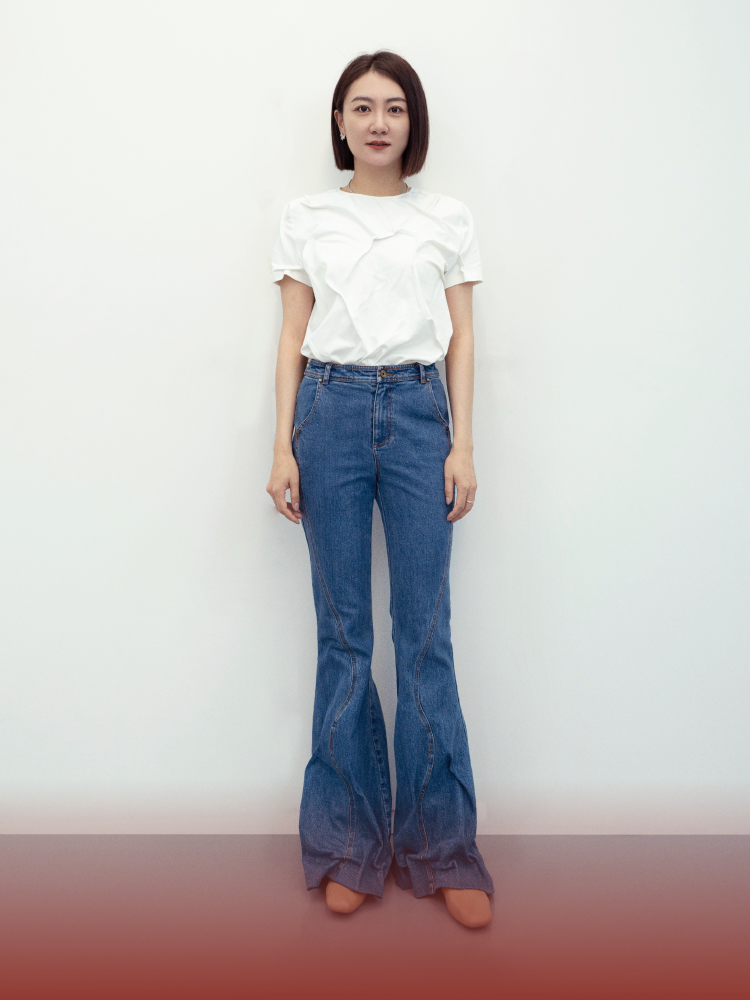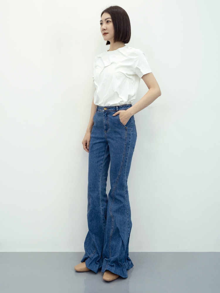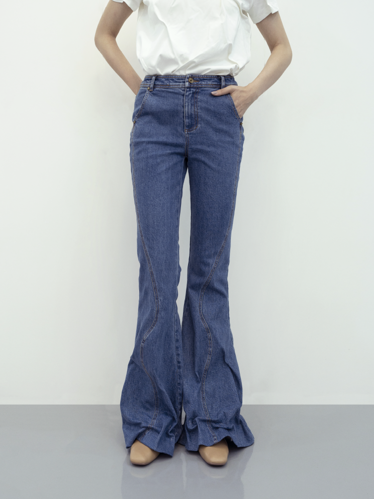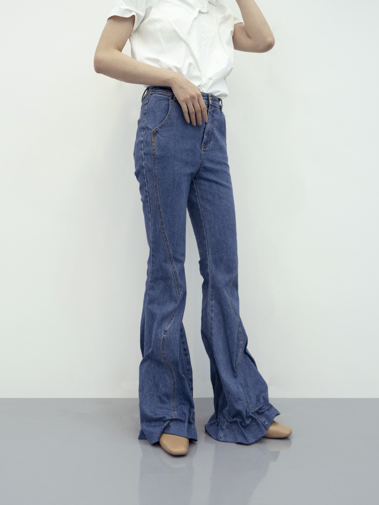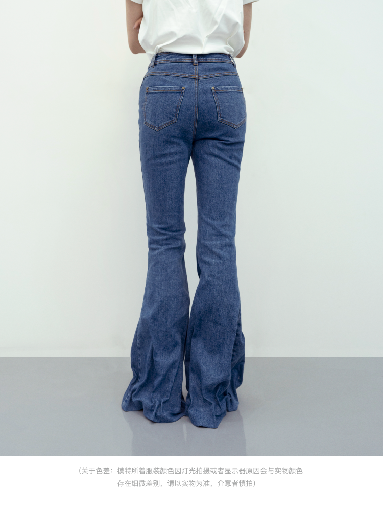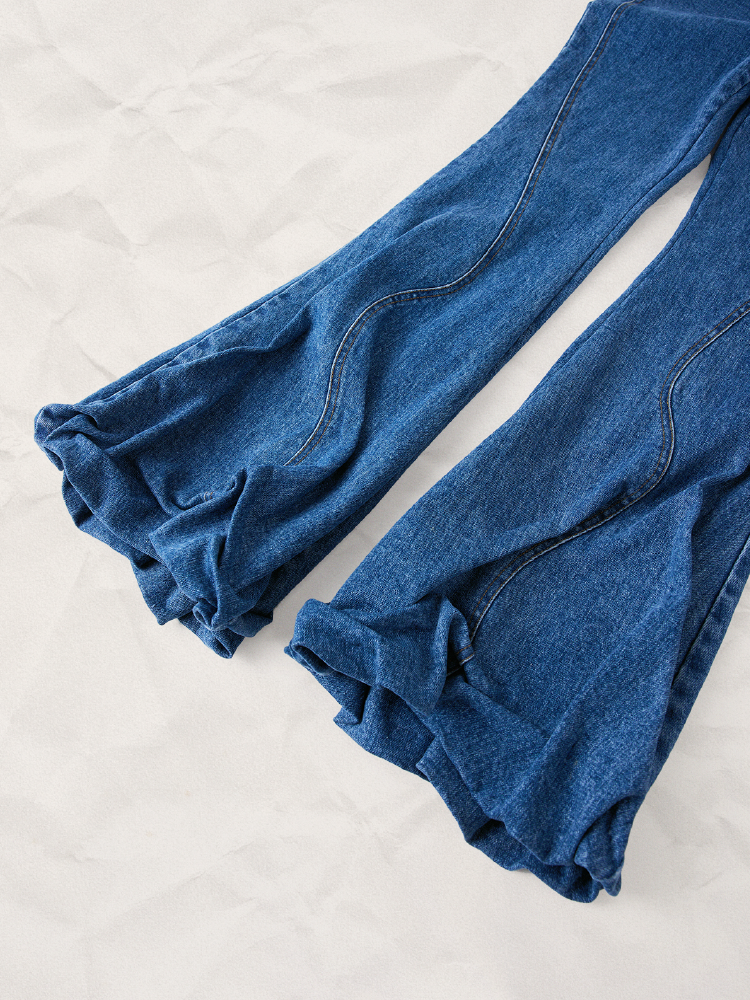LIYIHAN 收褶喇叭牛仔裤 Y233K08550