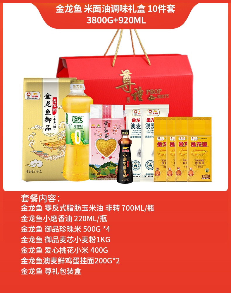 金龙鱼 米面油调味礼盒 10件套 3800g+920ml
