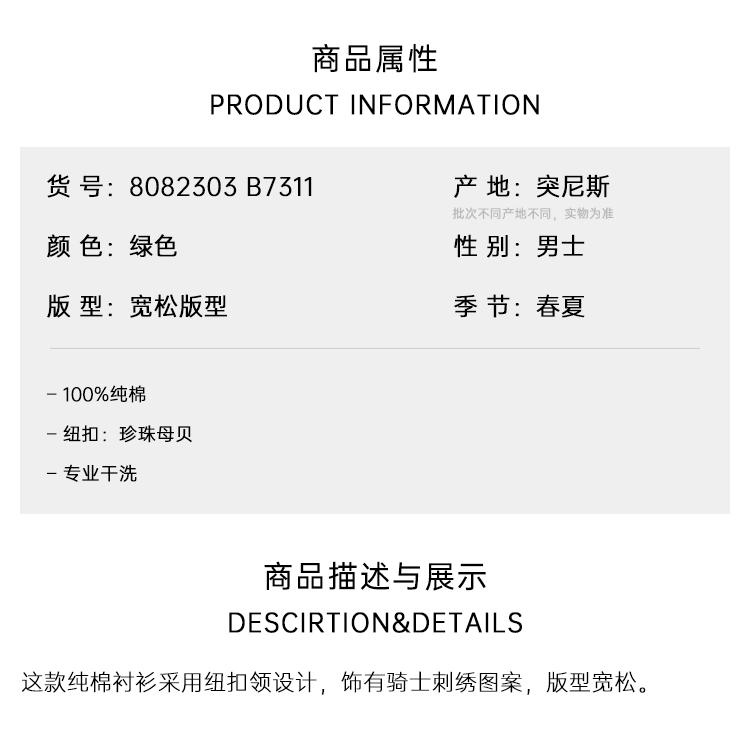 【二】BURBERRY 巴宝莉 男士马术骑士刺绣徽标棉质牛津长袖衬衫 绿色 8082303 B7311