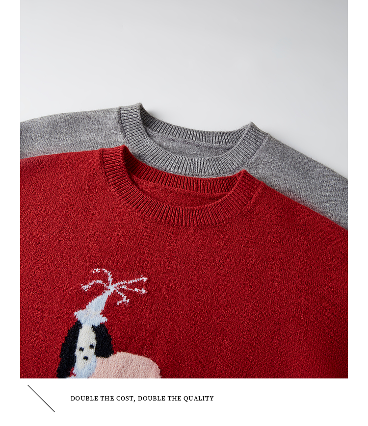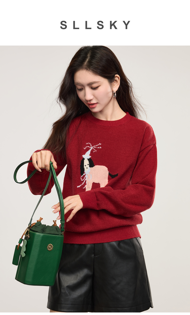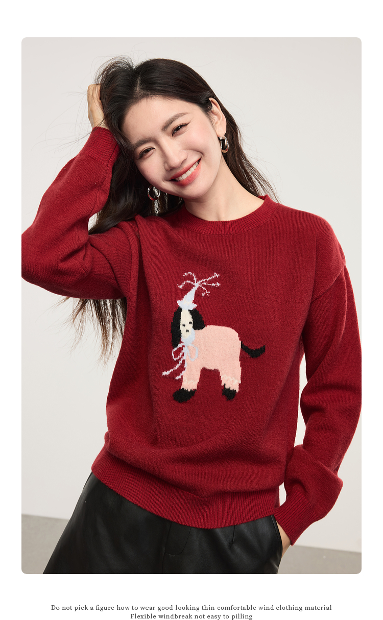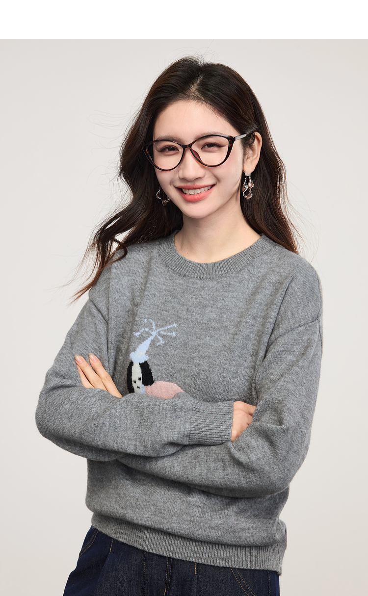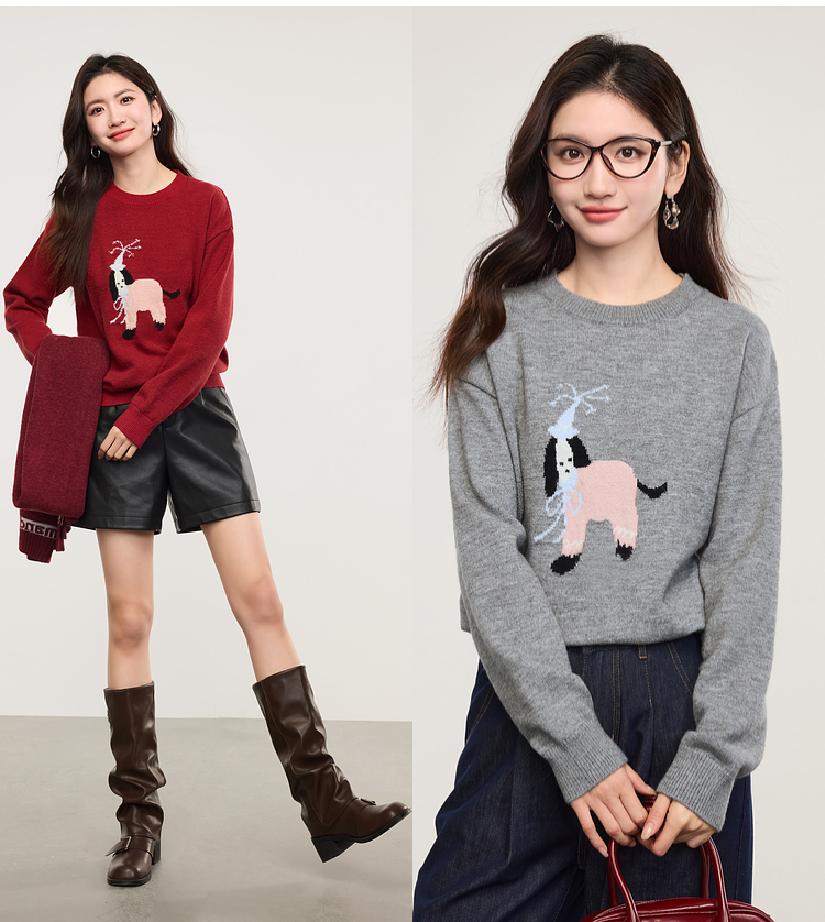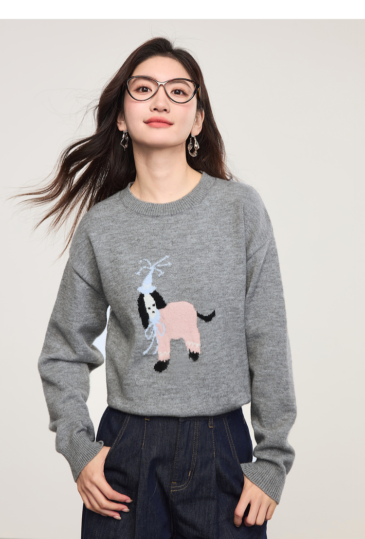 【年货节】熙世界萌宠狗狗提花毛衣女2025秋冬新款时髦减龄圆领套头毛针织衫