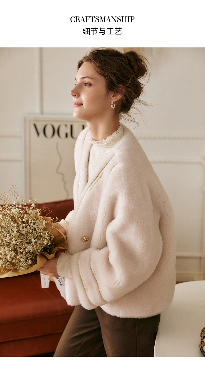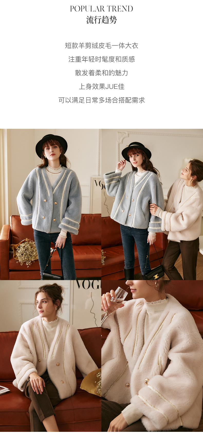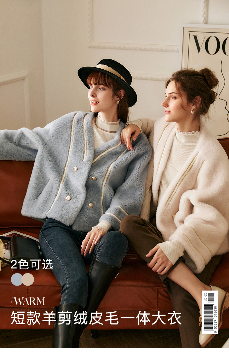 欧芮儿皮草外套女冬季2021年新款宽松显瘦气质羊剪绒皮毛一体大衣