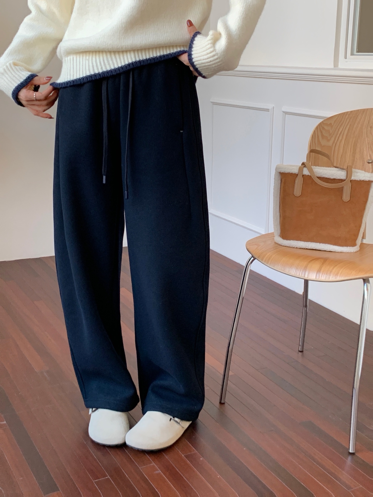 选用了今年爆款免水洗牛仔面料,同时面料中加入了绵羊毛和醋酸纤维。