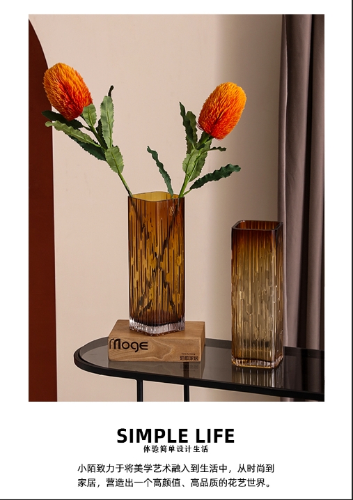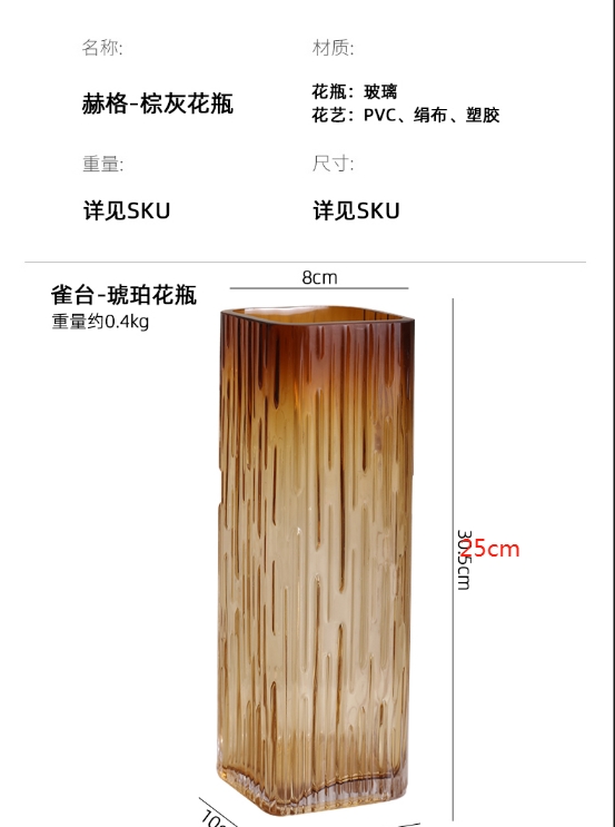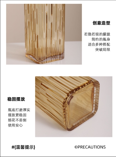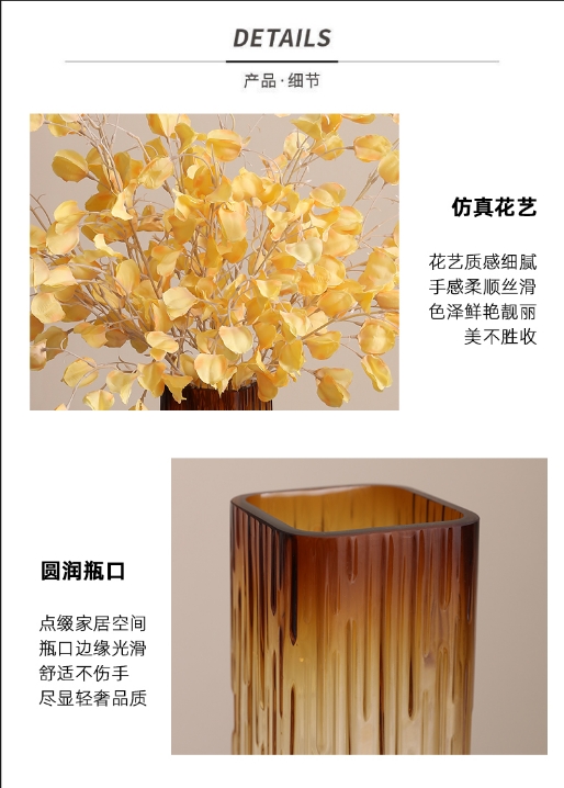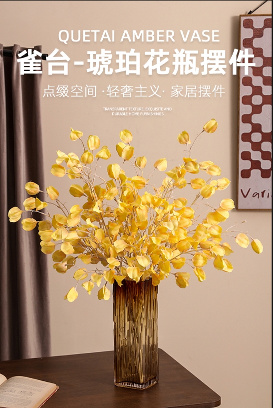 轻奢琥珀水晶方缸花瓶---火树烟花