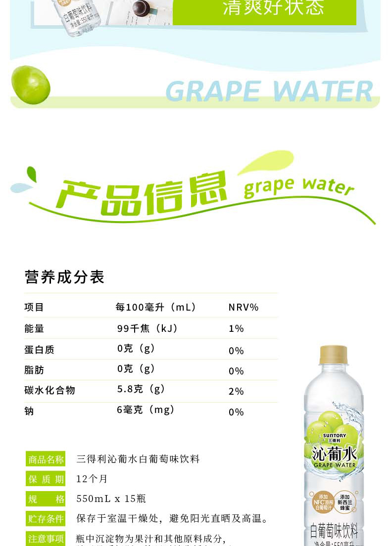 SUNTORY/三得利 沁葡水 饮料 整箱 550ml*15瓶 网红 新老包装随机发货 包邮