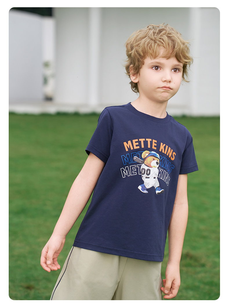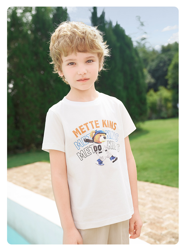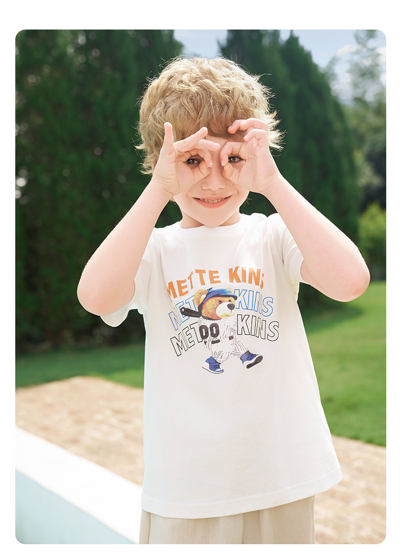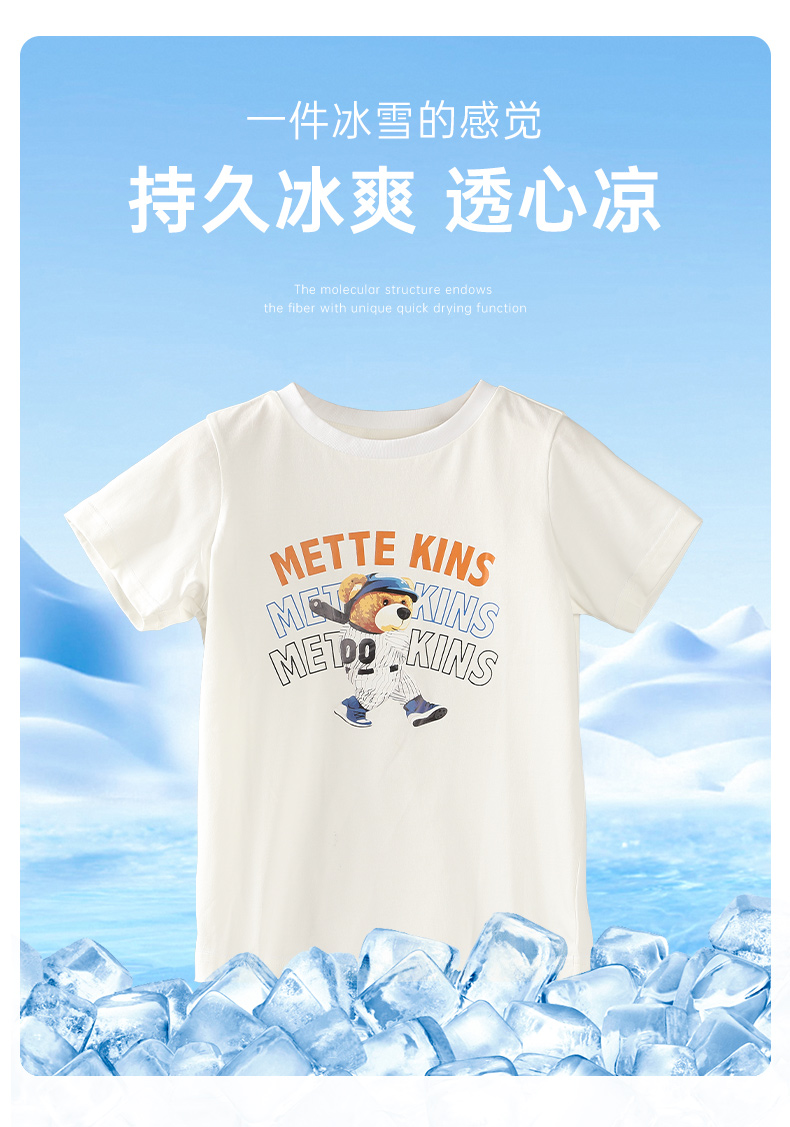 【凉感】mettekids男童短袖t恤2024夏季新款儿童透气字母印花上衣