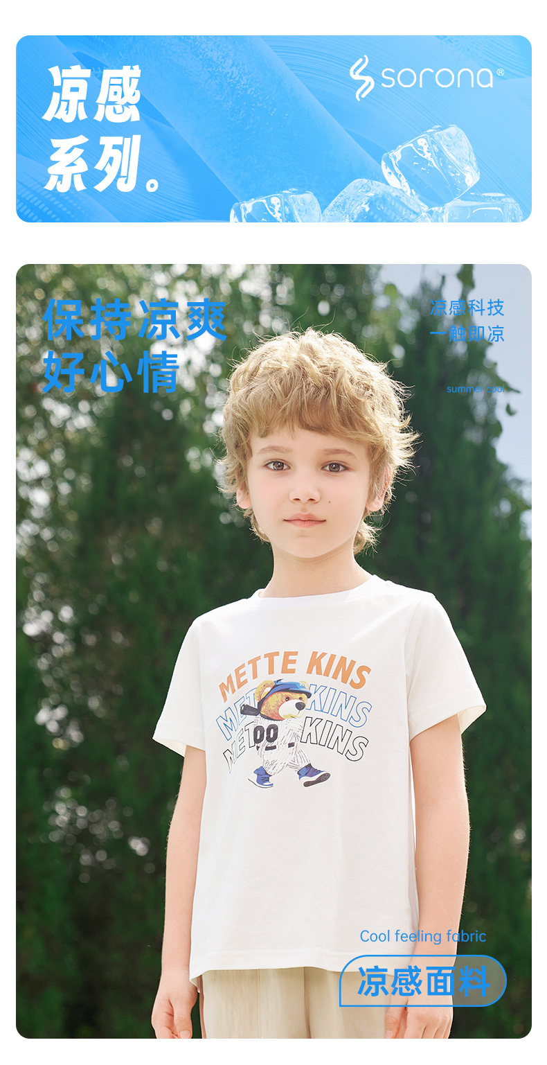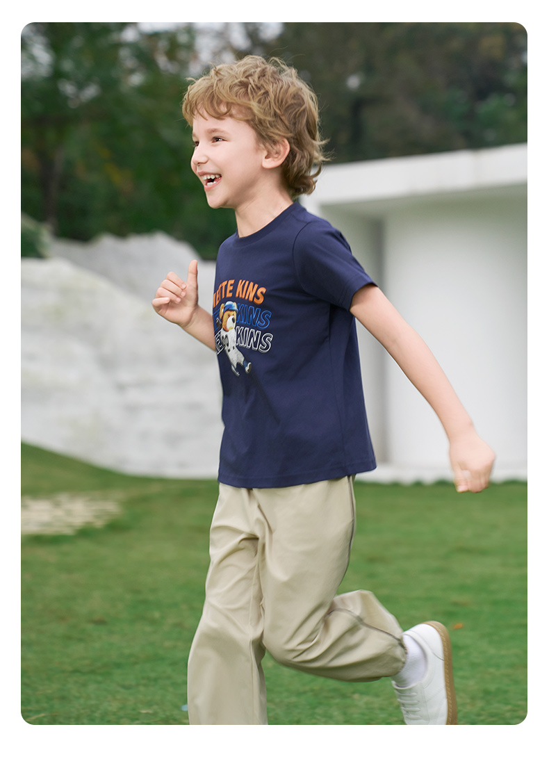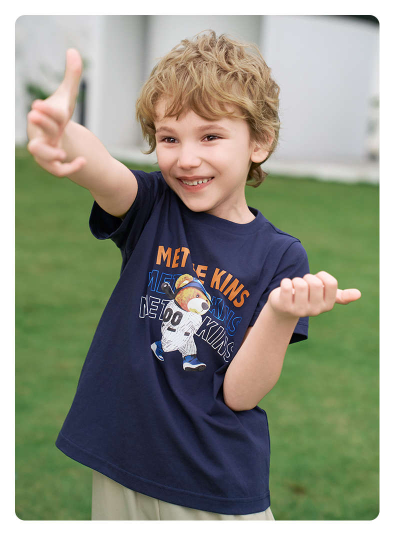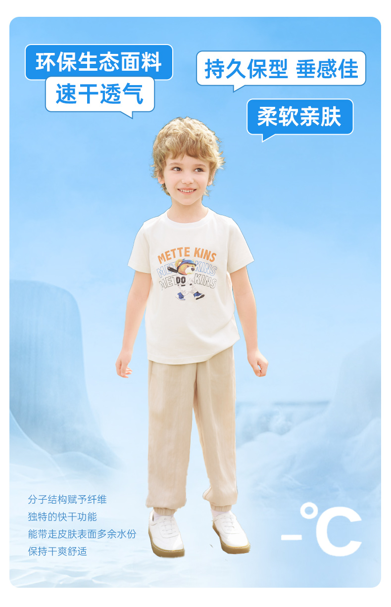 【凉感】mettekids男童短袖t恤2024夏季新款儿童透气字母印花上衣