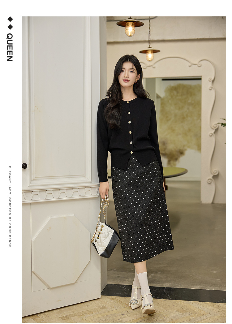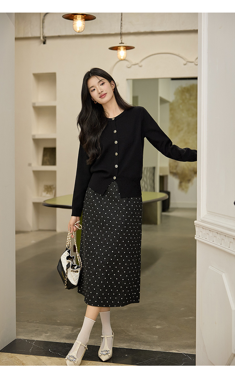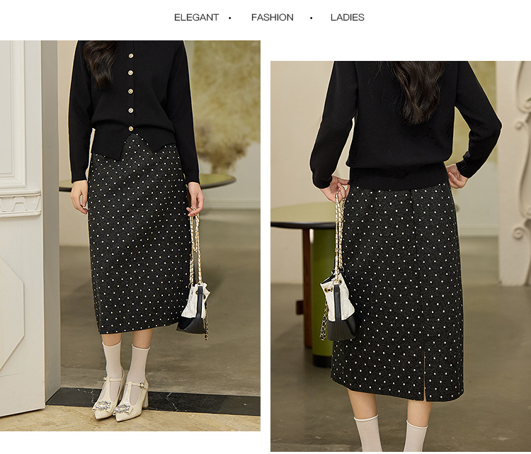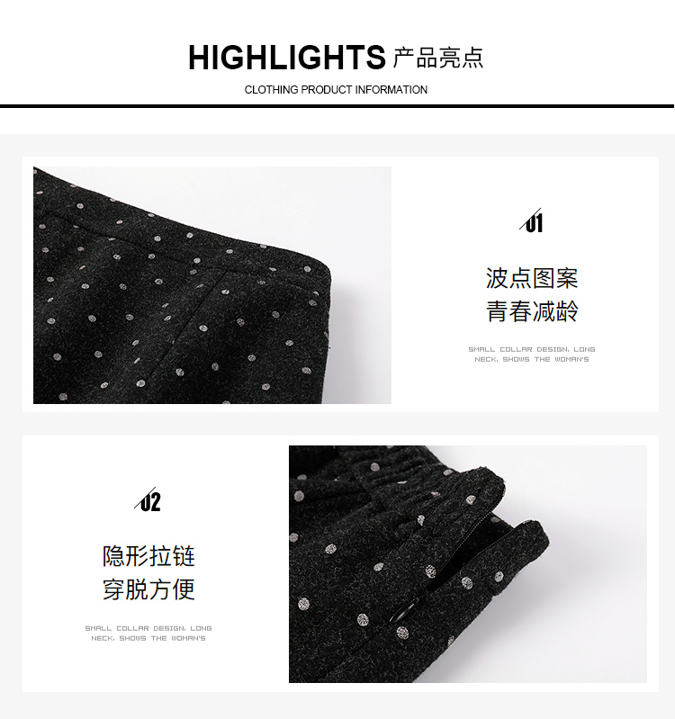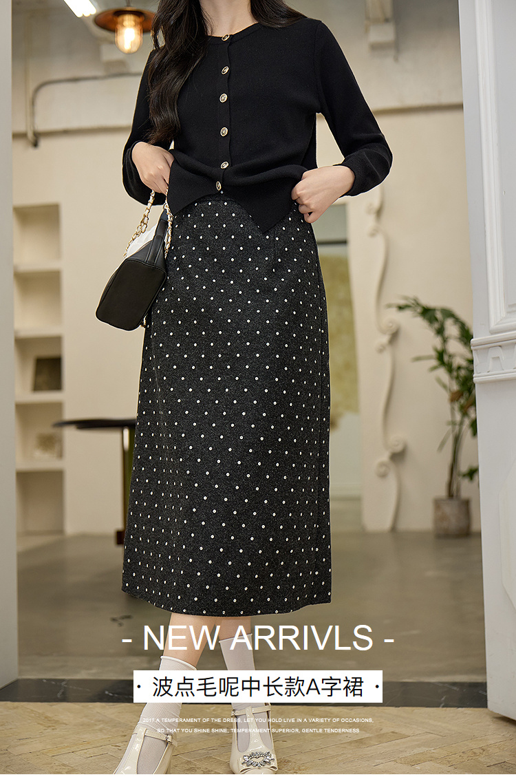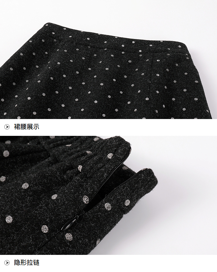 奢姿大码女装2025冬季波点毛呢半身裙胖妹妹中长款A字裙复古裙装9954453909C