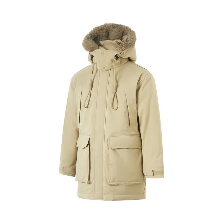 李宁男子冬季中款毛领羽绒服外套AYMU361-2