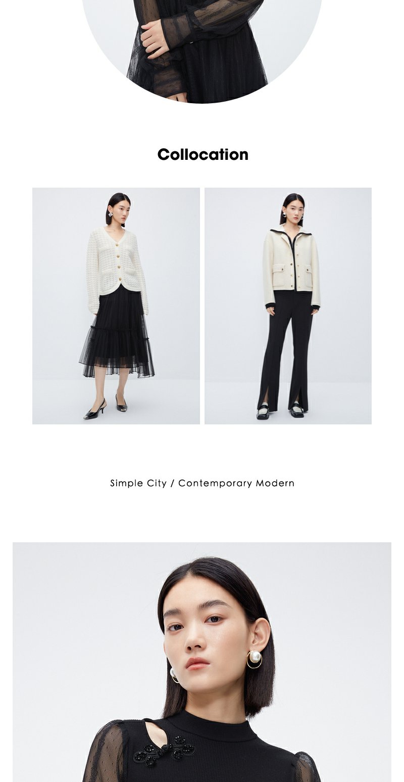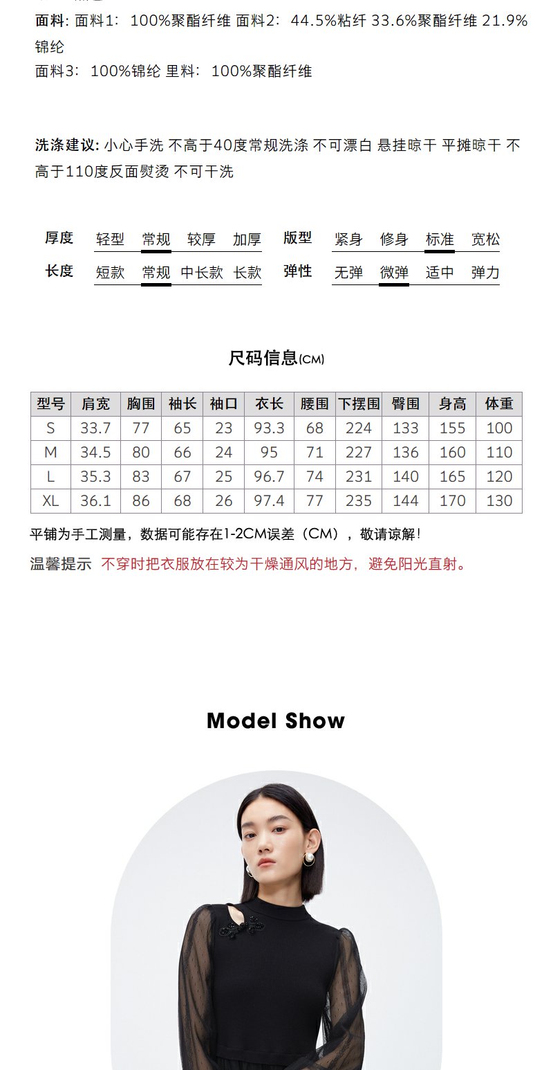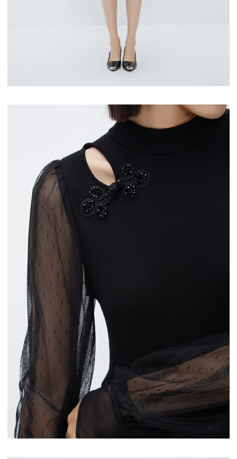 NEELLY纳俪商场同款新中式盘扣连衣裙女黑色中长款针织网纱拼接裙N24104Y04560