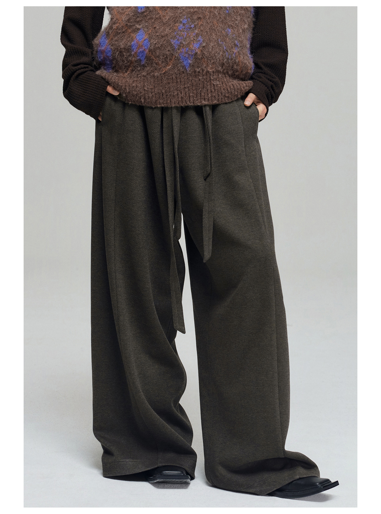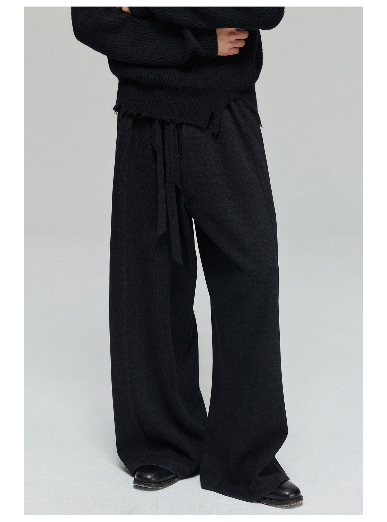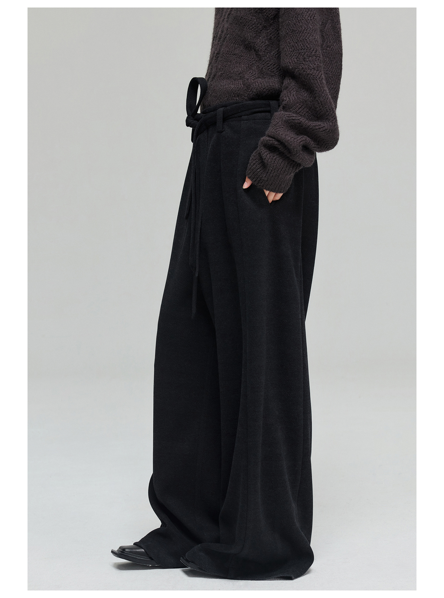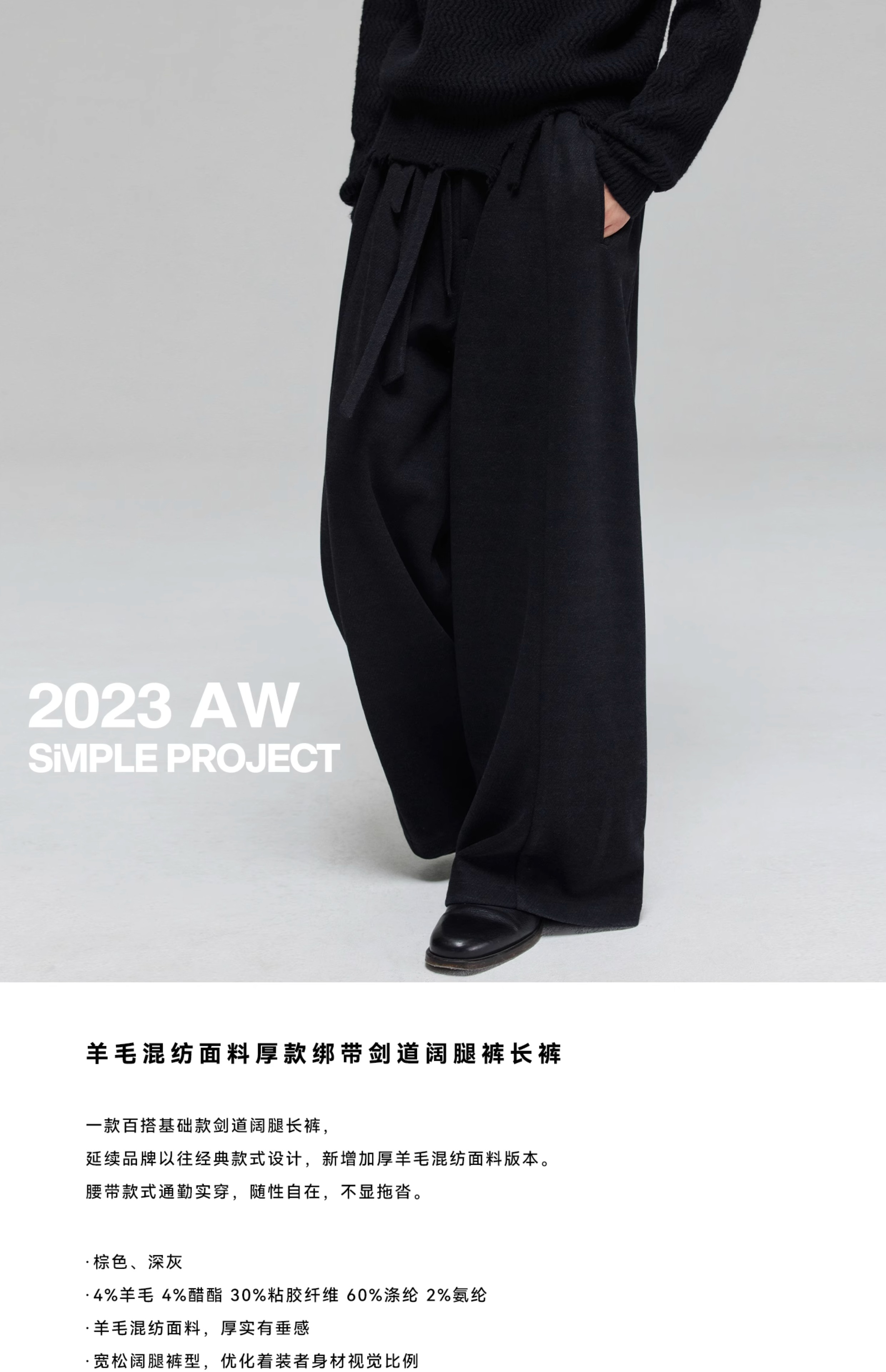 Simple Project/K23150/羊毛混纺厚款绑带剑道阔腿裤长裤