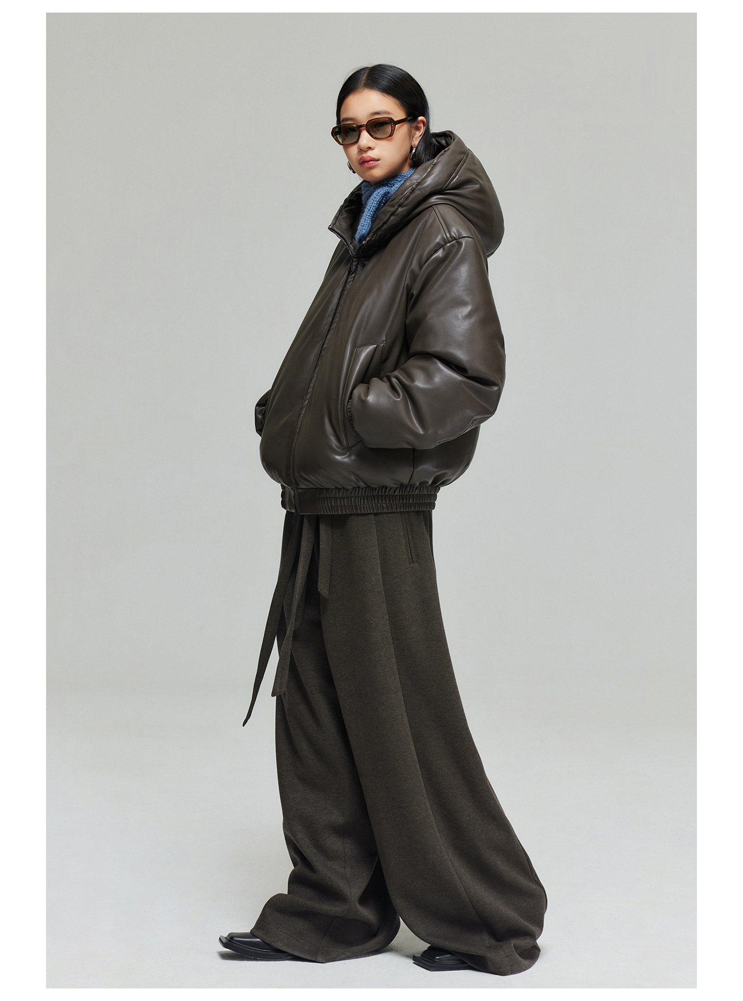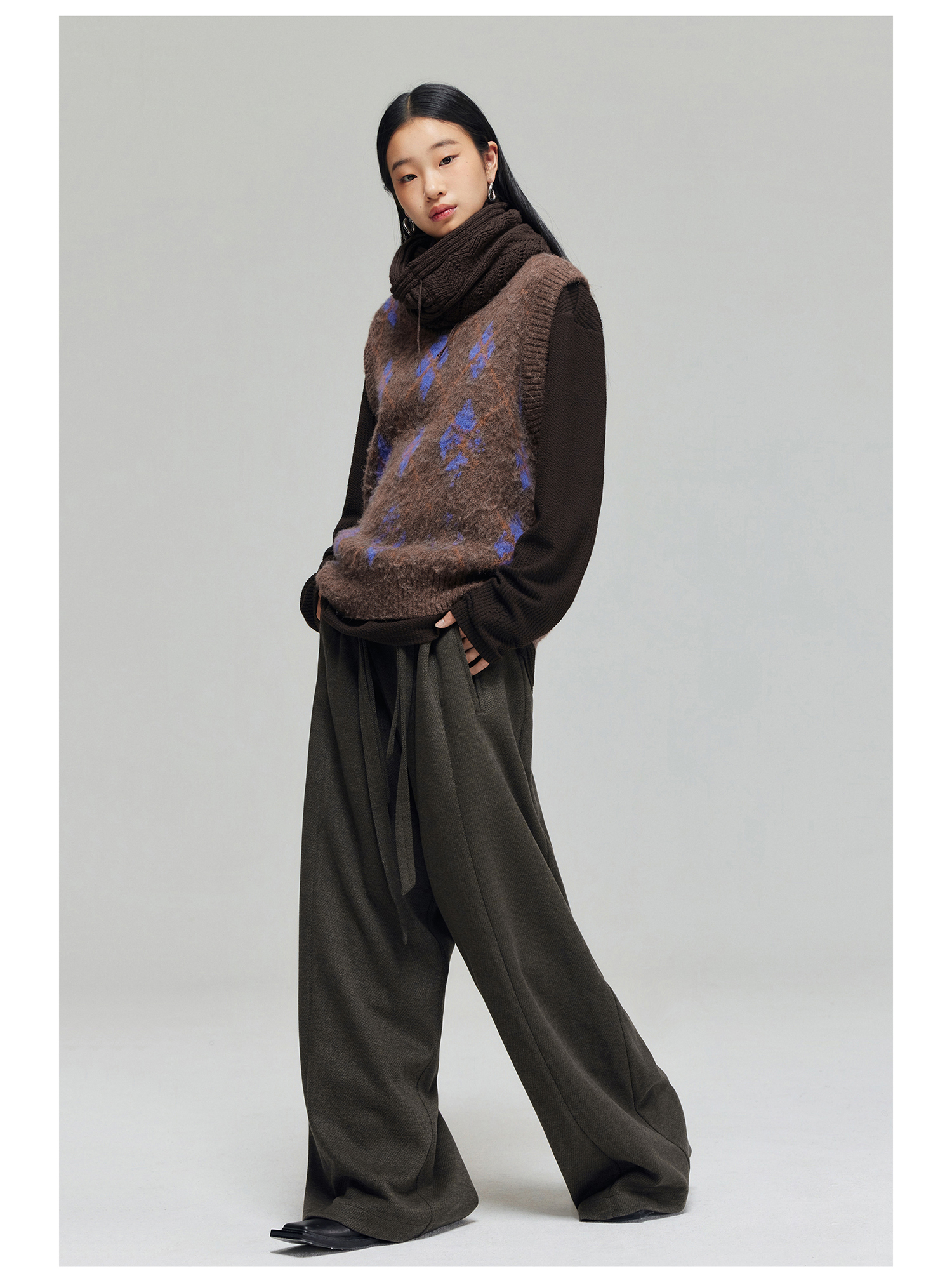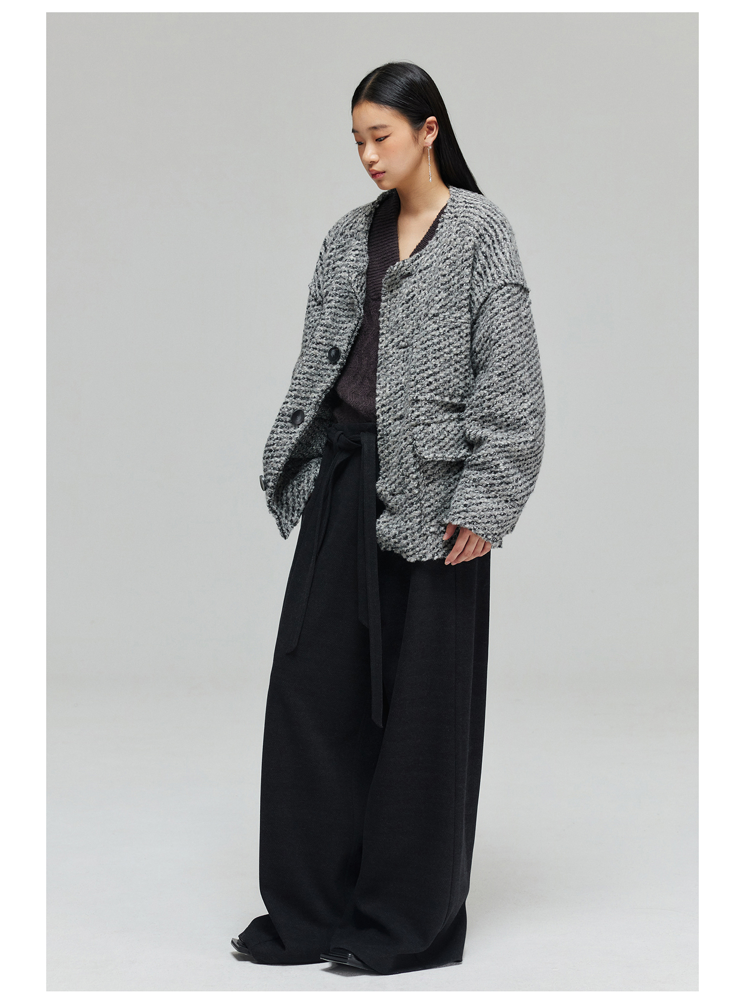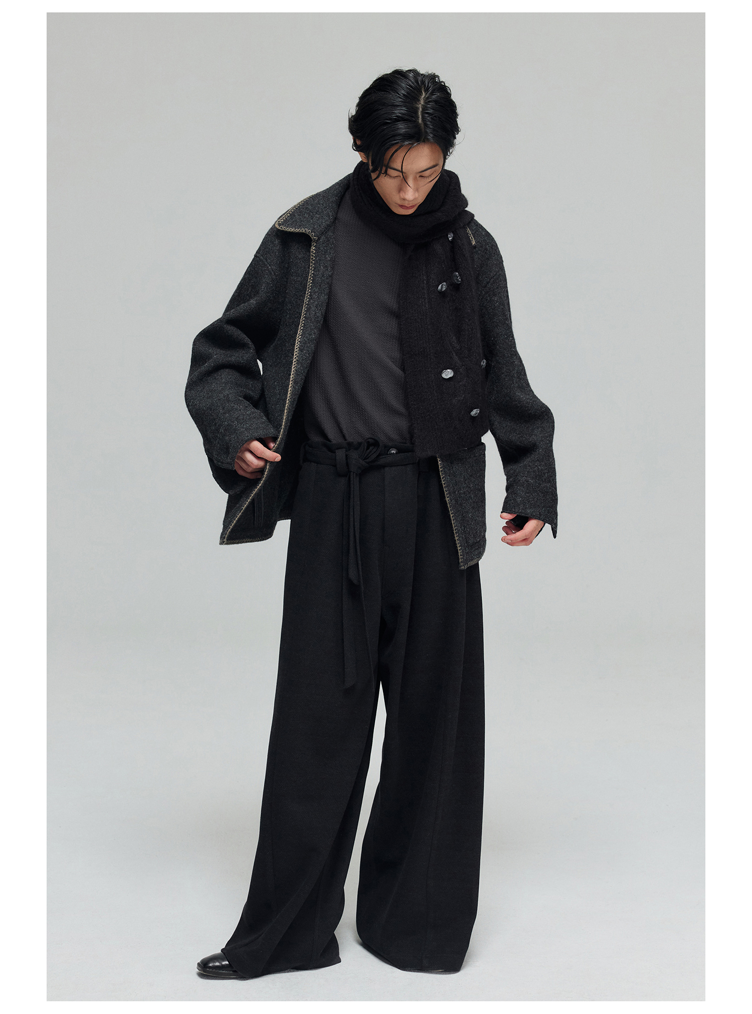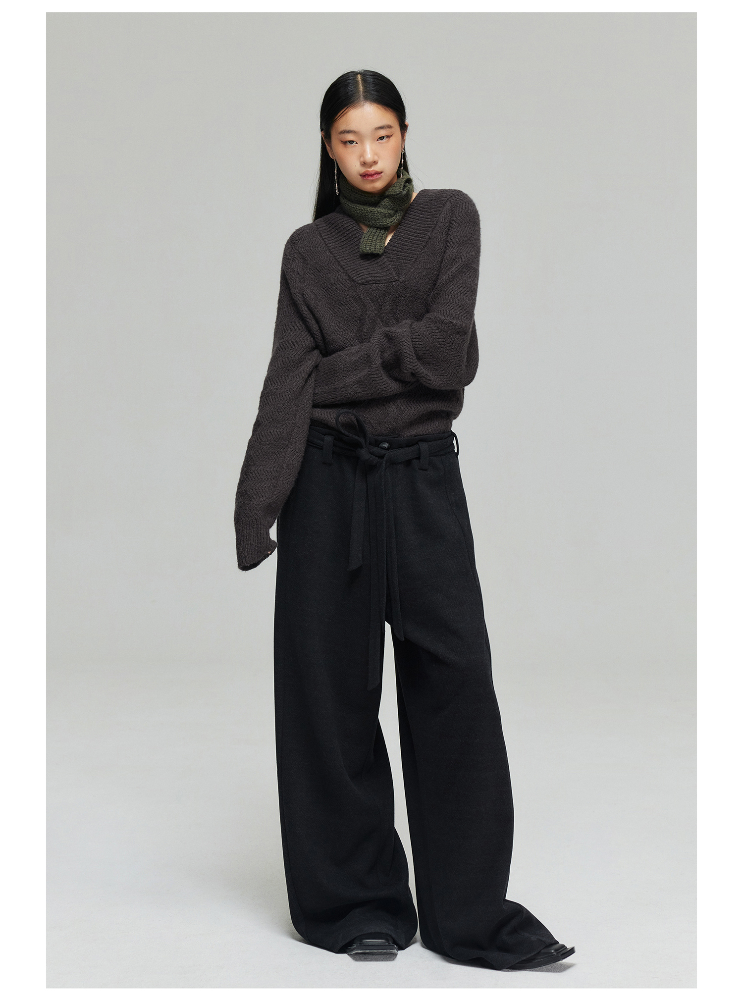 Simple Project/K23150/羊毛混纺厚款绑带剑道阔腿裤长裤