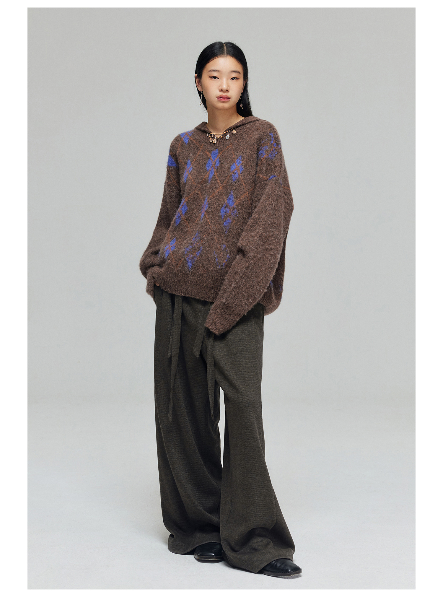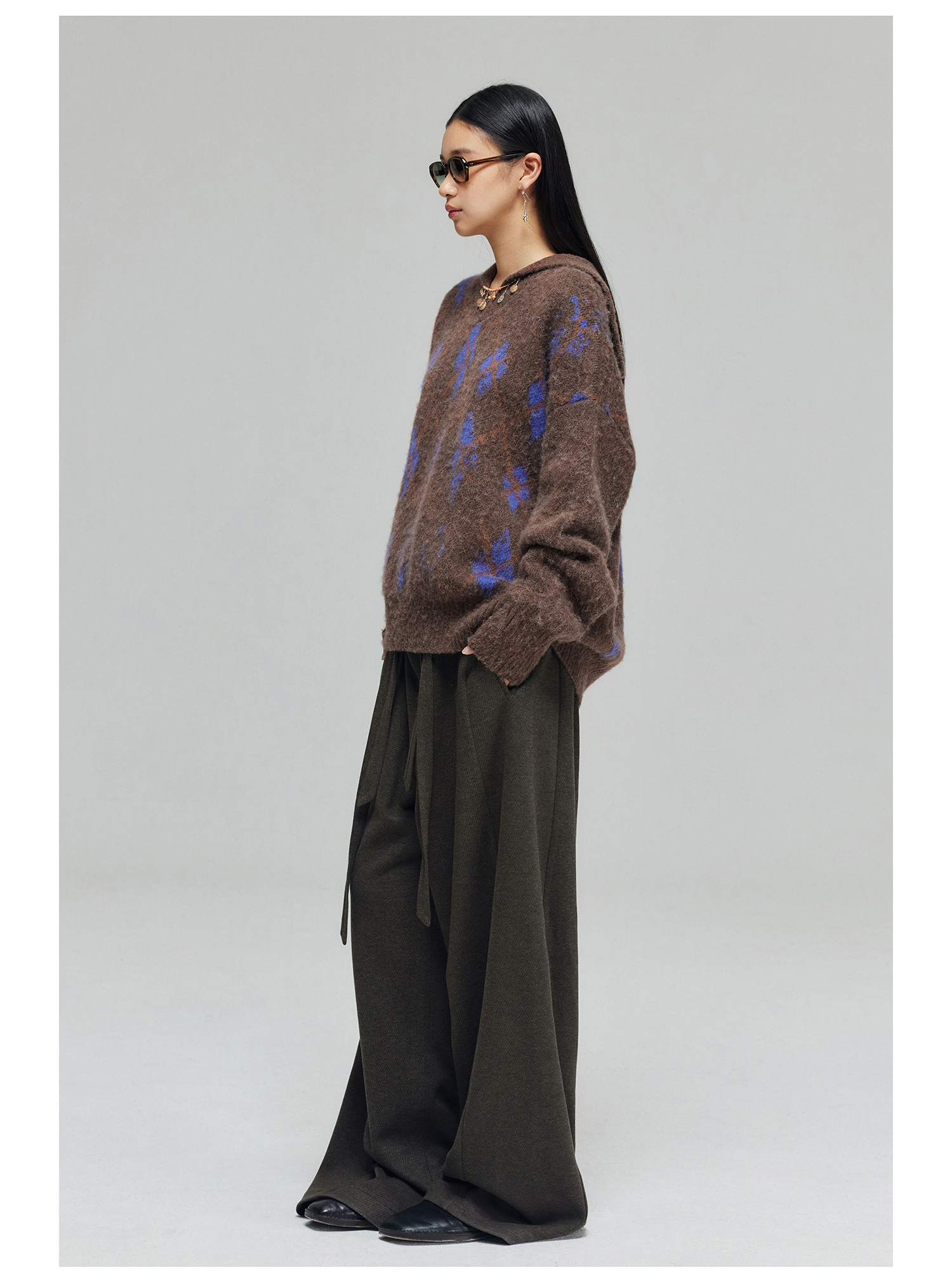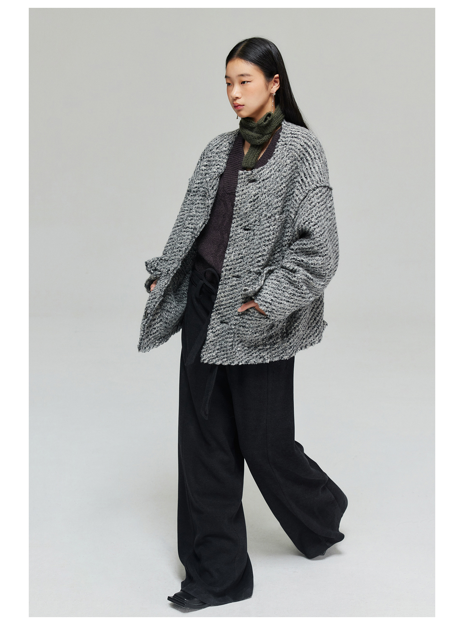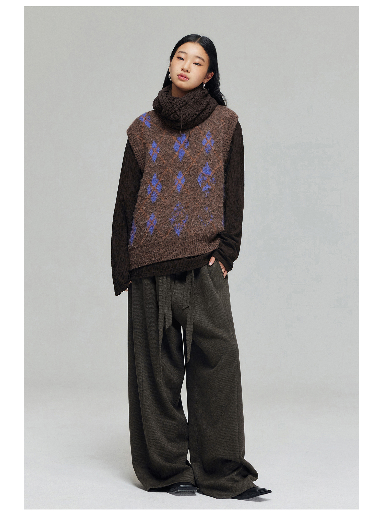 Simple Project/K23150/羊毛混纺厚款绑带剑道阔腿裤长裤