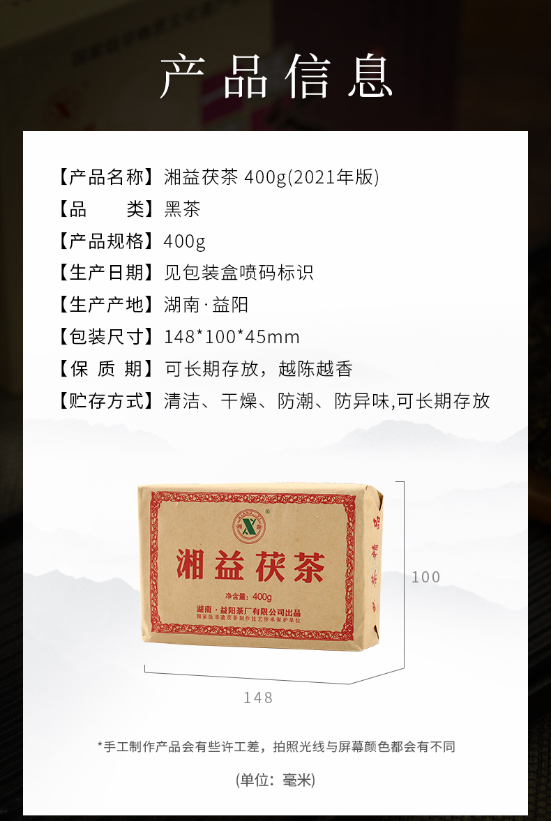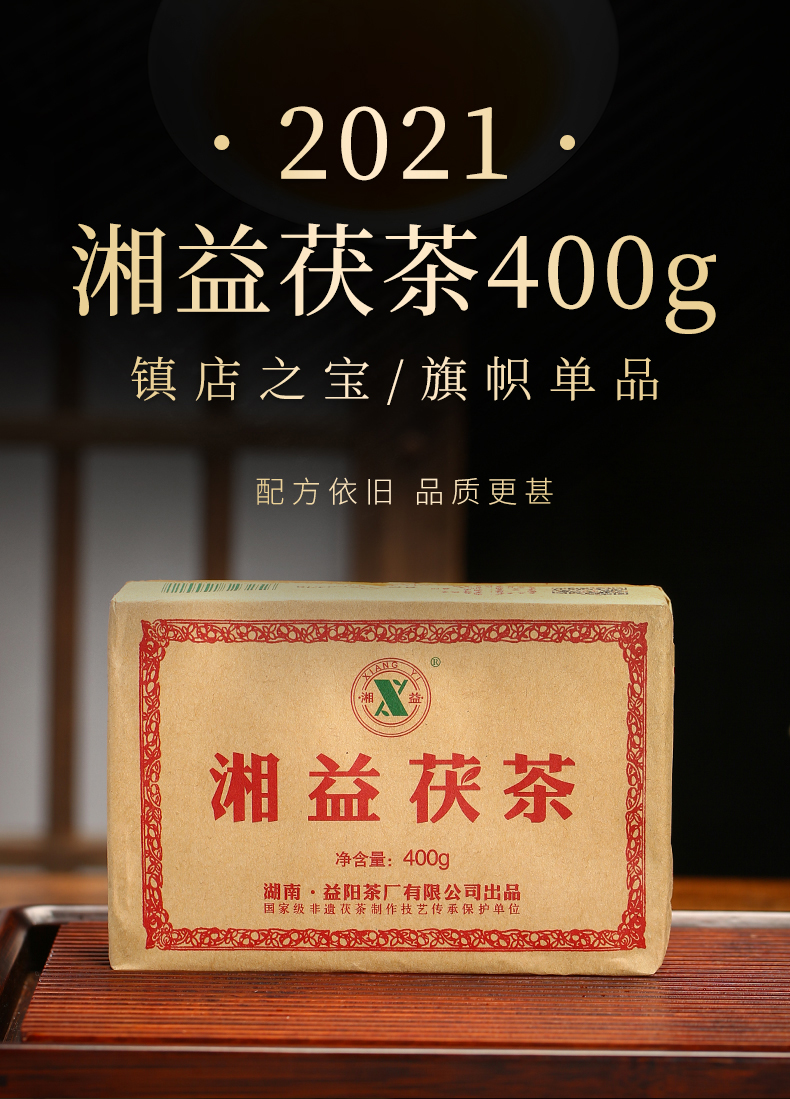 黑茶 湘益 红丝带2021年 茯茶 400g