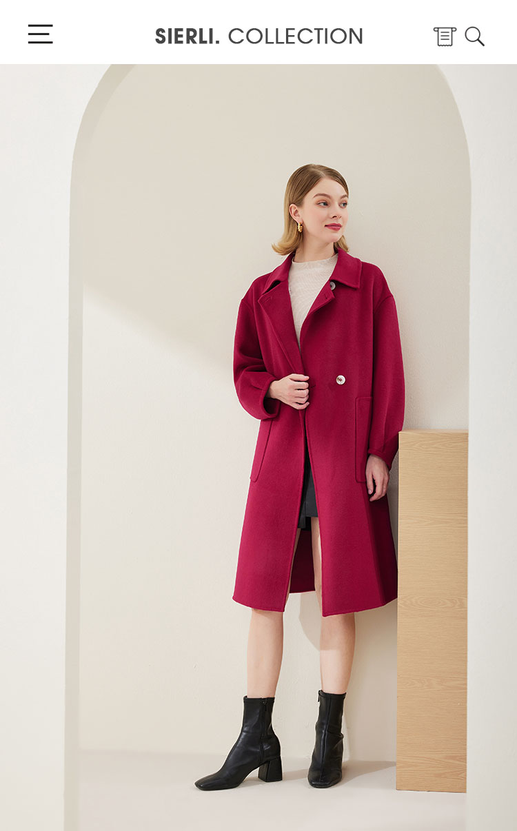 MH9A9瑟俪2022年冬上新商场同款赫本风高端显瘦两粒扣过膝长款大衣外套