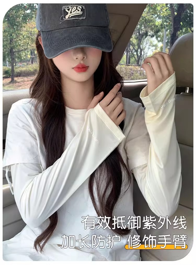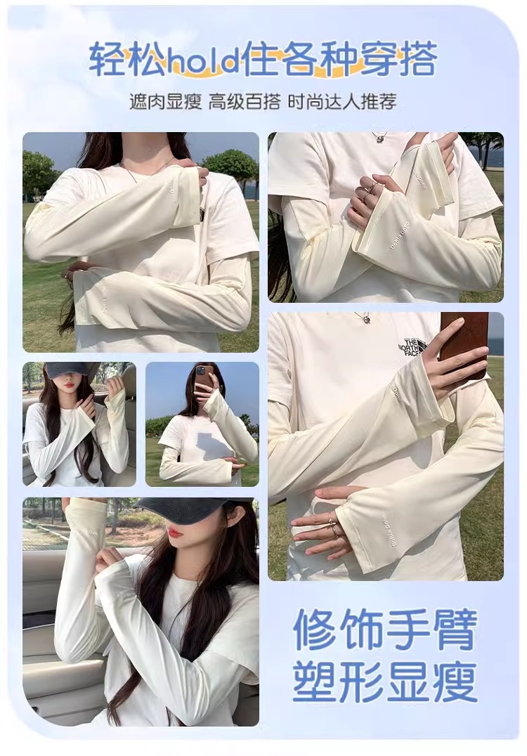 【UPF50+❗️冰丝防晒冰袖】轻薄贴肤不勒臂,多色可选百搭穿搭,防晒又时髦,感降温告别闷热,户外玩耍运动都安心,防紫外线开车手套护手臂冰丝宽松套袖L