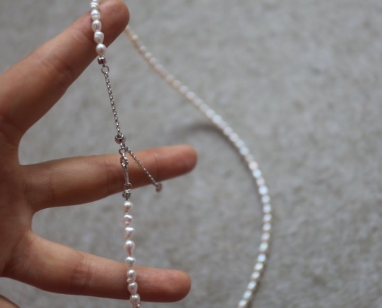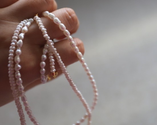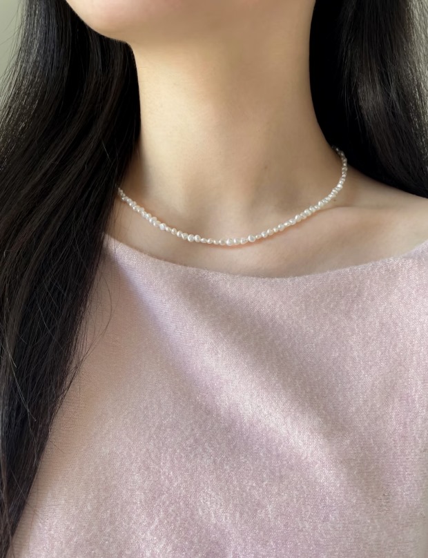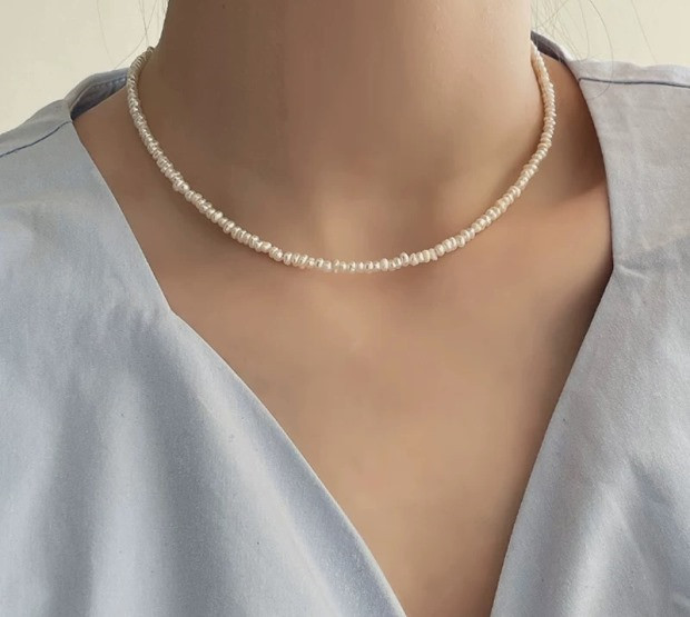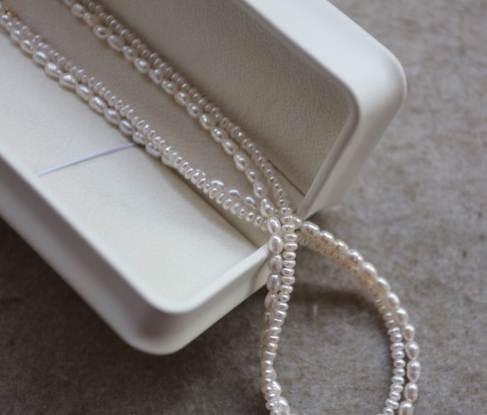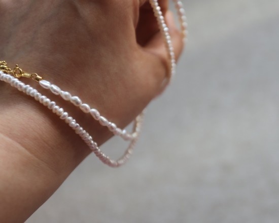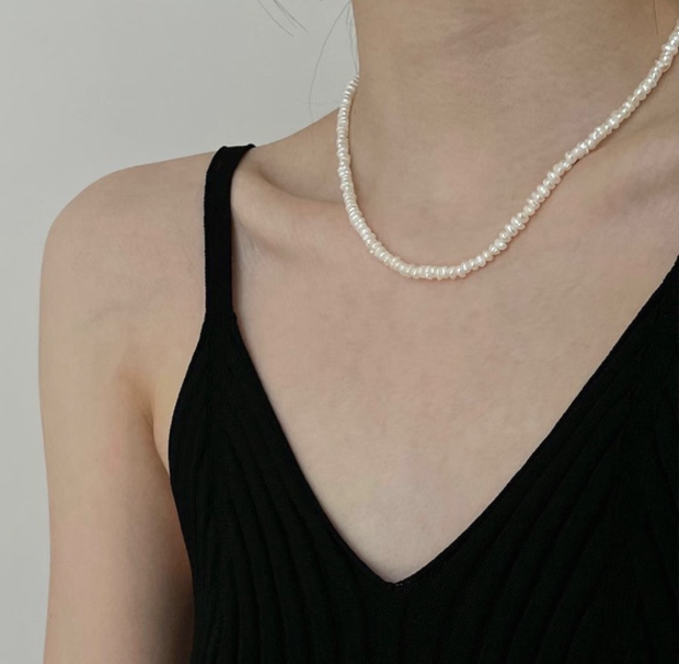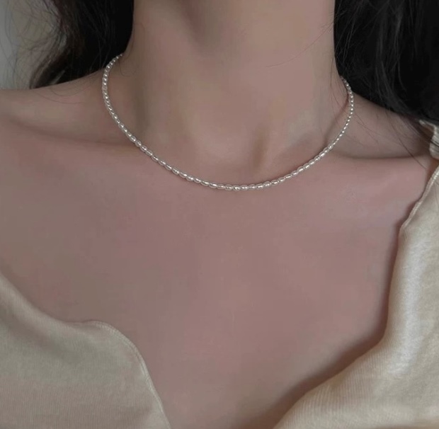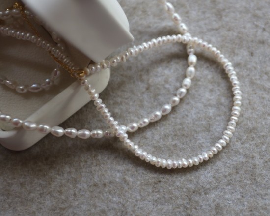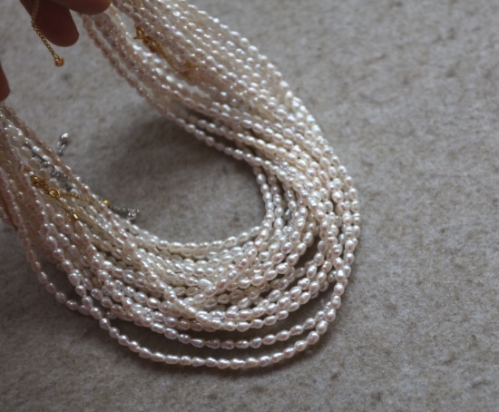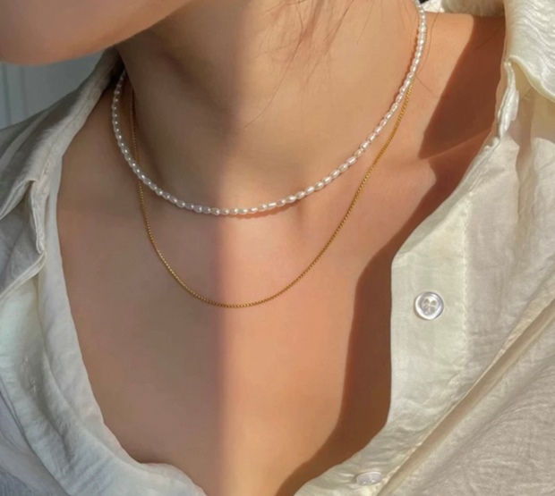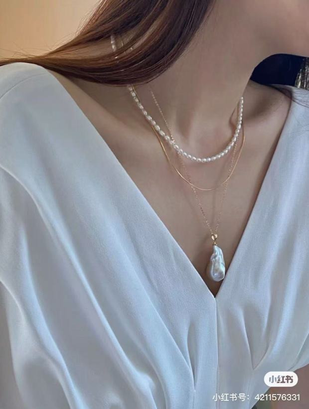 天然淡水 这种小珠珠 都是无核的 分别两个款 都比较适合叠戴的锁骨链吧