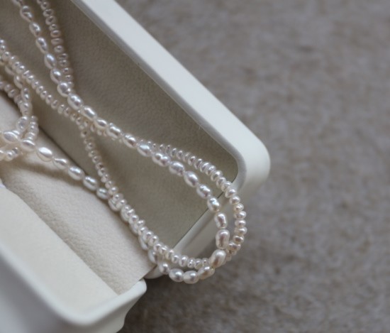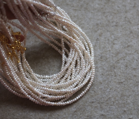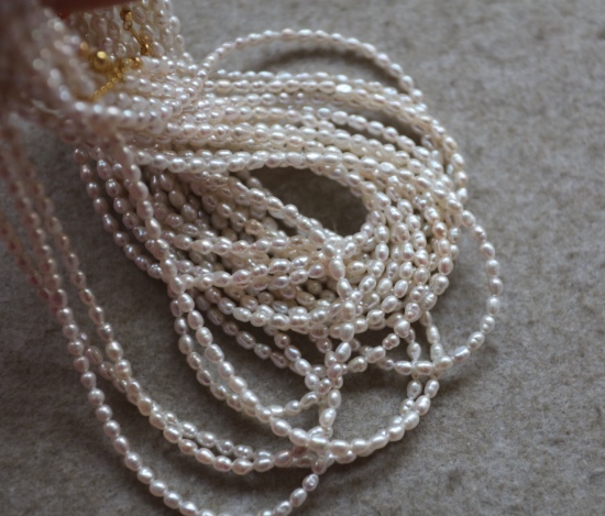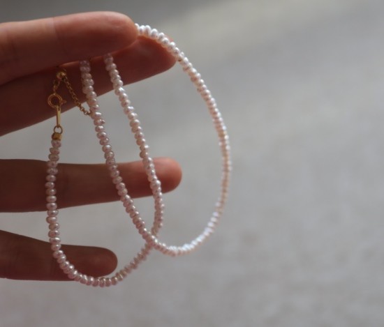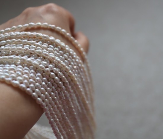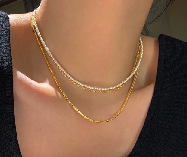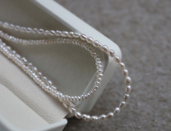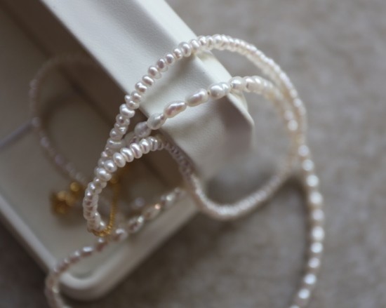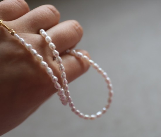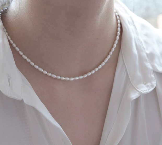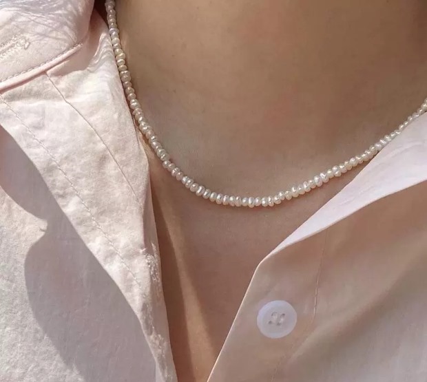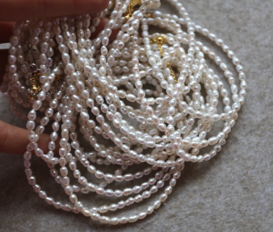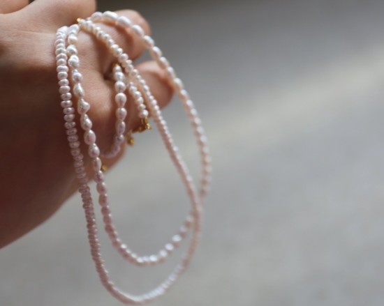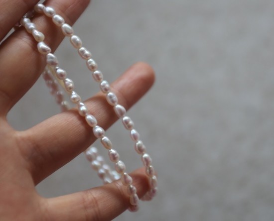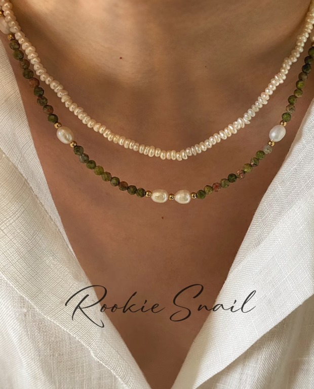 天然淡水 这种小珠珠 都是无核的 分别两个款 都比较适合叠戴的锁骨链吧