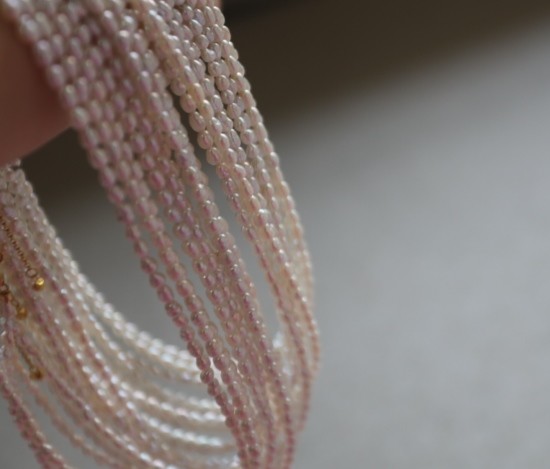 遮光下能看出来 会有非常非常浅的粉青色 米珠会比扁片的 明显一些些 哈~