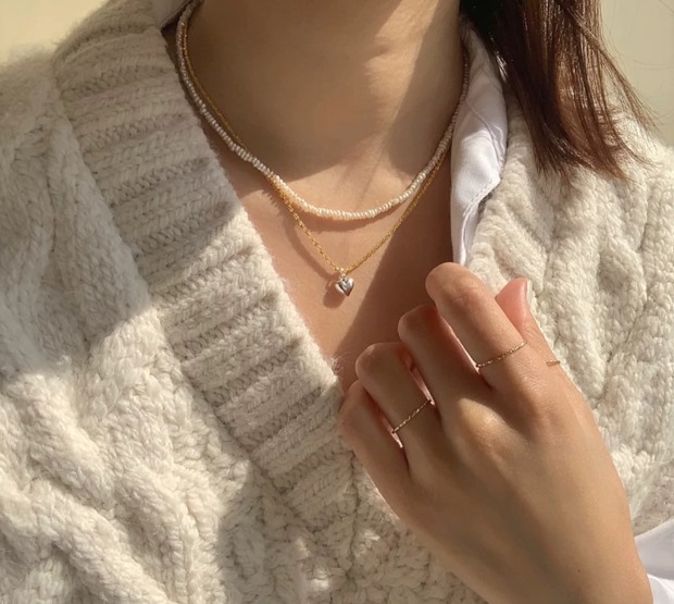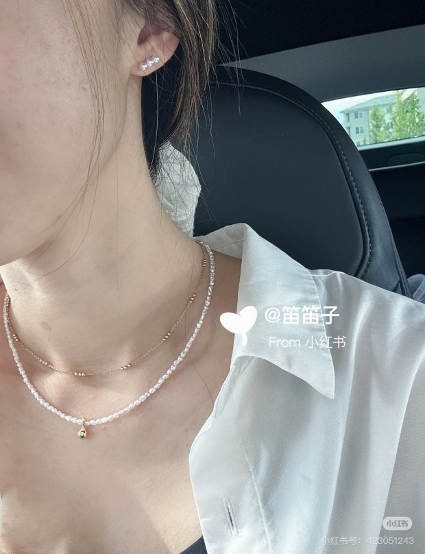 相对来说 米珠比扁片 更有温柔感 但这两款都比较适合叠戴 就不细表了 哈~