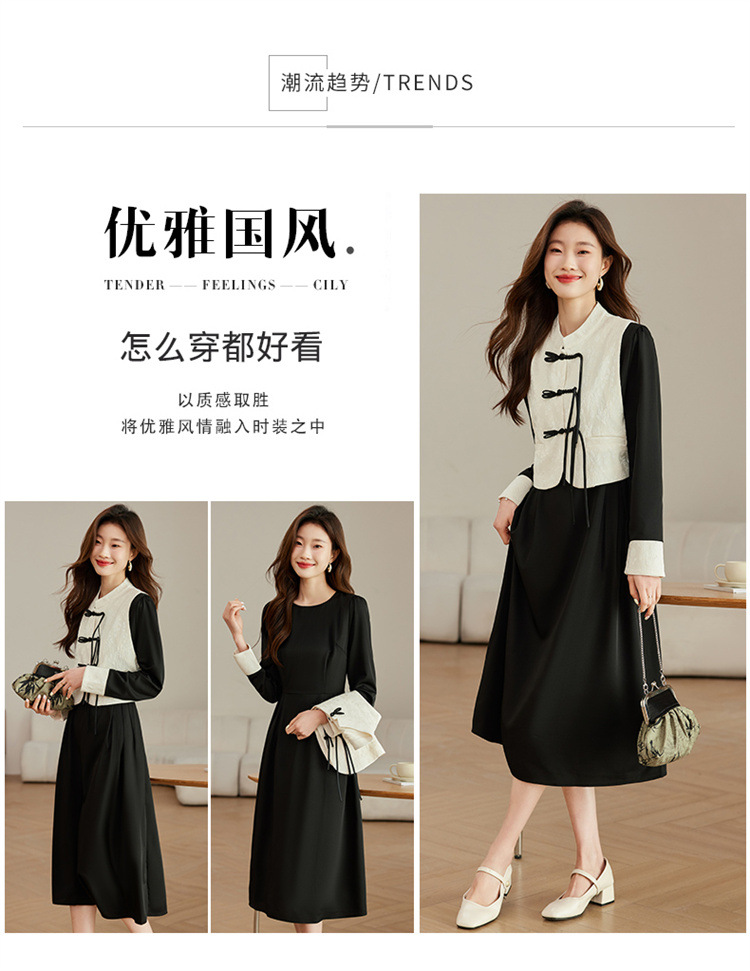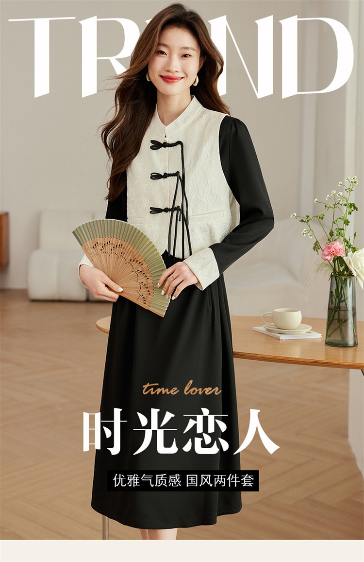 2024年春季上新气质时尚新中式提花马甲修身显瘦打底套装连衣裙HR-ARE3583 商品图5